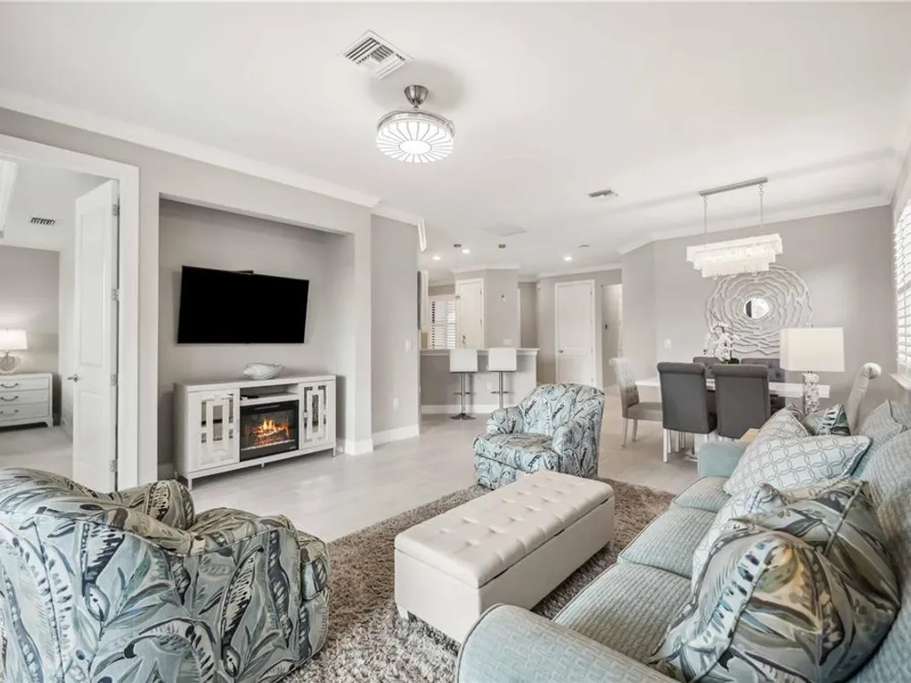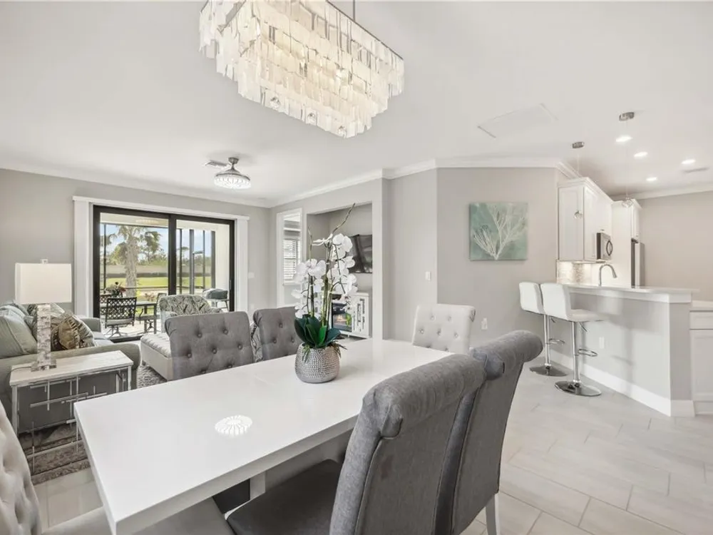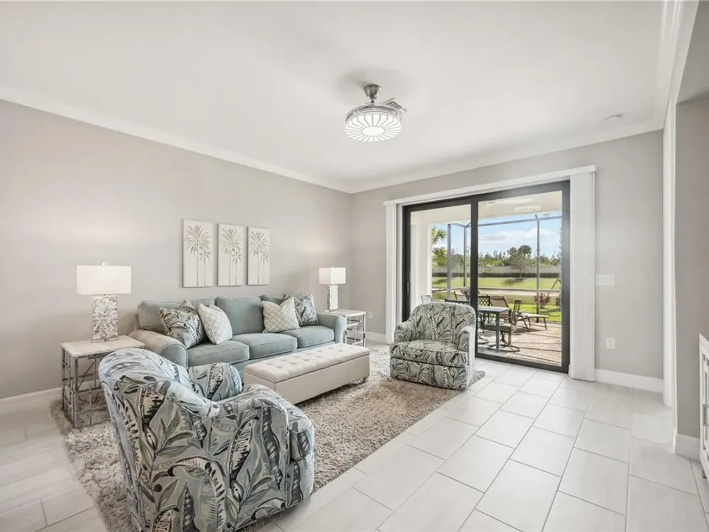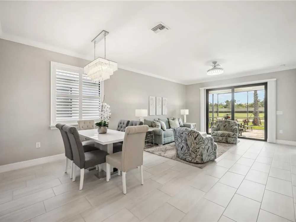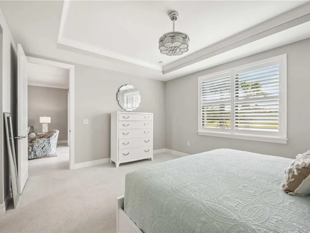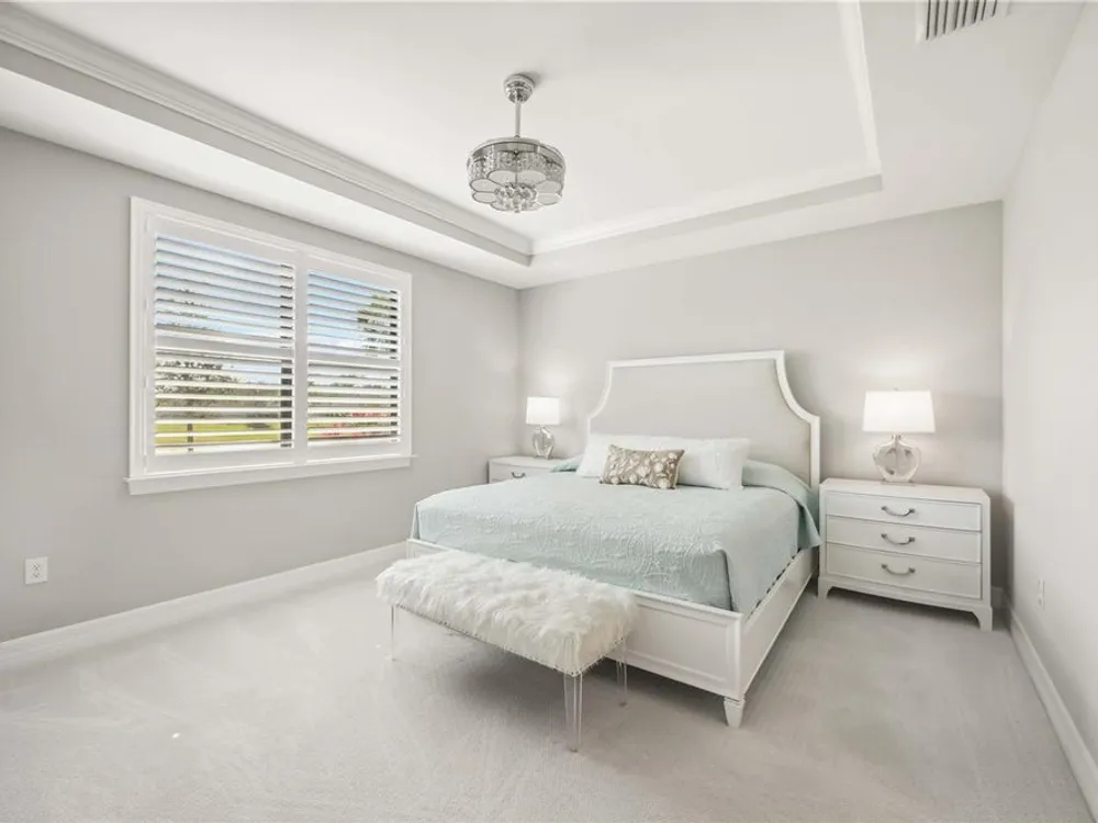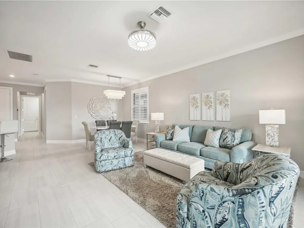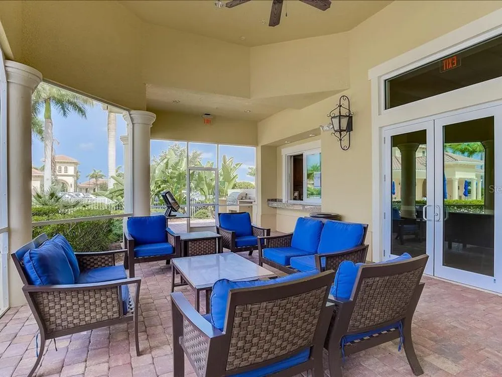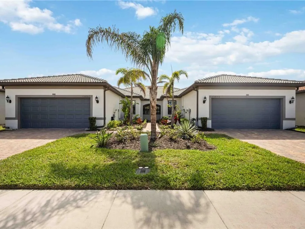 Peace of mind with IMPACT WINDOWS & DOORS! Built in 2021 and lightly lived in seasonally, with 1611 sqft, this Cascadia Villa features 2 bedrooms, 2 bathrooms, and a versatile flex room, offering an exquisite blend of comfort and style in a resort-style, maintenance-free community. From the moment you step inside, you'll be captivated by the villa’s bright and sun-filled living spaces, adorned with crown molding and custom plantation shutters for an elegant coastal feel. Large tile flooring flows seamlessly throughout the main areas, while the bedrooms boast upgraded plush carpet for ultimate comfort. Entertaining is effortless with a thoughtfully positioned gourmet kitchen that fosters interaction between hosts and guests. This well-designed space boasts 42” upgraded cabinets, quartz countertops, a stylish glass tile backsplash, and premium appliances, including an induction stove and sleek refrigerator. Under-cabinet lighting enhances the ambiance, while a breakfast bar provides additional seating. The spacious master suite is a serene oasis, featuring a tray ceiling, expansive windows with tranquil lake views, and a spa-like en-suite bath. Indulge in the luxury of double vanity sinks, a walk-in shower with a frameless glass surround, and a built-in bench for added relaxation. Designed for year-round enjoyment, the extended south-facing lanai offers breathtaking Florida sunsets over the lake—a perfect setting to relax and unwind. Built by DiVosta, this home includes IMPACT WINDOWS, DOORS and a tied-down tile roof, ensuring durability and peace of mind. Community Living: Islandwalk is a vibrant, friendly lifestyle community that offers an array of recreational amenities, including multiple pools, lap pools, a clubhouse with a full-time activities director, two fitness centers, 12 pickleball courts, har-tru tennis courts, bocce ball, two fire pits, a dog park, basketball, and playground. The monthly newsletter is packed with social events planned by a full-time activities director. Why wait… move in and let the fun begin! But don't forget your sunglasses, as the white sandy beach is just 9 miles away. To enjoy an afternoon of shopping or dining, hop on your bike or golf cart and head to the new Wellen Park Downtown, featuring an 80-acre lake with recreational activities for everyone! The community of Islandwalk boasts the LOWEST CDD FEE in all of Wellen Park! HOA fees in Islandwalk are a great value and include: lawn care, tree trimming, mulch, high-speed internet, basic cable with 3 DVR boxes, all the resort-style amenities, on-site management seven days a week, and a full-time Lifestyle Director. Furniture can be purchased under a separate contract.
