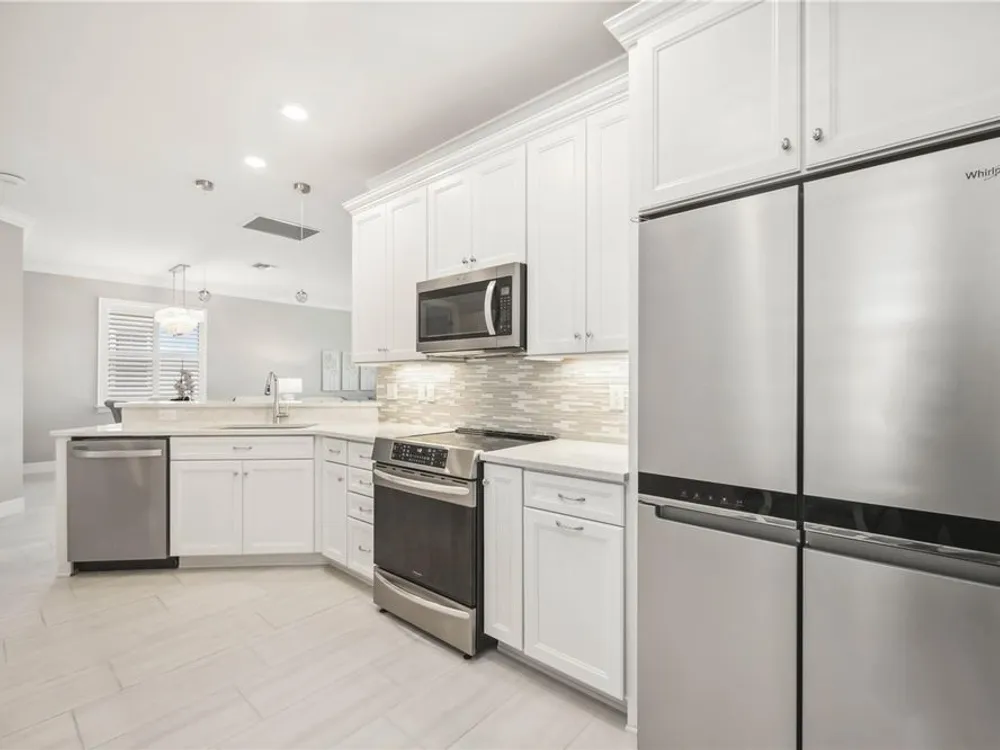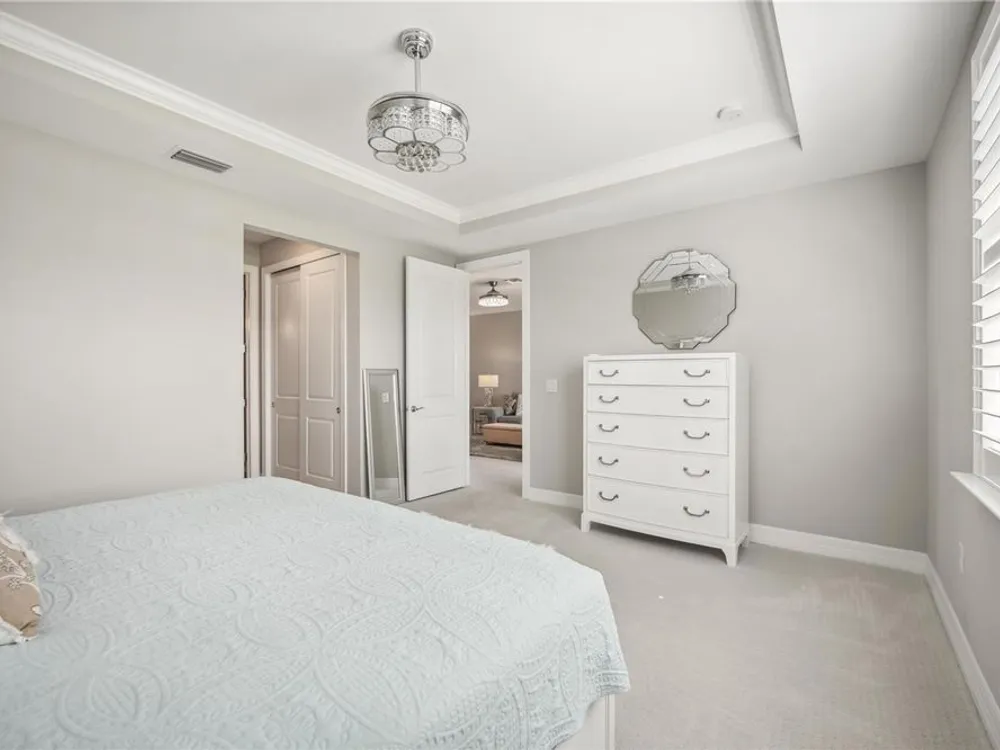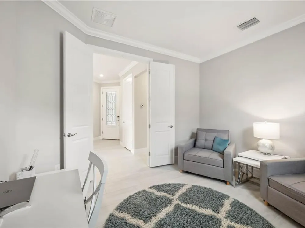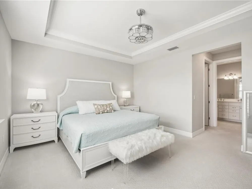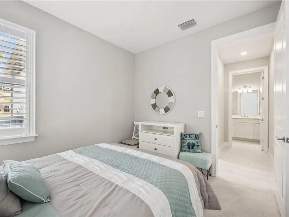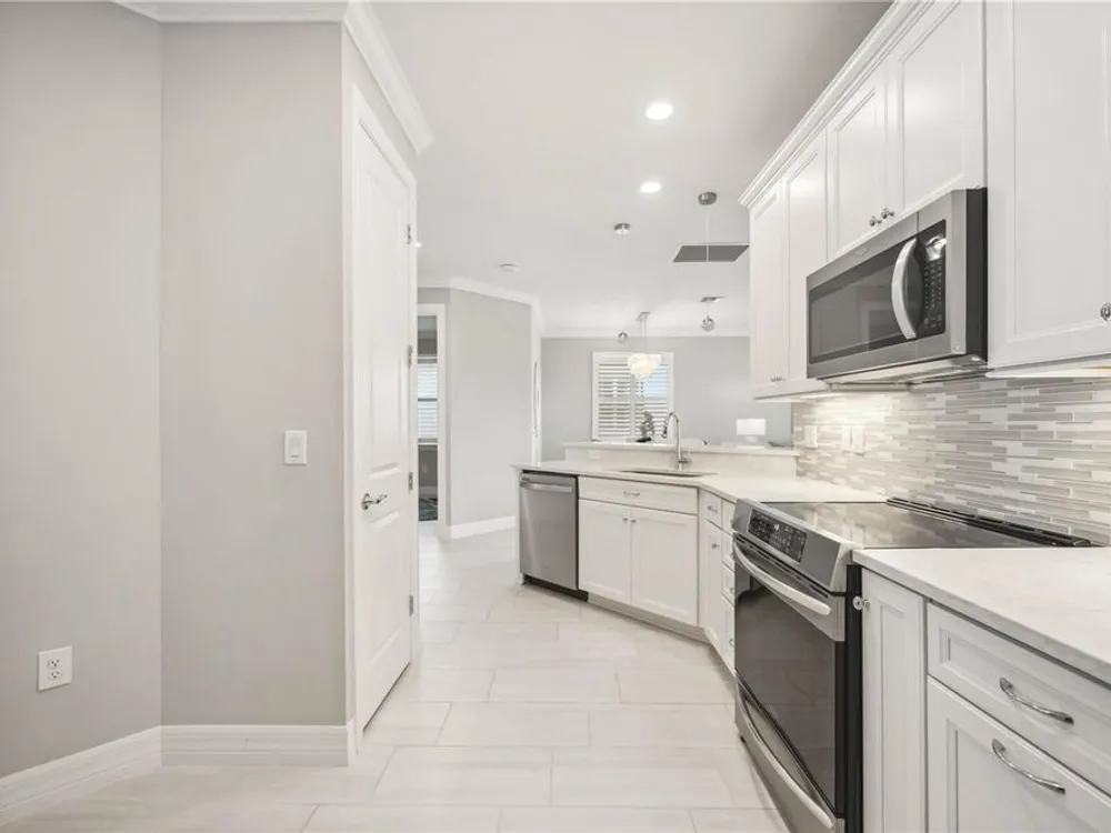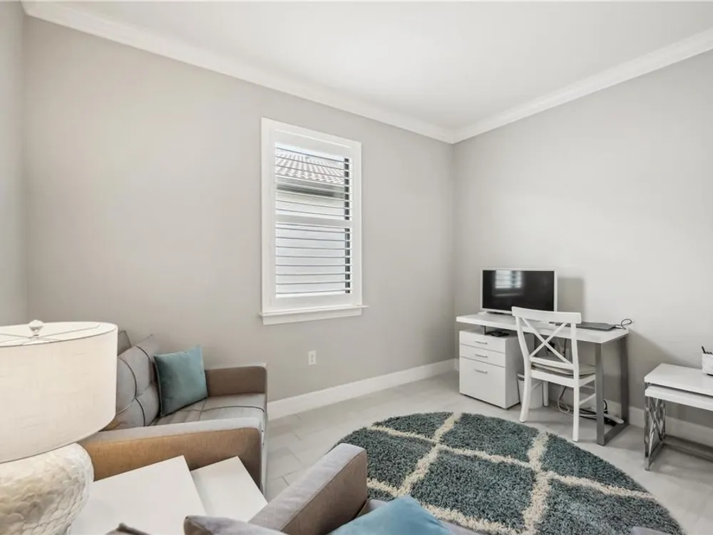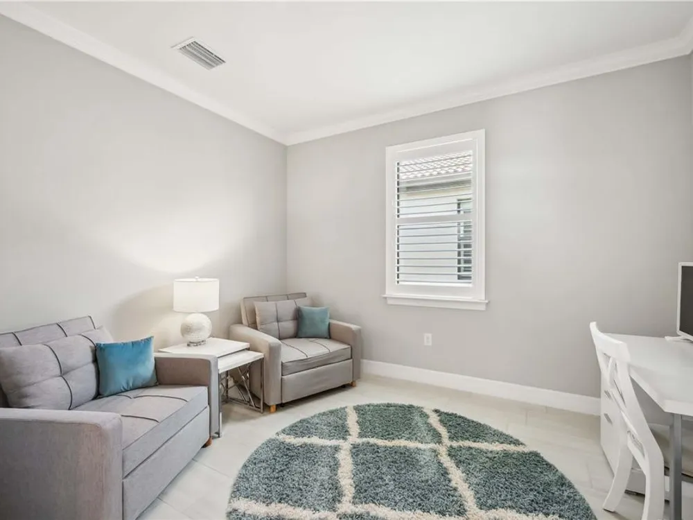 Peace of mind with IMPACT WINDOWS & DOORS! Built in 2021 and lightly lived in seasonally, with 1611 sqft, this Cascadia Villa features 2 bedrooms, 2 bathrooms, and a versatile flex room, offering an exquisite blend of comfort and style in a resort-style, maintenance-free community. From the moment you step inside, you'll be captivated by the villa’s bright and sun-filled living spaces, adorned with crown molding and custom plantation shutters for an elegant coastal feel. Large tile flooring flows seamlessly throughout the main areas, while the bedrooms boast upgraded plush carpet for ultimate comfort. Entertaining is effortless with a thoughtfully positioned gourmet kitchen that fosters interaction between hosts and guests. This well-designed space boasts 42” upgraded cabinets, quartz countertops, a stylish glass tile backsplash, and premium appliances, including an induction stove and sleek refrigerator. Under-cabinet lighting enhances the ambiance, while a breakfast bar provides additional seating. The spacious master suite is a serene oasis, featuring a tray ceiling, expansive windows with tranquil lake views, and a spa-like en-suite bath. Indulge in the luxury of double vanity sinks, a walk-in shower with a frameless glass surround, and a built-in bench for added relaxation. Designed for year-round enjoyment, the extended south-facing lanai offers breathtaking Florida sunsets over the lake—a perfect setting to relax and unwind. Built by DiVosta, this home includes IMPACT WINDOWS, DOORS and a tied-down tile roof, ensuring durability and peace of mind. Community Living: Islandwalk is a vibrant, friendly lifestyle community that offers an array of recreational amenities, including multiple pools, lap pools, a clubhouse with a full-time activities director, two fitness centers, 12 pickleball courts, har-tru tennis courts, bocce ball, two fire pits, a dog park, basketball, and playground. The monthly newsletter is packed with social events planned by a full-time activities director. Why wait… move in and let the fun begin! But don't forget your sunglasses, as the white sandy beach is just 9 miles away. To enjoy an afternoon of shopping or dining, hop on your bike or golf cart and head to the new Wellen Park Downtown, featuring an 80-acre lake with recreational activities for everyone! The community of Islandwalk boasts the LOWEST CDD FEE in all of Wellen Park! HOA fees in Islandwalk are a great value and include: lawn care, tree trimming, mulch, high-speed internet, basic cable with 3 DVR boxes, all the resort-style amenities, on-site management seven days a week, and a full-time Lifestyle Director. Furniture can be purchased under a separate contract.