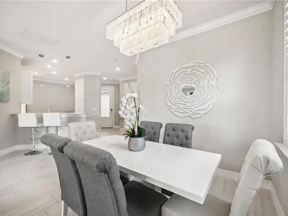 - Ceiling Fan(s), Crown Molding, High Ceilings, Living/Dining Room, Open Floorplan, Split Bedrooms, Stone Counters, Thermostat, Walk-In Closet(s), Window Treatments