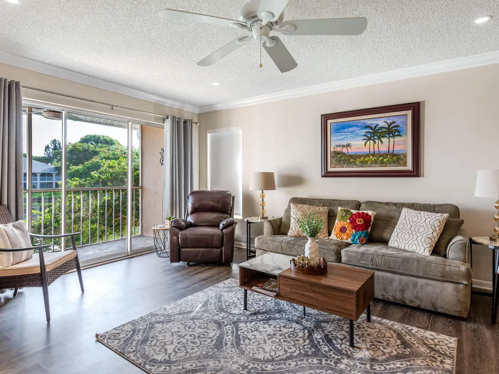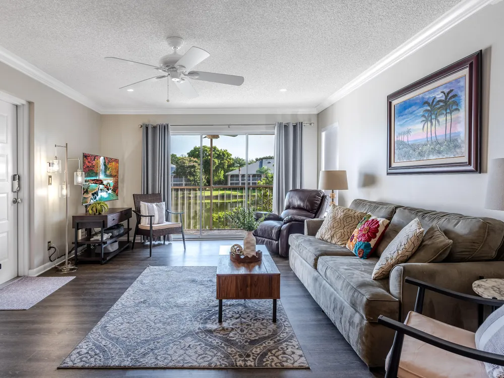 This spacious 2 bedroom/2 bathroom, second-floor condo features a remodeled kitchen with stainless steel appliances, beautifully updated bathrooms with porcelain wood-look tile, and high-end vinyl laminate flooring throughout. Enjoy serene lake views from your screened-in patio with a stylish stone floor. The building has a new roof (assessment paid by seller) and the community is pet-friendly (pets up to 25 lbs). Located in an all ages community offering fantastic amenities including a clubhouse, pool, fitness center, tennis, and more. Prime central Delray Beach location - move-in ready and close to everything!