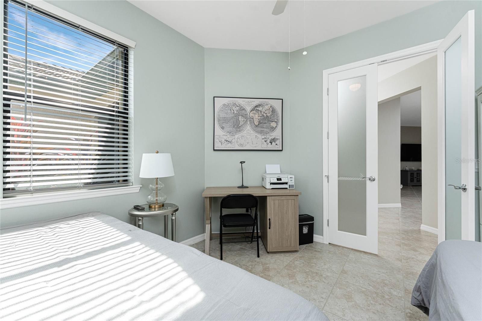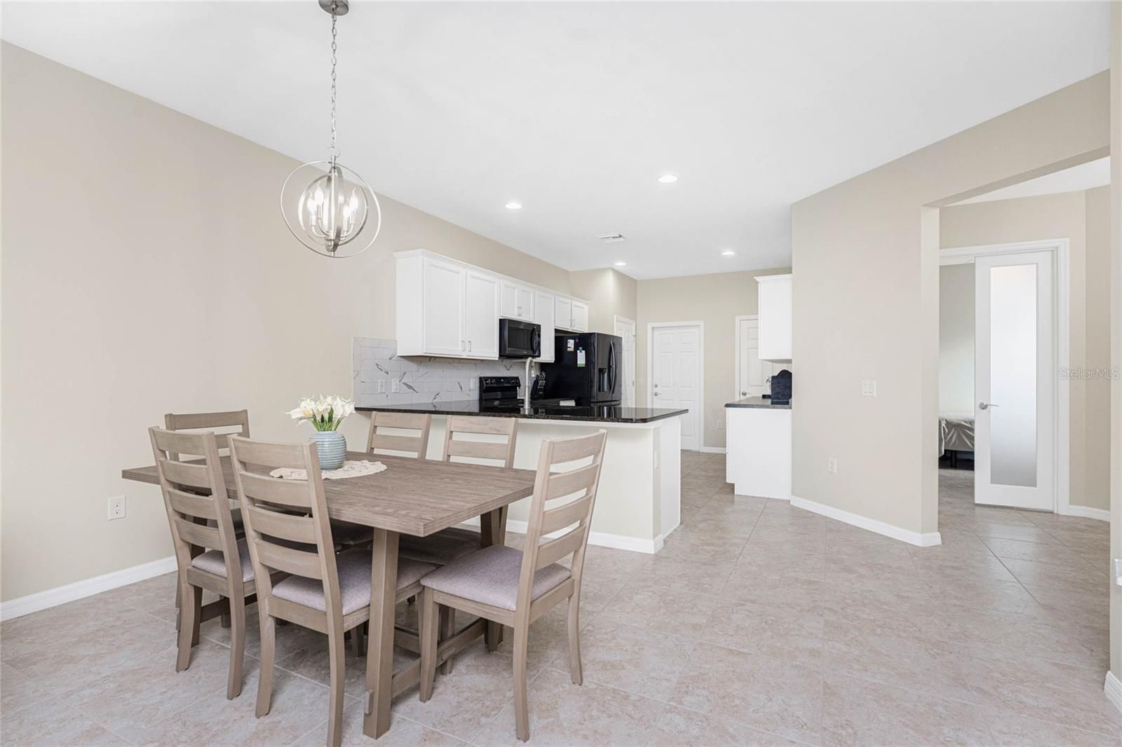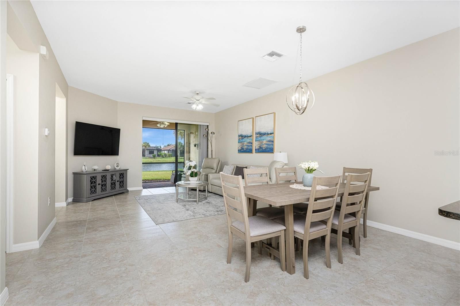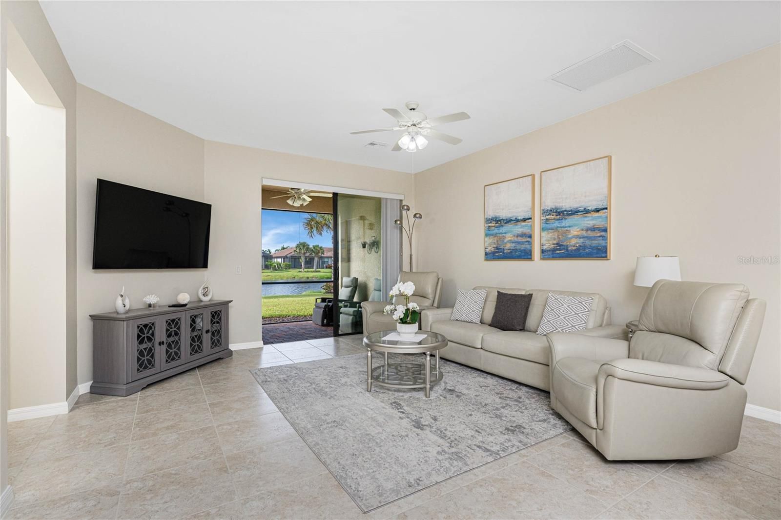 Welcome to this immaculately maintained Seagrove model with a beautiful LAKE VIEW, featuring 2 bedrooms, 2 baths, + den/office/guest room, and an attached 2-car garage! This maintenance-free villa, nestled within the gated community of ISLANDWALK, offers a unique chance to enjoy paradise in one of WELLEN PARK’S most desirable locations, with low HOA fees covering lawn care, cable, internet, resort-style amenities, 24-hour security, and situated in an X flood zone for peace of mind (no flood insurance required). As you enter through the screened front porch, you will find neutral tile flooring throughout and an open-concept layout perfect for both entertaining and everyday living. The split-bedroom design allows privacy for you and your guests, while the versatile den offers frosted glass double doors, providing privacy to use as a third guest room, home office, or quiet retreat. The primary suite enjoys peaceful lake views from two sunlit windows and includes a spacious walk-in closet and an en-suite bath with dual sinks, granite counters, and a walk-in tiled shower. The heart of the home features a spacious kitchen with crisp white cabinetry, sleek granite countertops, and a stylish subway-tile backsplash. A one-level peninsula with bar seating creates the perfect space for entertaining or casual dining. This kitchen also includes a custom built-in dry bar with additional cabinetry — a tailored upgrade that maximizes space and function, adds counter space, and transforms an otherwise empty wall into a functional storage and serving area. Upgrades include a black stainless appliance package (French door refrigerator, smooth-top range, built-in microwave, and dishwasher), complemented by abundant cabinet storage and recessed lighting. The adjoining living and dining areas flow together, creating the perfect setting for gatherings or simply enjoying the peaceful setting. Step outside to your private lanai and take in tranquil water views — the perfect spot for morning coffee or evening sunsets. Additional highlights include an epoxy-finished garage floor, ceiling storage racks, a garage ceiling fan, and WHOLE HOUSE ACCORDION HURRICANE SHUTTERS for peace of mind. IslandWalk is one of Venice's most sought-after communities, offering miles of golf cart, walking, and biking trails over Venetian-style bridges. Residents enjoy an active lifestyle with amenities including a 24-hour staffed gate, full-time lifestyle director, event center, 2 CLUBHOUSES, 2 HEATED RESORT POOLS, a HEATED LAP POOL, 2 hot tubs, 2 FITNESS CENTERS, 12 PICKLEBALL courts, HAR TRU TENNIS courts, DOG PARK, playground, basketball, bocce, an outdoor pavilion with BBQ grills and fire pit, a library, and full-time HOA staff seven days a week. From the resident-only side entrance, you can access Downtown Wellen Park by car, golf cart, bike, or on foot. Nearby are the Atlanta Braves Stadium and the vibrant new downtown district, featuring an 80-acre lake with walking trails, shops, coffee spots, restaurants, a splash pad, fishing areas, kayak rentals, and a public town hall and park hosting concerts and a Farmers Market. The adjoining Marketplace offers Publix, restaurants, shops, banks, professional offices, a gas station, and a brand-new Costco minutes away. The community’s prime location places you just 4 miles from I-75, with pristine Gulf beaches, airports, Historic Venice Island, and year-round cultural events all within easy reach. Call today for your private showing!
