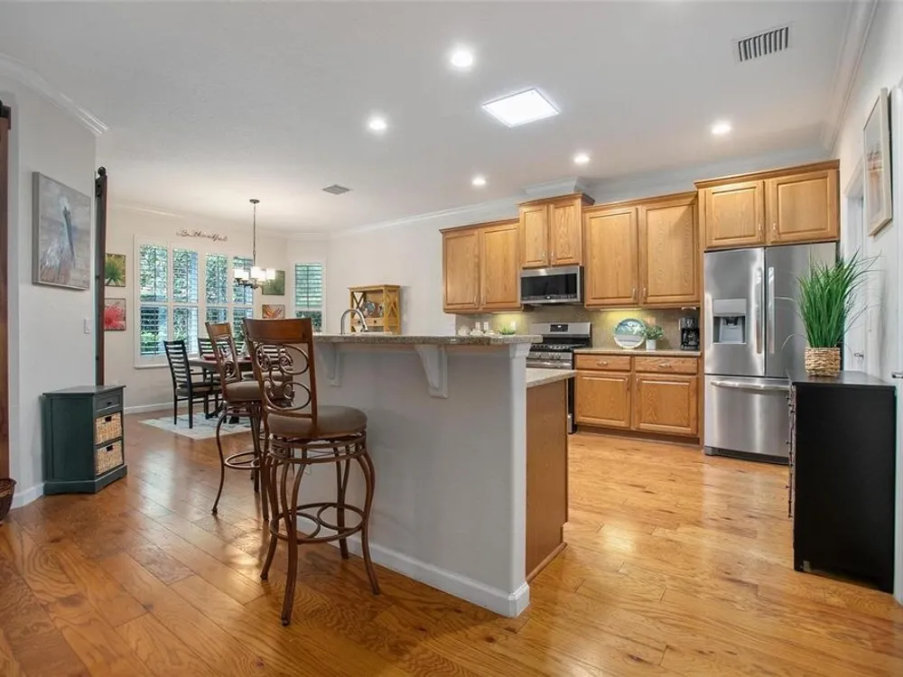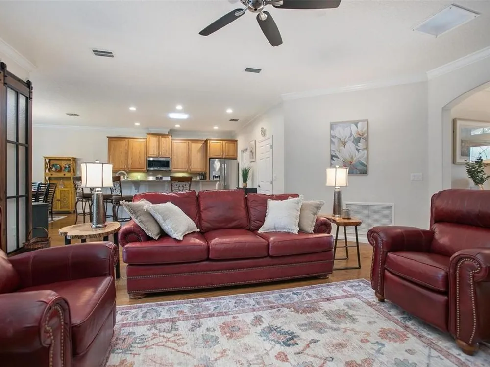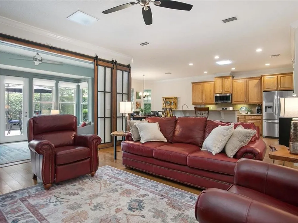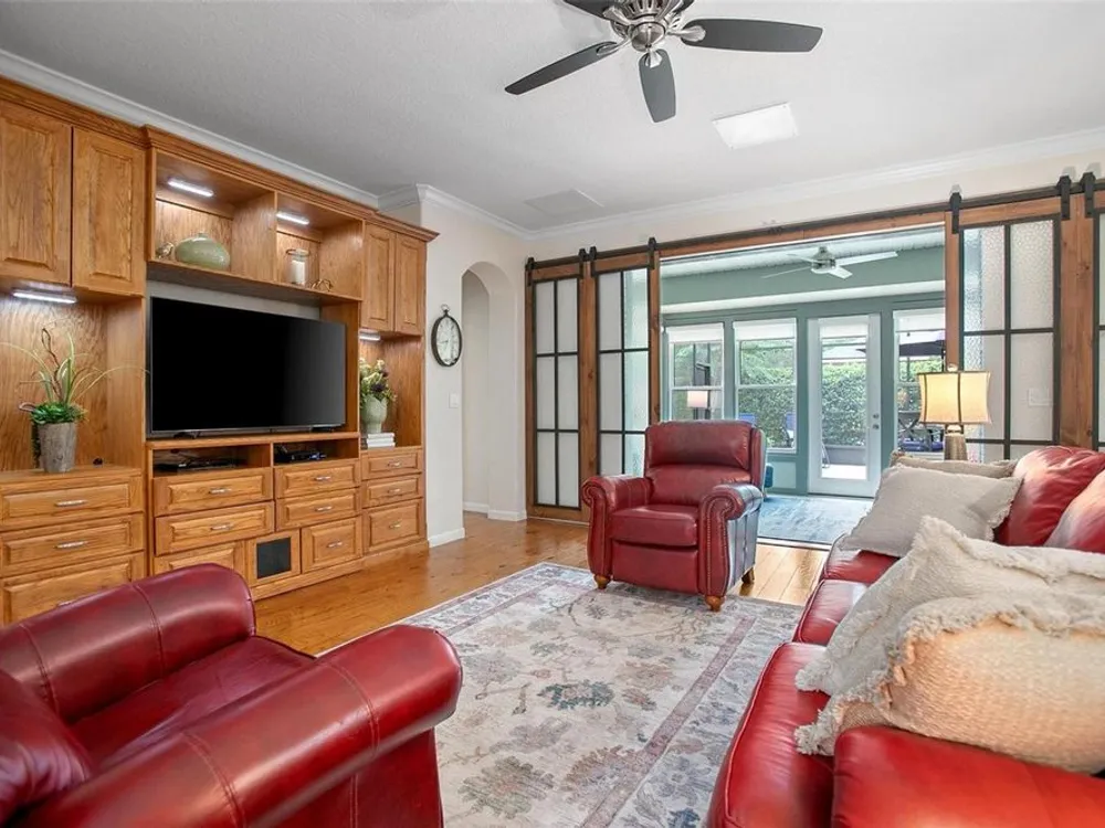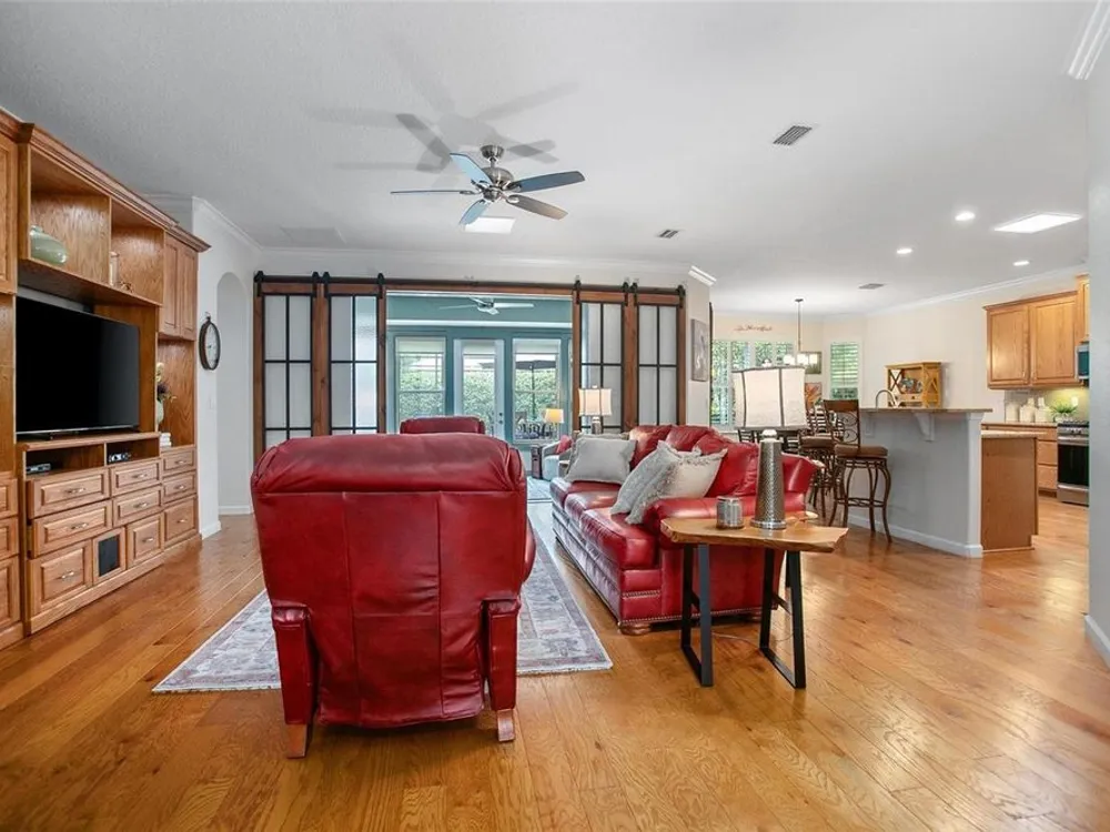 Luxury Oasis in Victoria Gardens – Active Adult 50+ Community Welcome to the “Cabernet” by Shea Homes. This home can be purchased FULLY FURNISHED and TURNKEY if desired! The owners have spared no expense with countless upgrades, including: New Roof, New Irrigation System, New HVAC, New Master Bathroom, New Artificial Turf in Backyard, New Screened Lanai, Custom Sliding Glass Barn Doors (see features attached) Additional highlights: wood flooring, enclosed back porch, tankless water heater, whole-house Aquisana water treatment system, radiant barrier for energy efficiency, double-pane windows with plantation blinds, and elegant ceiling fans. The chef’s kitchen is the heart of the home with 42” maple cabinets, granite countertops, breakfast bar, 5-burner natural gas range, and stainless-steel appliances. The expansive great room includes a built-in entertainment center (removable) and flows seamlessly into the dining area. Custom Sliding glass barn doors open to the enclosed lanai—perfect for morning coffee or evening relaxation. The owner’s suite is spacious and refined, featuring two custom walk-in closets. The split floor plan ensures privacy, while the oversized corner lot offers mature landscaping and a privacy hedge. A large laundry room completes the home’s thoughtful design. Victoria Gardens is renowned for its amenity-rich, resort-style living, including: Private clubhouse with dining, bar, ballroom, and card rooms, fitness center, library, crafts, and travel clubs, resort-style pool, lighted tennis & pickleball courts, bocce ball, daytime manned gates, lawn care, reclaimed water, cable HDTV & high-speed internet, golf course just across the street. All this just minutes from historic downtown DeLand—voted Best Main Street—filled with Southern charm, culture, boutiques, and fine dining. Convenient to Stetson University, shopping, medical facilities, I-4, and only a short drive to Florida’s beautiful east coast beaches.