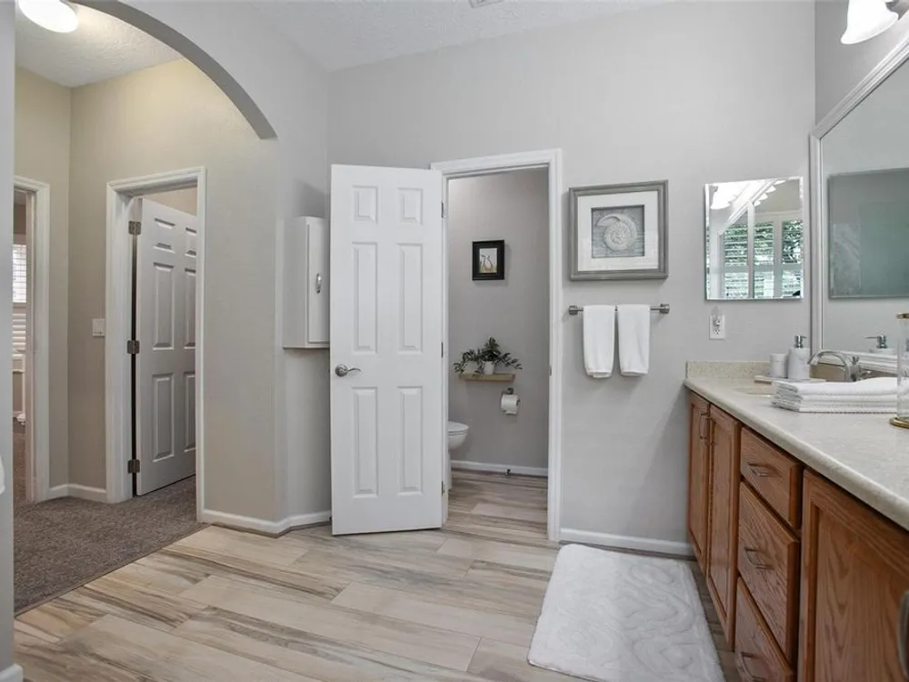 - Ceiling Fan(s), High Ceilings, Main Level Primary, Solid Surface Counters, Solid-Wood Cabinets, Walk-In Closet(s)