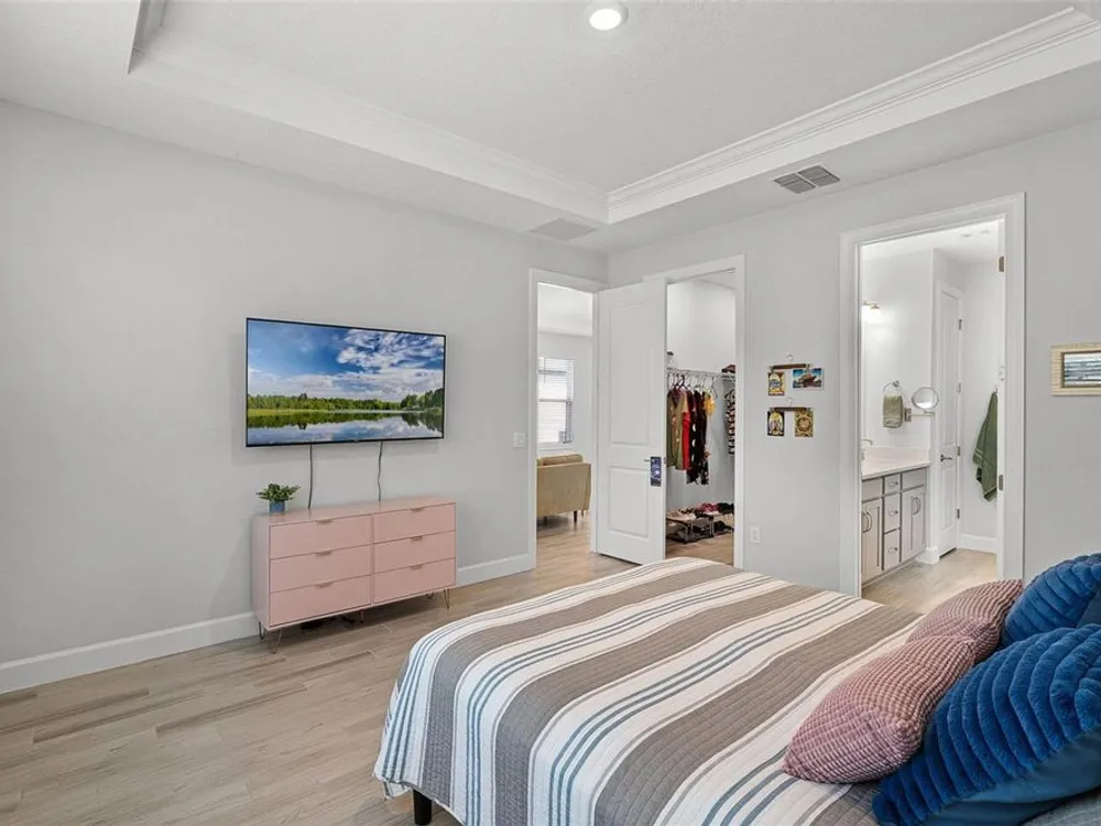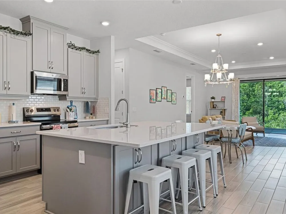 **Buyer Incentive- Seller is offering up to 3% closing cost assistance** Live Fully in Solivita—Where Every Day Feels Like a Getaway! Welcome to this beautifully designed 2-bedroom, 2-bath home built in 2024, offering 1,364 square feet of comfort, style, and serenity. Nestled on a peaceful conservation lot in the heart of Solivita, this residence invites you to enjoy nature’s beauty right from your screened-in lanai—complete with morning birdsong and golden-hour breezes. Inside, tile flooring flows throughout, creating a clean, cohesive space perfect for everyday living and effortless entertaining. The open kitchen connects to a formal dining area, while elegant tray ceilings with crown molding elevate both the living room and primary suite. Custom cabinetry in the laundry room adds convenience, and thoughtful upgrades like gutters and a screened lanai make this home as practical as it is peaceful. But what truly sets this home apart is the community it’s part of. Solivita is an award-winning 55+ lifestyle destination, offering: - Two championship 18-hole golf courses - 14 resort-style pools including heated indoor and outdoor options - State-of-the-art fitness centers with yoga, Zumba, aerobics, and personal training - The Palms Amenity Complex for pickleball, swimming, and social gatherings - Riviera Spa & Fitness Center with an indoor walking track and wellness classes - Waterfront Galleries for ceramics, painting, and creative workshops - Solivita University, offering engaging courses like Broadway Theater and Writing with AI - Village Center with restaurants, shops, farmers markets, and live entertainment at the Starlite Ballroom - Family-friendly amenities including playgrounds, splash pools, and easy access to Disney and Universal Whether it’s coffee on the lanai, dancing to tribute bands, or taking a ceramics class with lake views, Solivita offers a lifestyle that’s rich in joy, health, and connection. And with HOA-covered lawn care, irrigation, cable, internet, and 24-hour security, you can truly relax into the retirement you deserve. This is more than a home—it’s your invitation to live fully.