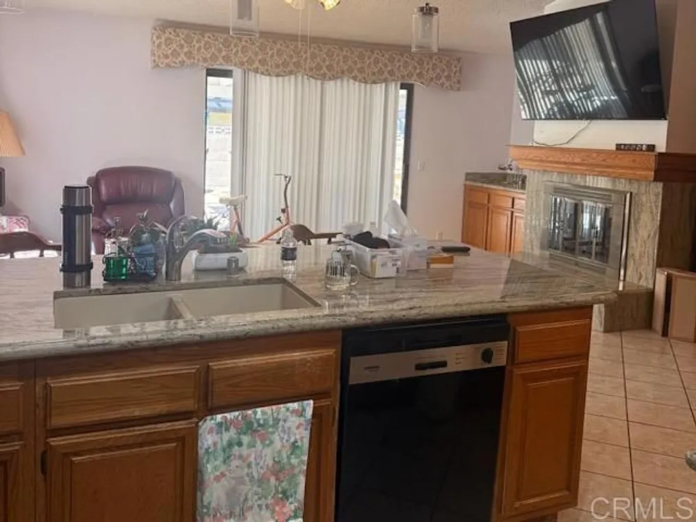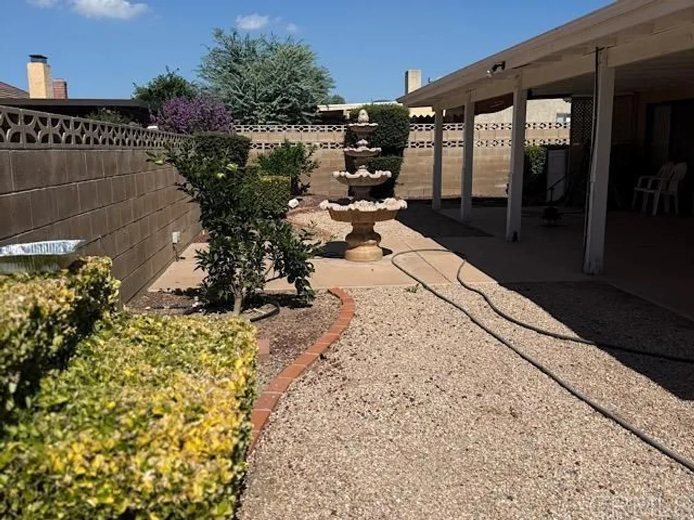 Charming single-story home with Spanish style tile roof and low-maintenance desert landscaping. Features include an open floor plan, vaulted ceilings, tile and wood flooring, and a cozy fireplace. The kitchen offers granite countertops, breakfast bar, and plenty of cabinet space. Relax in the spacious backyard with covered patio and decorative fountain. Convenient two-car garage and excellent curb appeal - ready to move in and enjoy!