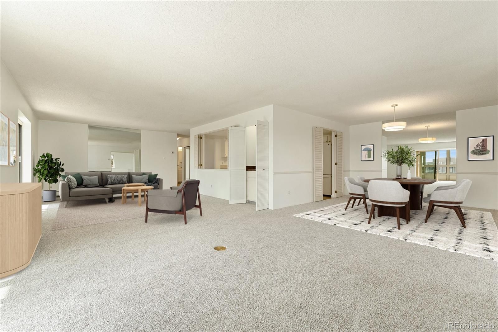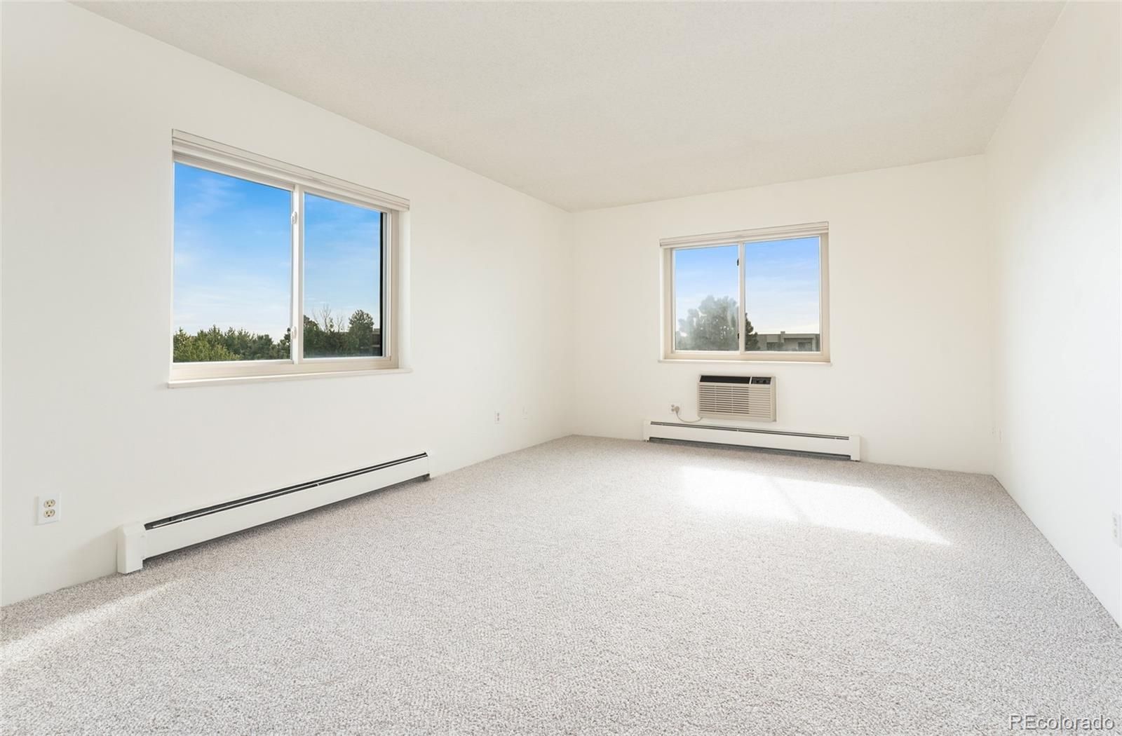 Premium and coveted top-floor Executive Suite in the highly desirable Heather Gardens, an active 55+ community in the SE Metro area. This rare corner unit offers a spacious open layout and top-of-the-line features, including three bedrooms—an uncommon find in the community. Situated on 200 acres of park-like grounds accented by a public golf course with discounted rates to residents, Heather Gardens is by far one of Colorado’s finest senior and retirement communities. Professionally managed with attentive staff, 24/7 security, and over 100 clubs, classes, and activities, residents enjoy a vibrant lifestyle with endless opportunities for social connection and personal enrichment. This bright, sunny top-floor unit has been thoughtfully updated with brand new carpet, light fixtures, interior door knobs, cabinet hardware, and crisp fresh paint in 2025. The home features two enclosed sunrooms, a spacious living room with wet bar, and a dining area that flows seamlessly for easy entertaining. The kitchen includes a convenient pass-through cutout to the living room, while the expansive primary retreat is thoughtfully separated from the guest bedrooms and offers dual closets and a private en-suite bath. Attached bath and walk-in closet in one of the guest bedrooms. Additional highlights include an in-unit washer and dryer, generous storage, and numerous modern updates such as a walk-in shower in the attached bath, granite counters in the third bathroom, new sliding doors, new lanai/sunroom windows, newer laminate flooring, and a stainless refrigerator. Beyond the community, residents enjoy easy access to a variety of nearby retail shops, medical services, Cherry Creek State Park, and the Nine Mile light rail station, providing quick connections to downtown Denver and DIA. This exceptional home combines space, style, and the ultimate Heather Gardens lifestyle.