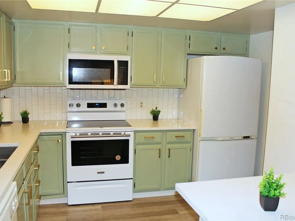 This stunning, remodeled top floor end unit has a wonderful location overlooking the Seville pool/hot tub, pickleball courts and koi pond! Step through the door onto the new luxury vinyl plank floors that extend to the living room and kitchen and enjoy the fresh paint throughout. Cook your favorite meals in the remodeled kitchen with freshly painted cabinets with new hardware, tile backsplash, Quartz countertops, breakfast bar, double deep stainless sink with new faucet and disposal, and new electric range with a glass top. Relax in either bedroom with new blinds, including room darkening blinds in the 2nd bedroom. New ceiling fan in the living room and an upgraded electrical panel too. Drink your coffee on the enclosed lanai and enjoy views of Pikes Peak and the manicured grounds of the Seville area. Appreciate the lovely “community within a community” that the Seville area provides, or head to the clubhouse to enjoy the activities, fitness center, indoor/outdoor swimming pools, pickleball courts, tennis courts, golf course, restaurant and more! Learn about all the amenities at https://www.heathergardens.org/ One under building garage parking space.