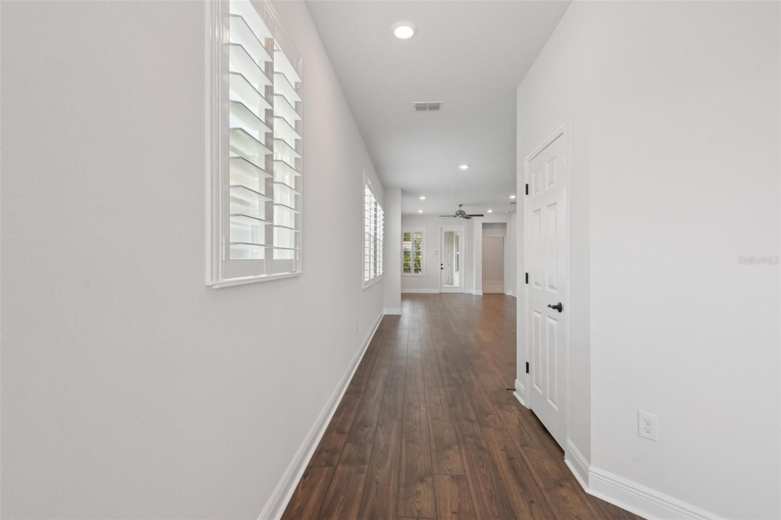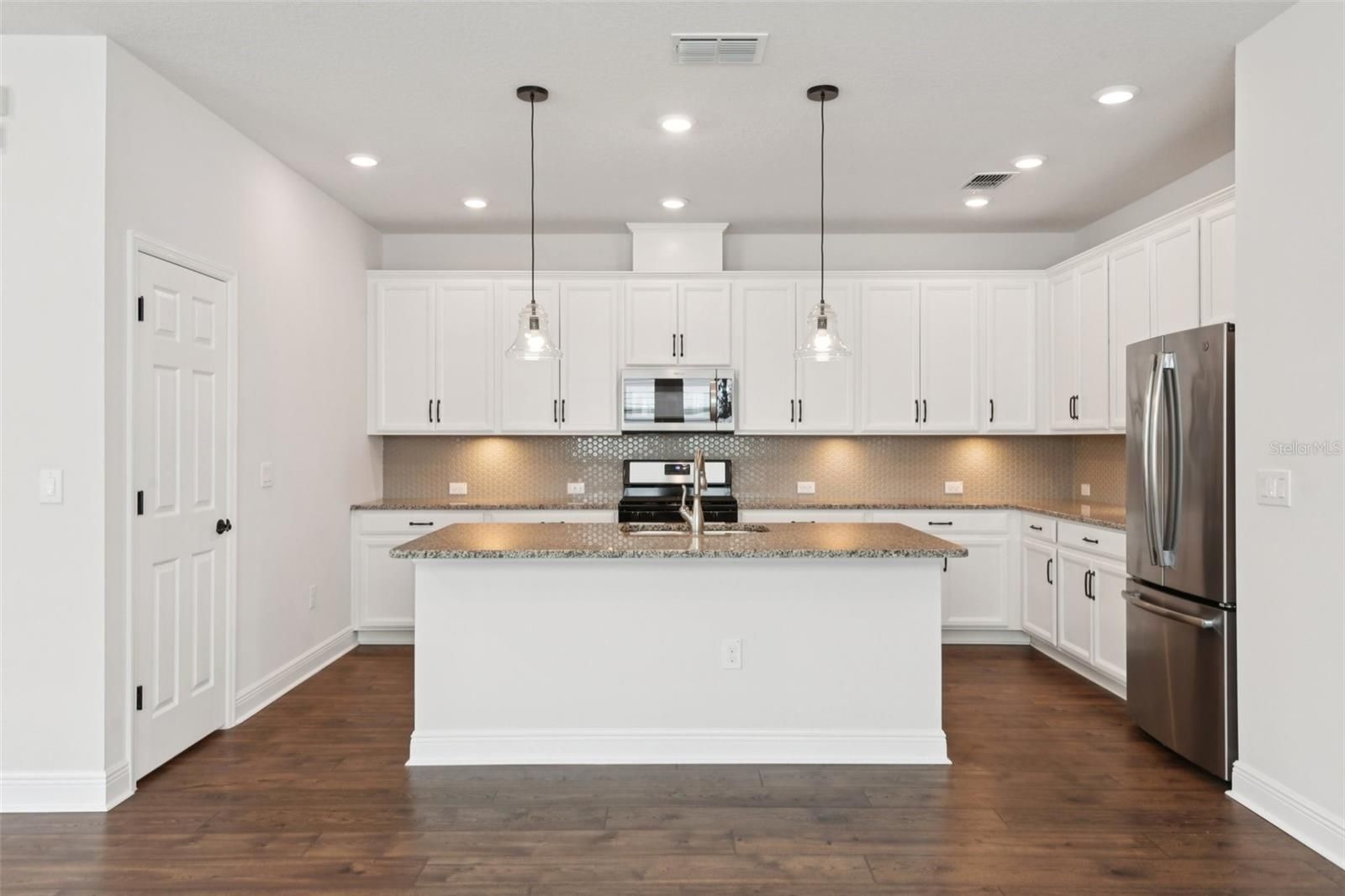 One or more photo(s) has been virtually staged. ***PRICE REDUCTION*** Welcome home to easy living and lasting comfort in Fishhawk’s gated Encore 55+ community by David Weekley Homes. This beautifully designed single-story villa combines thoughtful upgrades, open spaces, and a low-maintenance lifestyle. Sun-filled interiors with high ceilings and recessed lighting flow into a den with French doors and an open layout that connects the kitchen, dining, and family room. The gourmet kitchen features a large prep island with seating, a spacious pantry, 42-inch wood cabinets with soft-close drawers, granite countertops, stainless steel appliances, a gas range, and under-cabinet lighting. The primary suite offers a tray ceiling, dual vanities with granite tops, a walk-in shower, and an expansive closet. The split plan provides privacy, with a comfortable guest bedroom and full bath nearby. A large laundry room with LG washer and dryer, folding counter, and storage adds convenience. Freshly painted and landscaped, this home includes brick-paver walkways, smart lighting controls, designer fixtures, crown molding, new carpet, luxury vinyl plank flooring, and Sunburst Plantation Shutters. The fenced yard with mature landscaping is perfect for pets, and the screened patio connects to a two-car garage with built-in pest control and irrigation. HOA covers lawn care and exterior maintenance for worry-free living. Encore residents enjoy a full social calendar led by a Lifestyle Director and access to the Oasis Club’s many amenities—heated infinity pool, pickleball and bocce courts, BBQ patio, and more—creating a vibrant, connected way of life.