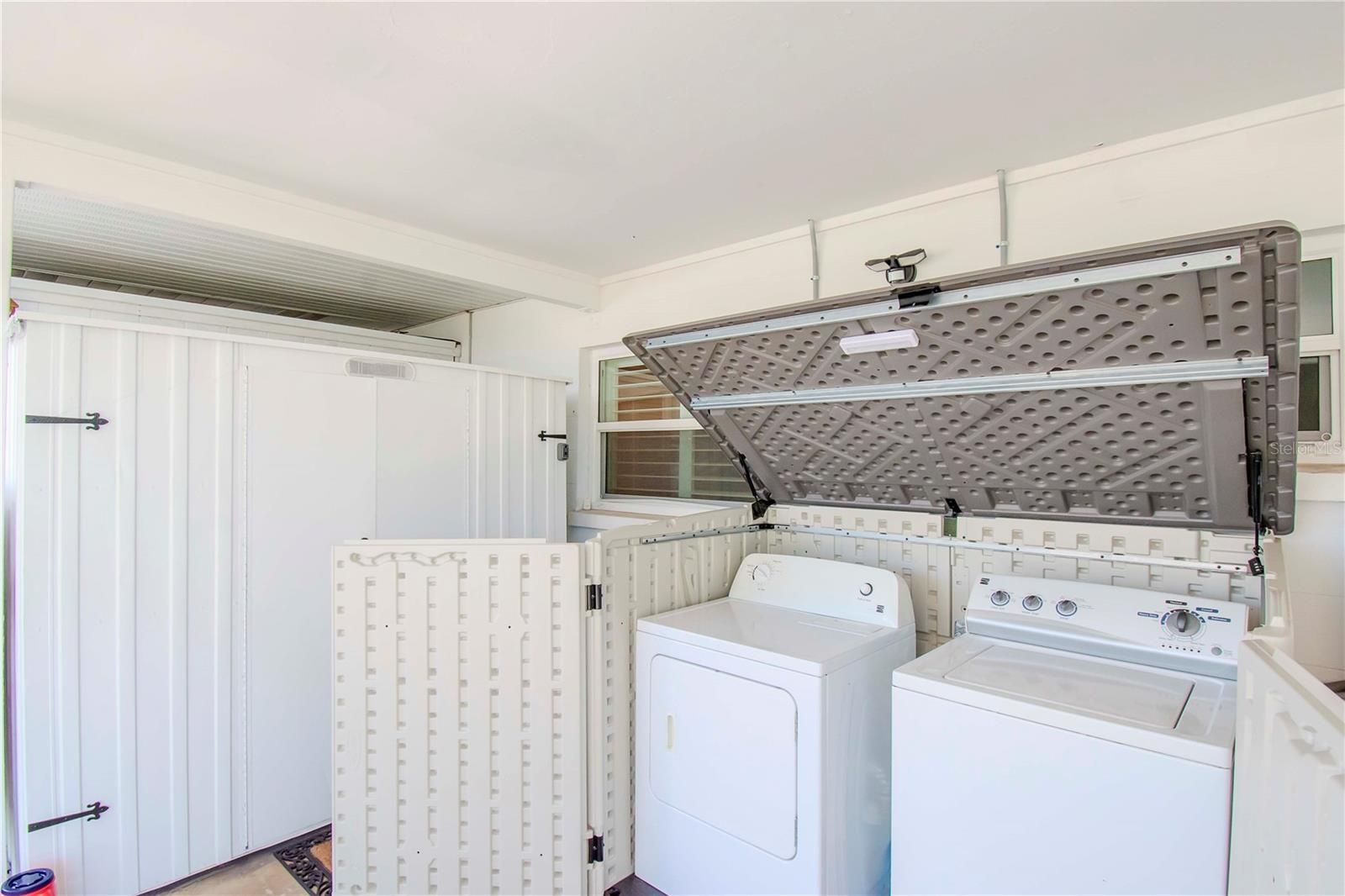 If you are looking for affordable island life living welcome to Beach Manor Villas on the island in Venice, a 55+ community. This unit is a 2 bedroom/1 bathroom bright and clean villa and is being sold fully furnished. This villa offers hurricane impact windows with newer plantation shutters (2022), a newer dishwasher, disposal and microwave (all 2023), ceiling fans are also newer as is the fully glass storm door and the updated exterior lighting fixtures. Also added was a barn door for the hall closet. There is a washer and dryer for your convenience in the carport and a shed for extra storage. The electric panel was updated in 2023, attic insulation was added in 2024, and UV protection was added to the A/C unit in 2023. The front gutters were added in 2020, and the roof was replaced in 2018. Quintessential beach life living begins here less than 1 mile to the Gulf beaches. In addition, there is a public golf course with a driving range nearby, Sharkey's fishing pier, and historic downtown Venice with a farmers market every Saturday morning a short bike ride away. Venice theatre, access to the Legacy bike trail and restaurants and entertainment are all within minutes! Beach manor villas has an active social committee throughout the year. There is a year round heated pool, shuffleboard court and a community clubhouse.