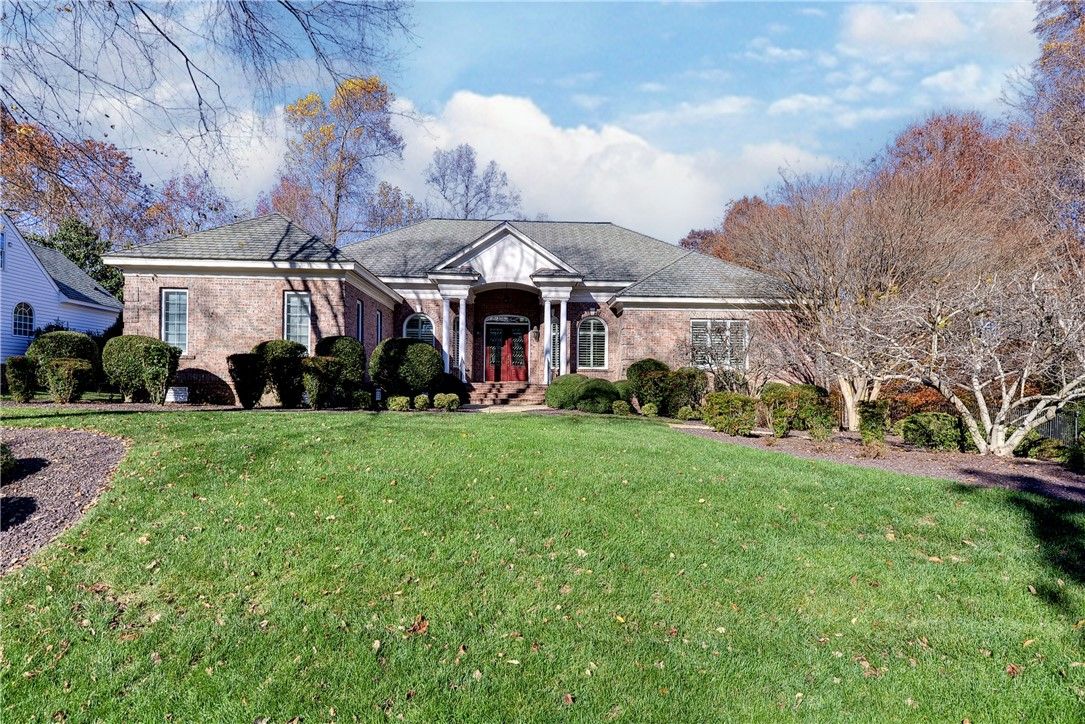 Simply extraordinary! Located in the sought-after Sandy’s Fort section of Kingsmill, this elegant updated rancher offers luxury one-floor living plus an exceptional 5+-car garage. Privately set on a wooded lot backing to protected space, the all-brick home provides total privacy and beautifully finished interiors. The living room features a cathedral ceiling and custom bar with wine cooler and beverage fridge, opening to a music or flex room. A stunning new sunroom with coffered ceiling and walls of windows overlooks wooded serenity, and a unique built-in commercial grilling area elevates entertaining. The family room with fireplace and built-ins opens to the updated kitchen with new granite, gas cooktop, warming drawer, and new refrigerator. A breakfast area showcases stained glass, and a first-floor office includes built-ins. The elegant primary suite offers a tray ceiling, three customized walk-in closets, and a peaceful bay-window sitting area. Two guest bedrooms share a Jack and Jill bath. The extraordinary lower level provides a 5–6 car garage with elevator access workshop, storage, exercise room, wine cellar, , plus a generator and new/refinished wood floors.