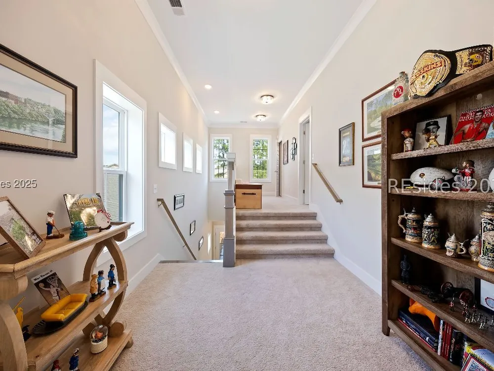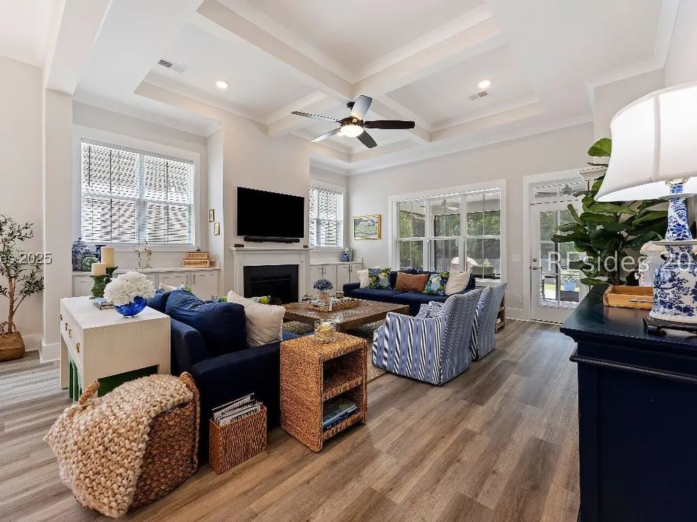 Welcome to 139 Hampton Lake Crossing, a stunning home in Bluffton's most desirable lakefront community. This thoughtfully designed residence features numerous upgrades, including custom kitchen cabinetry, custom closets, and built-in organization throughout. Designed for relaxation, the fenced backyard features an expanded paver patio and stairs overlooking the peaceful lake and protected nature preserve. Inside, the open-concept layout offers seamless flow for everyday living and entertaining, while a whole-home water filtration system adds comfort and convenience. Hampton Lake residents enjoy world-class amenities including resort-style pools, boating, fishing, fitness center, spa, tennis, pickleball, and on-site dining at Backwater Bills. With its blend of luxury finishes, modern upgrades, and serene setting, this home is the perfect Lowcountry retreat.