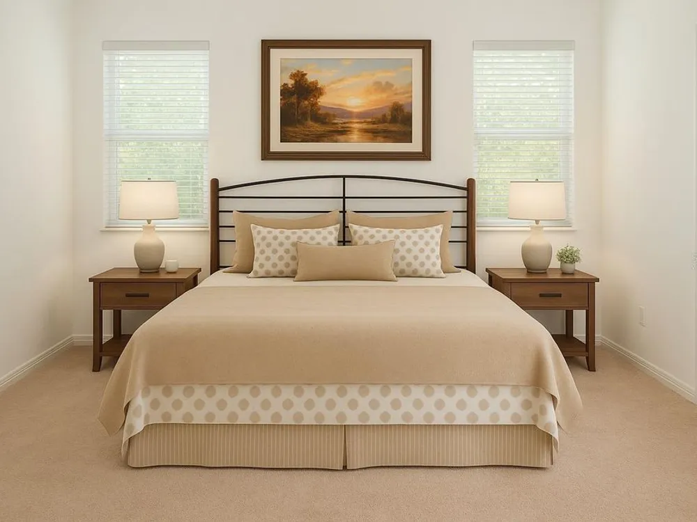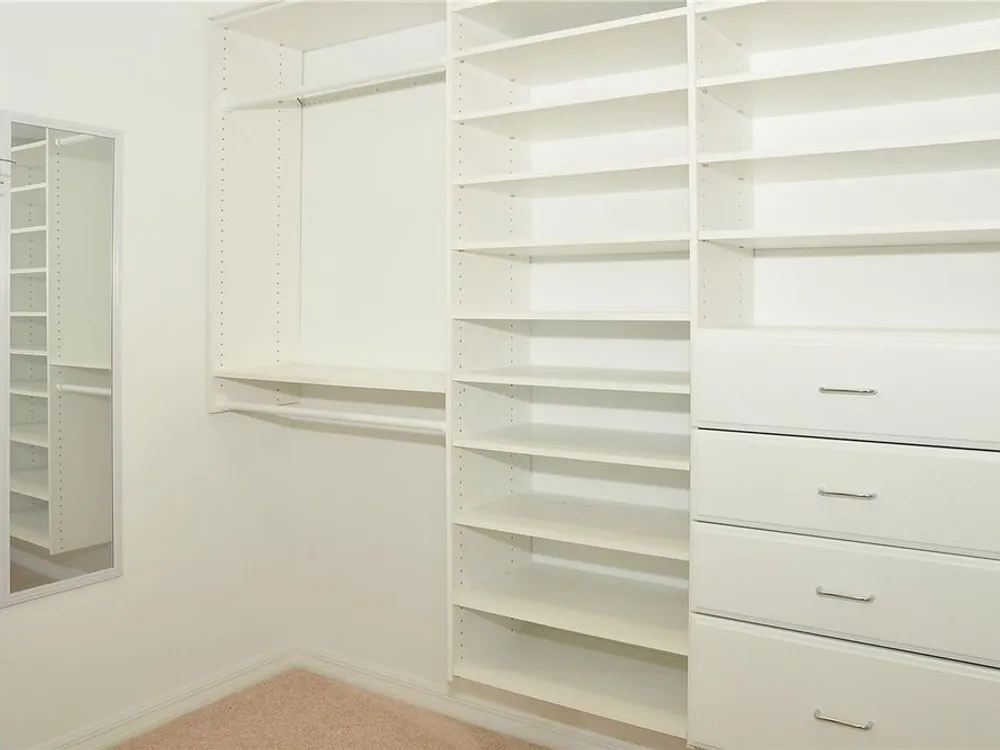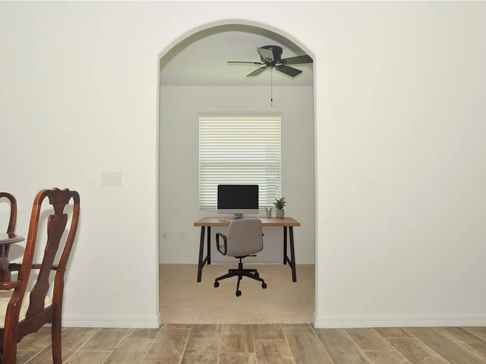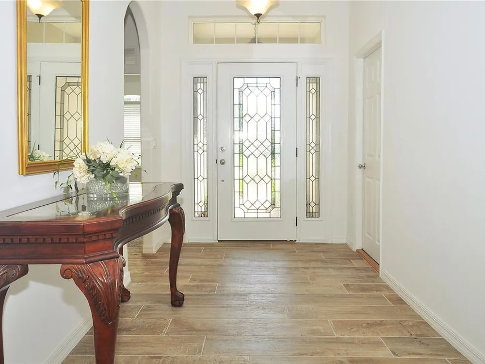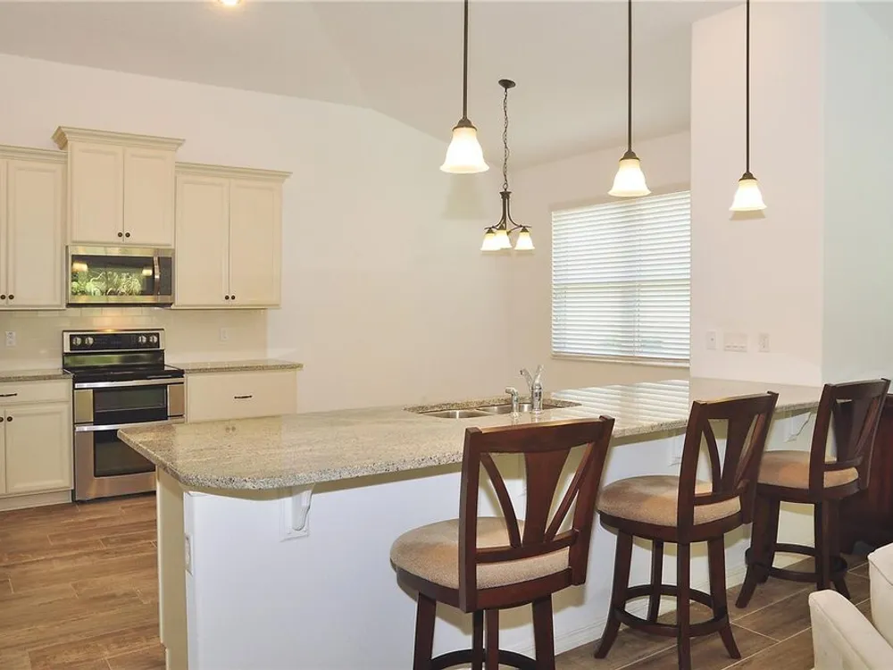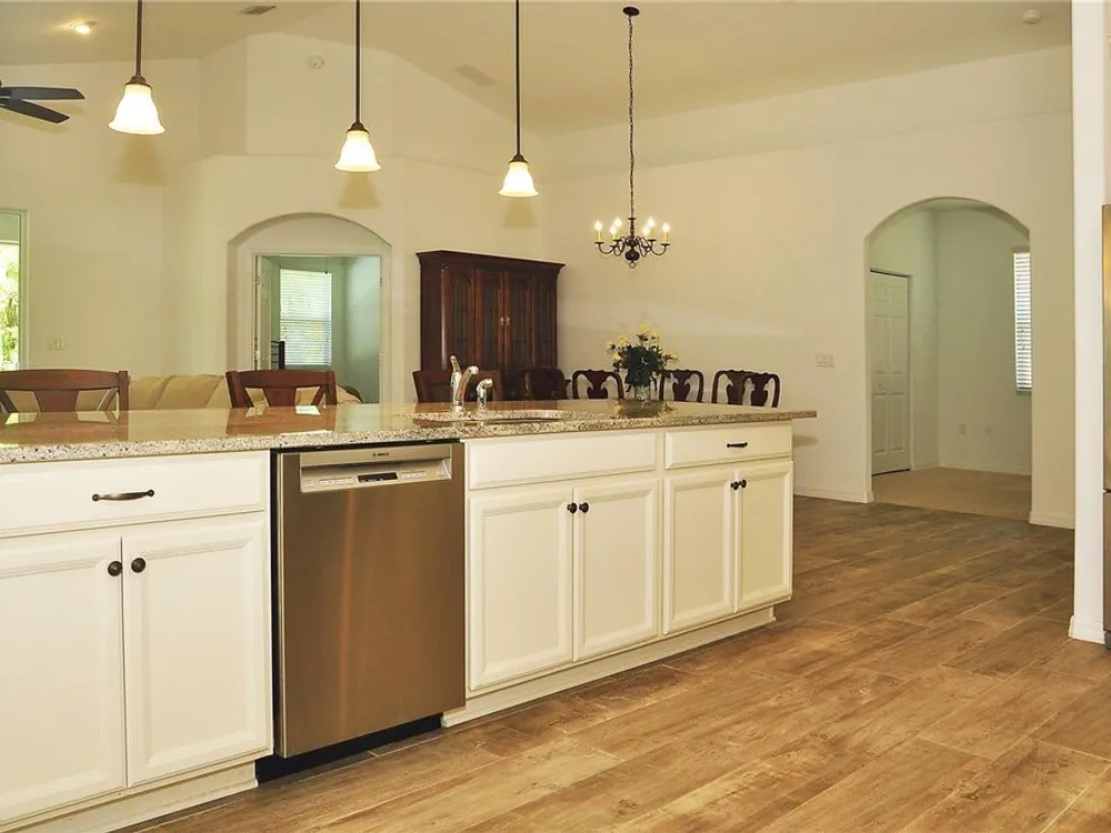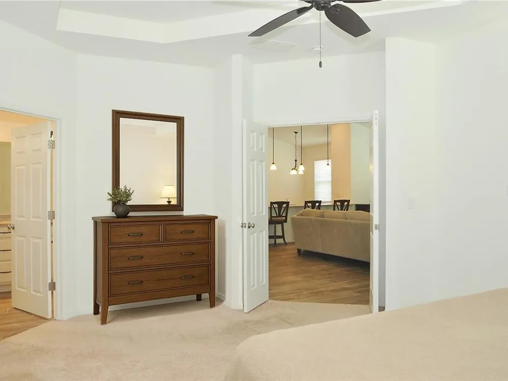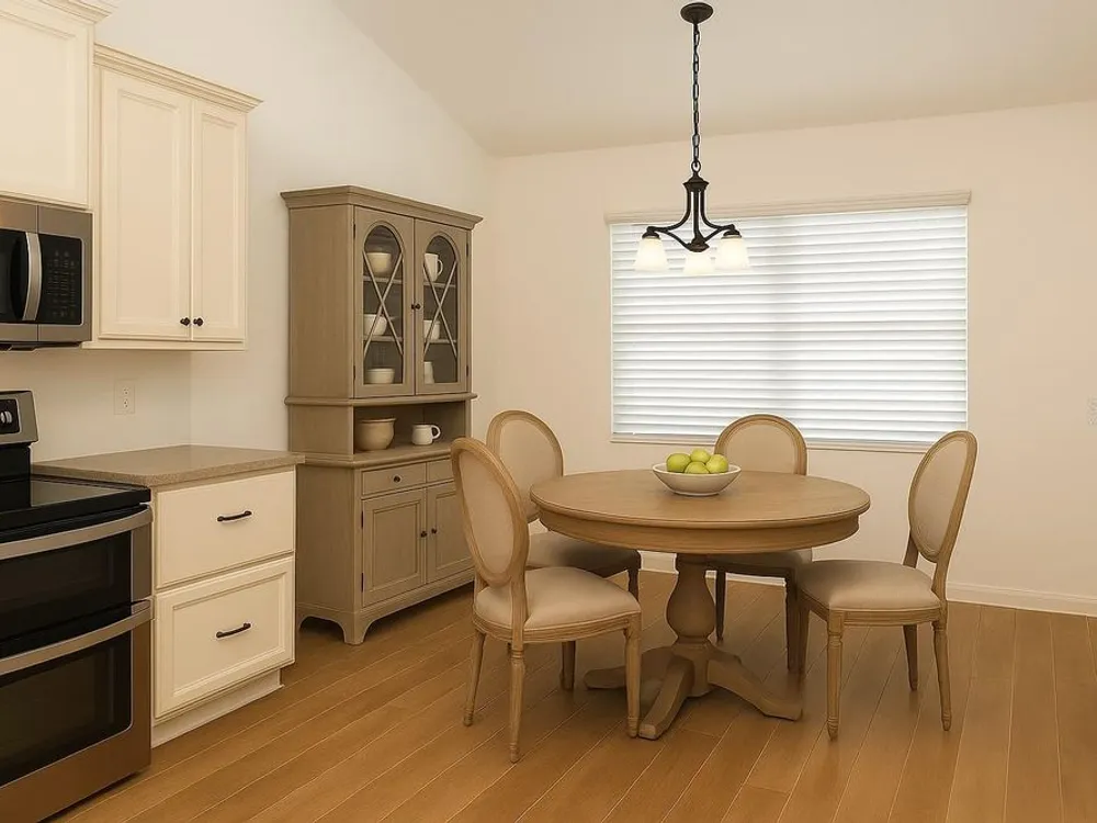 - Eat-in Kitchen, Living/Dining Room, Open Floorplan, Main Level Primary, Solid Surface Counters, Thermostat, Tray Ceiling(s), Vaulted Ceiling(s), Walk-In Closet(s), Window Treatments