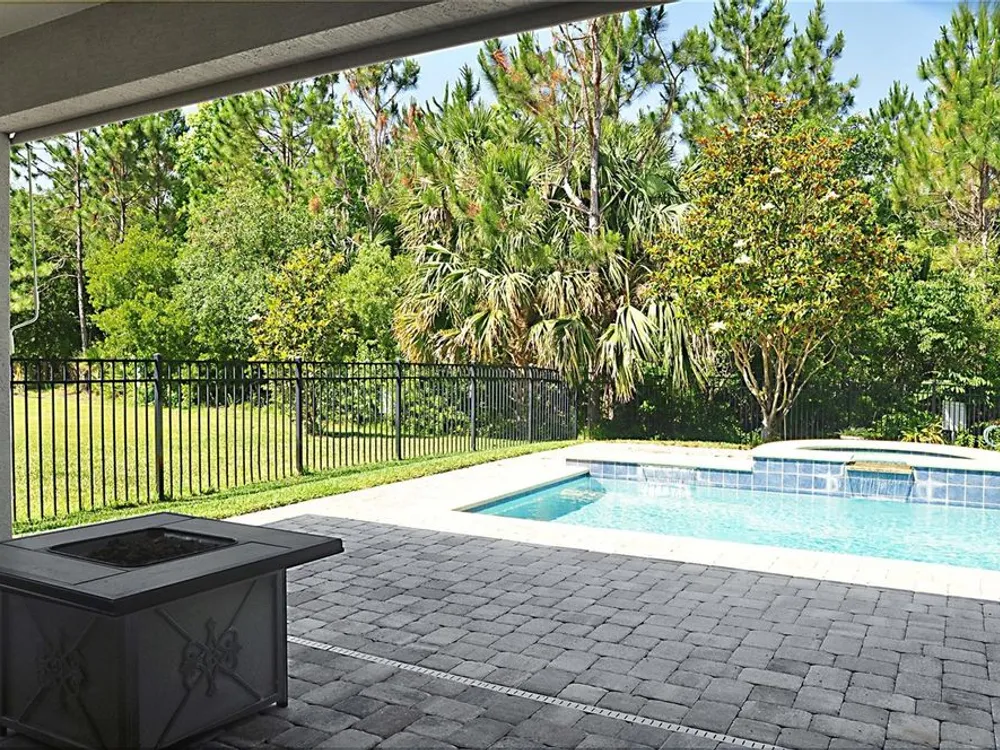 PLEASE READ: Approx. $10,000 of work done recently. See realtor remarks, and or call for info. Relax in the "The only pool home in Gated Park Place", Pool with heated spa with waterfalls. Brick pavers galore. Fire pit. Fenced. Backs up too the largest area of conservation land. Your oasis. Seagate Nottingham Model,(built 2017) complete with gutters that run water underground, paver driveway/walkway/entrance.. Add to that the beauty of a leaded glass door and sidelights. Beautifully landscaped. Well water for lawn. Has been disconnected, can be reconnected. Water purification system. Keyless entry on garage, as well as side door to lawn. Step into your home with tile that resembles hardwoods. Extra large eat in kitchen. granite tops, upgraded cabinets, large pull out drawers, sliding out shelving for ease of access. Pantry with wood shelves. Vaulted great room with 8' triple sliders for that serene view of your pool. 17' pull down shade on lanai. Relax in your Master bedroom with trey ceiling, and custom built walk in closet. Step into you private master bath with dual sinks, linen closet, and hidden commode. Recessed lights, ceiling fans, upgraded fixtures galore. 2" window blinds. Furniture available.(negotiable) All appliance convey. Enjoy your double oven when those grandchildren come to visit. HOA of $230.baths00/mo. includes: Lawn Care, Spectrum Platinum Package, pool, summer kitchen, Grill, shuffle board, pickle ball, horse shoes, corn hole, putting green, and events. Close to shopping, hospitals, golf, parks. What more could you want. Come relax in Park Place. Only 123 homes. PRICED TO SELL !