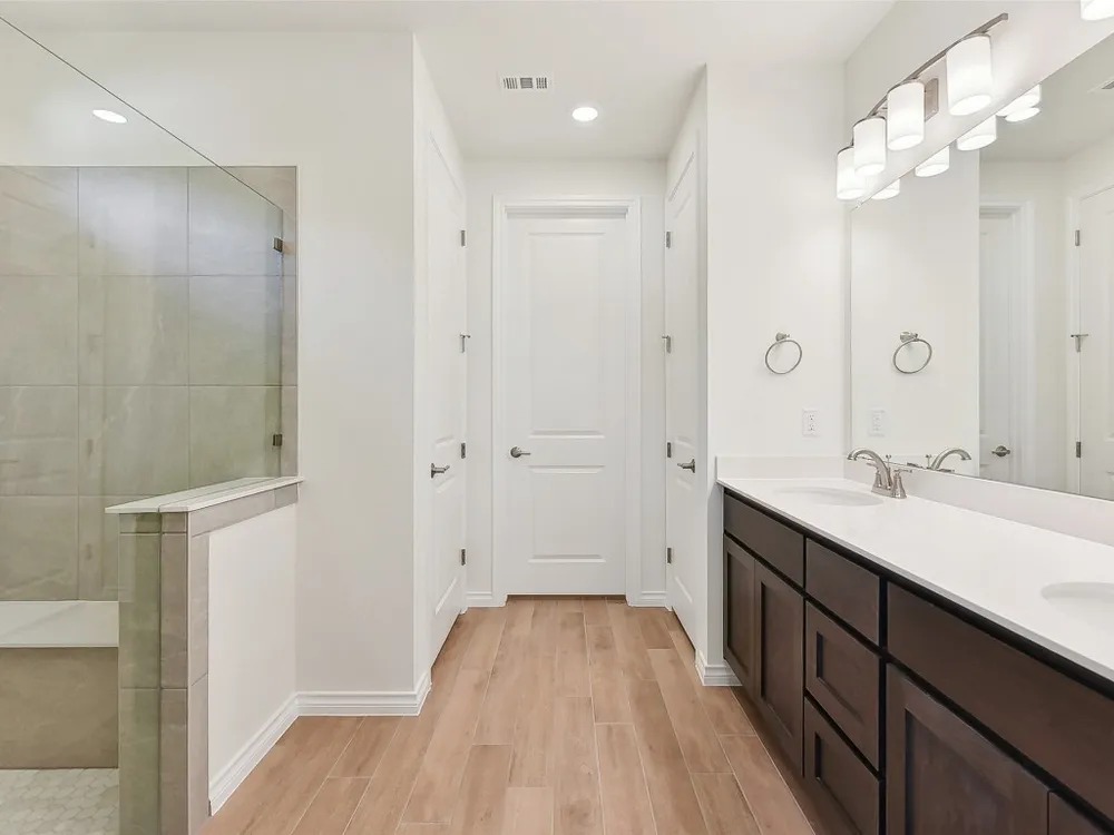 Evia plan with SHORE upgraded flooring, quartz countertops, 8' doors downstairs