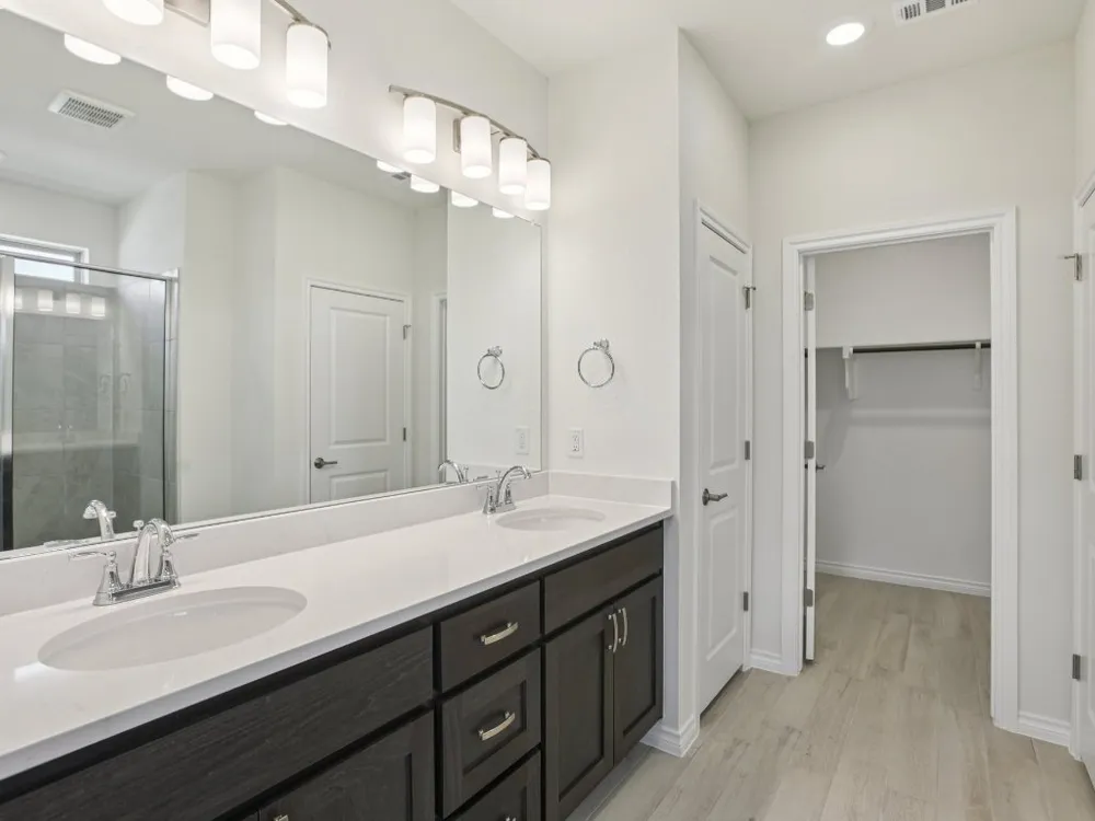 - Ceiling Fan(s), Double Vanity, Kitchen Island, Main Level Primary, Pantry, Quartz Countertops, Smart Home, Walk-In Closet(s)