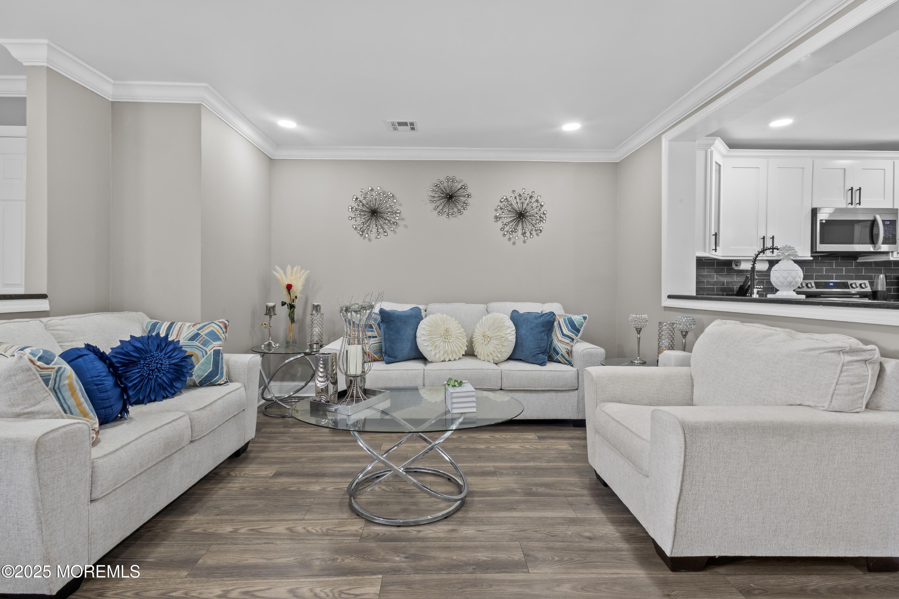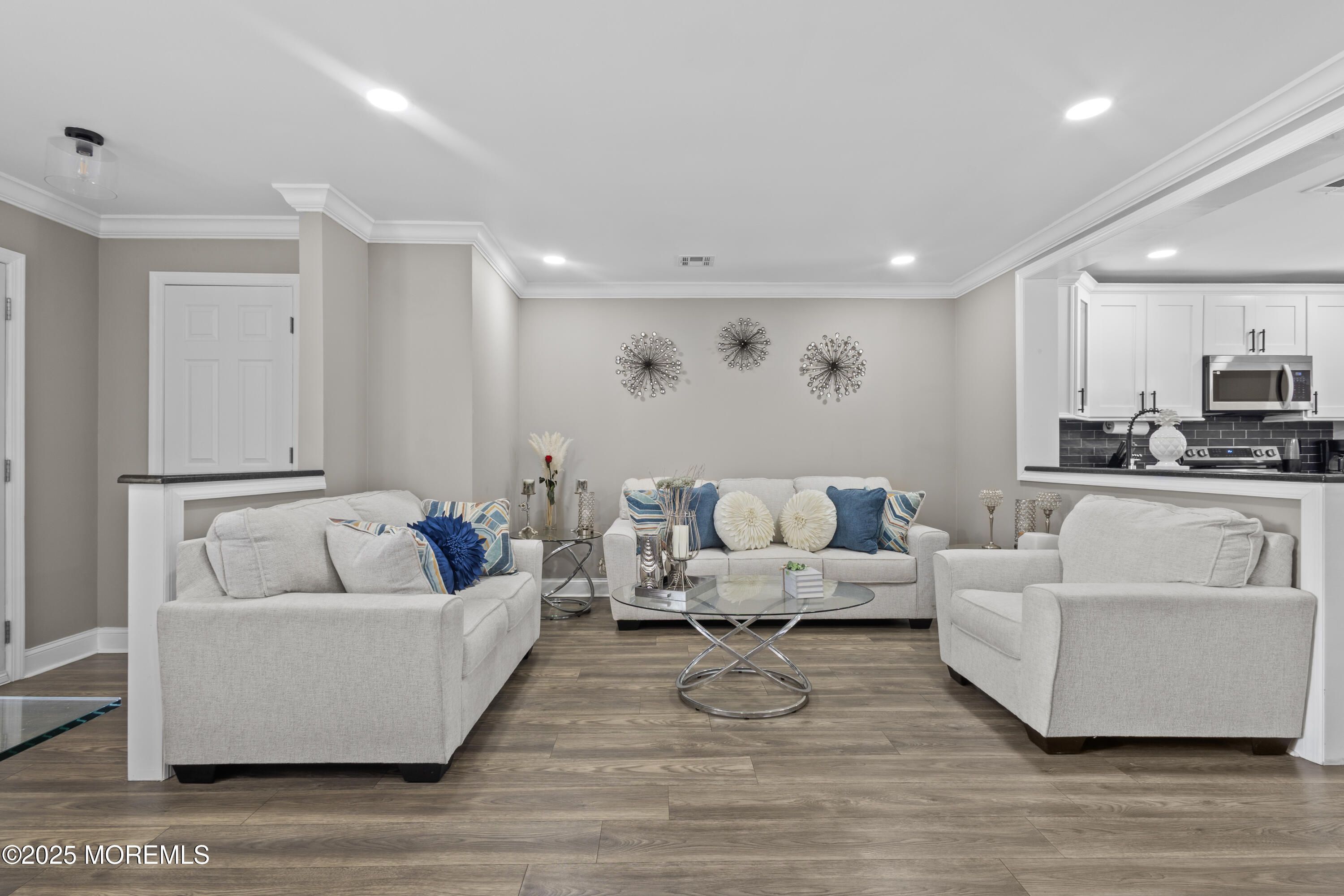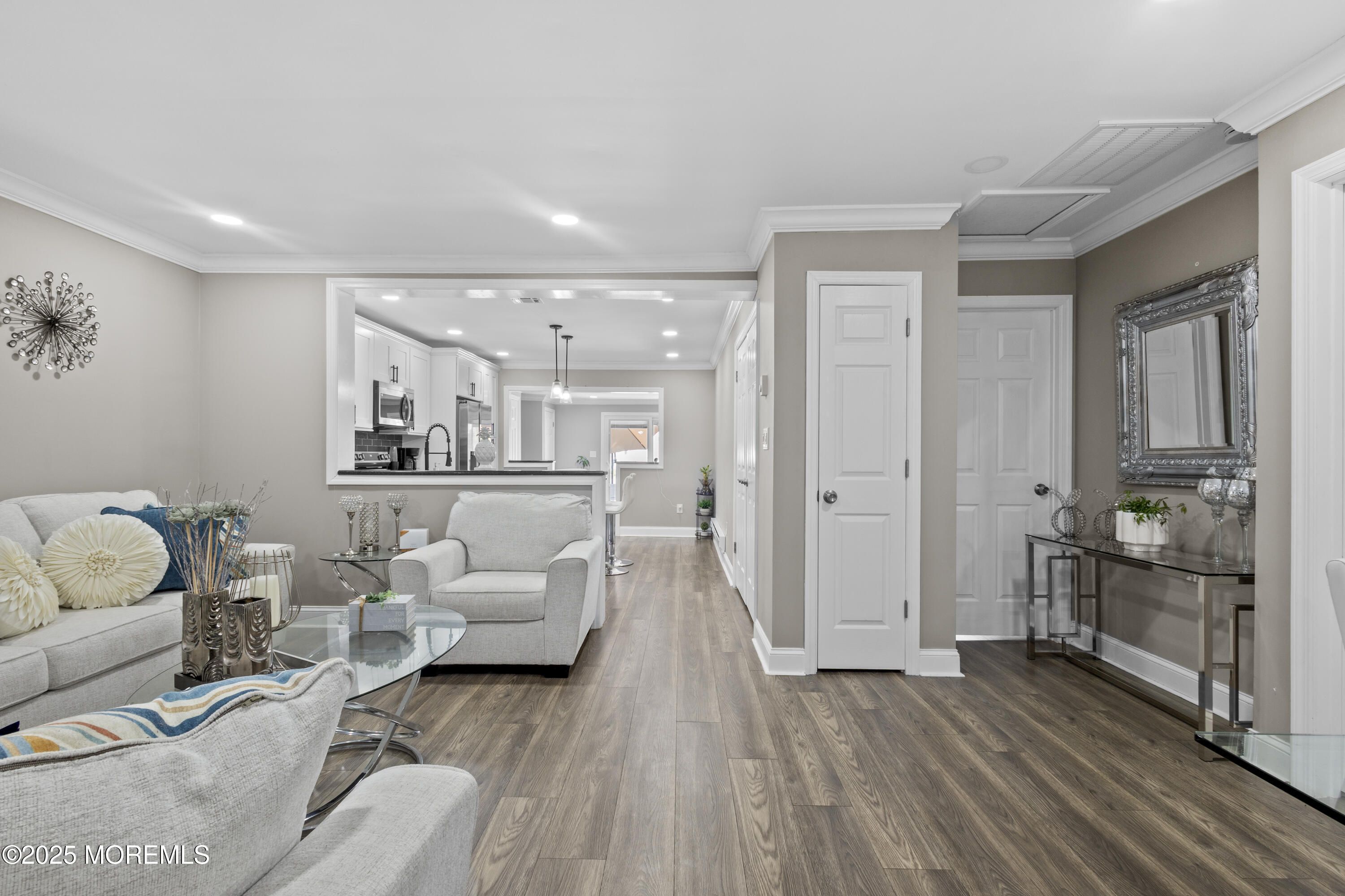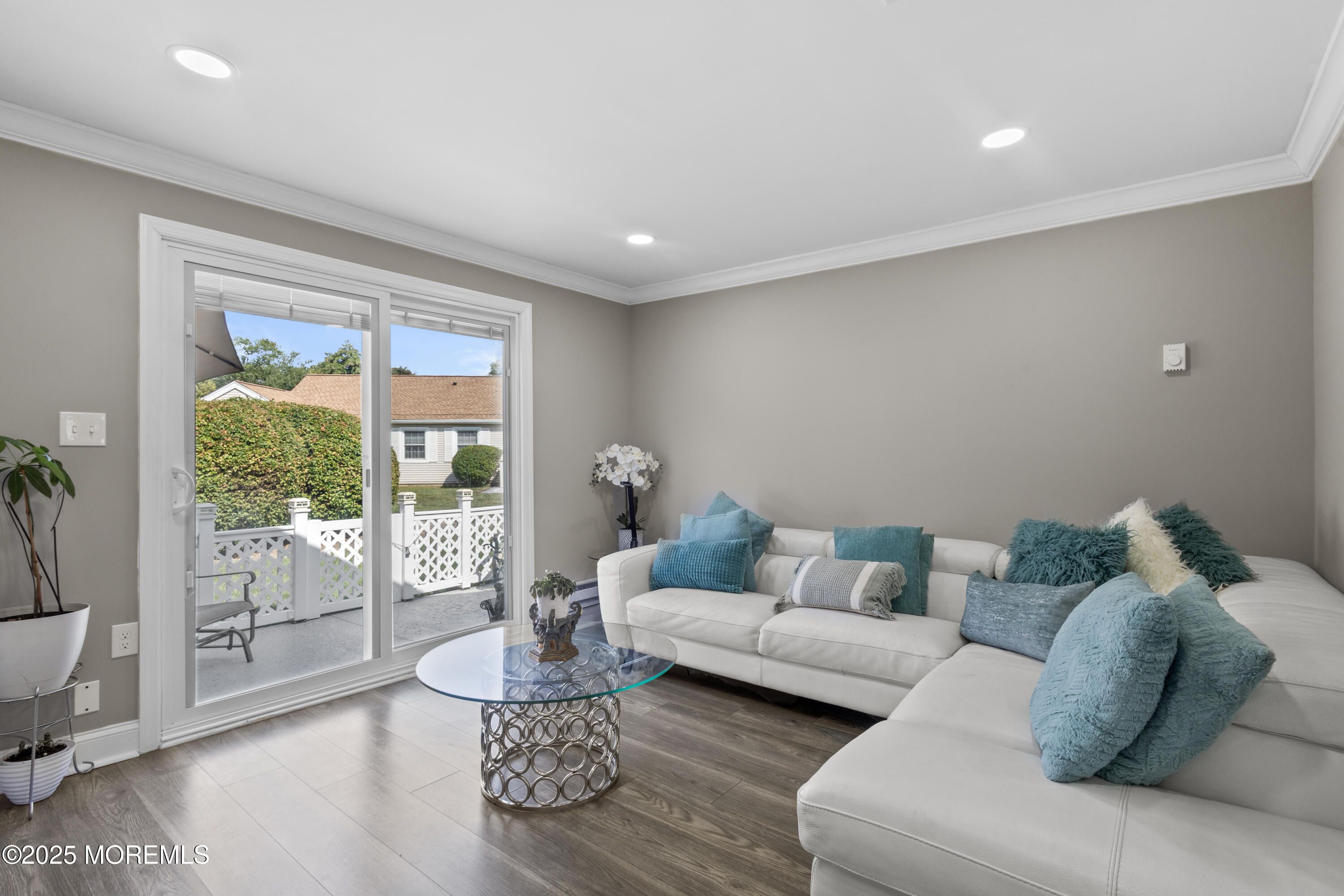 Nestled in the highly desirable Villages 55+ community in the heart of Monmouth County, this move-in ready 2-bedroom, 2 full-bathroom ranch-style unit offers the perfect blend of comfort, style, and convenience. This unit stands apart with professional insulation in both the crawl space and attic—delivering unmatched energy efficiency for year-round comfort and lower utility bills. Every detail has been thoughtfully upgraded to create a move-in ready home unlike any other. Step inside to a spacious open-concept layout with recessed lighting throughout, featuring a custom kitchen with a large center island/breakfast bar, and plenty of cabinet space. The living and dining areas flow effortlessly, enhanced by new laminate flooring, fresh crown/base molding, and a versatile den space.