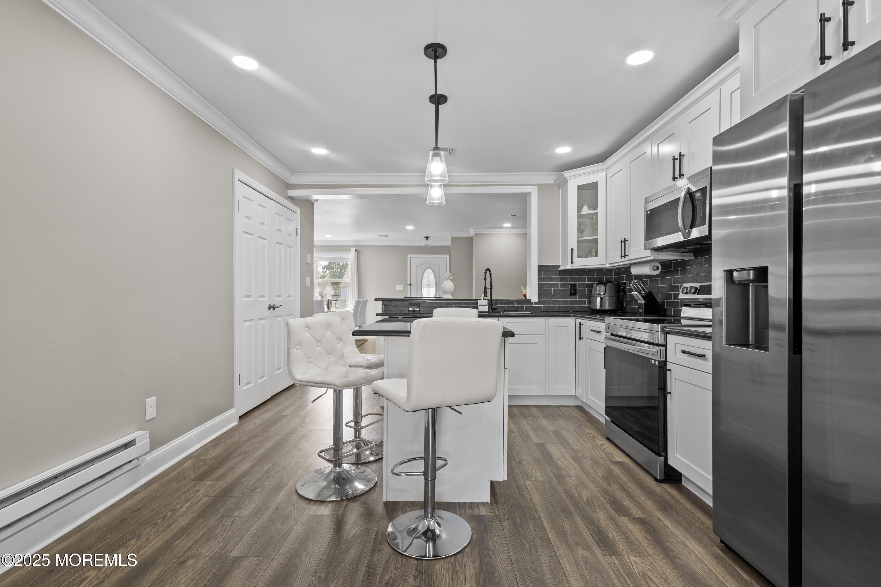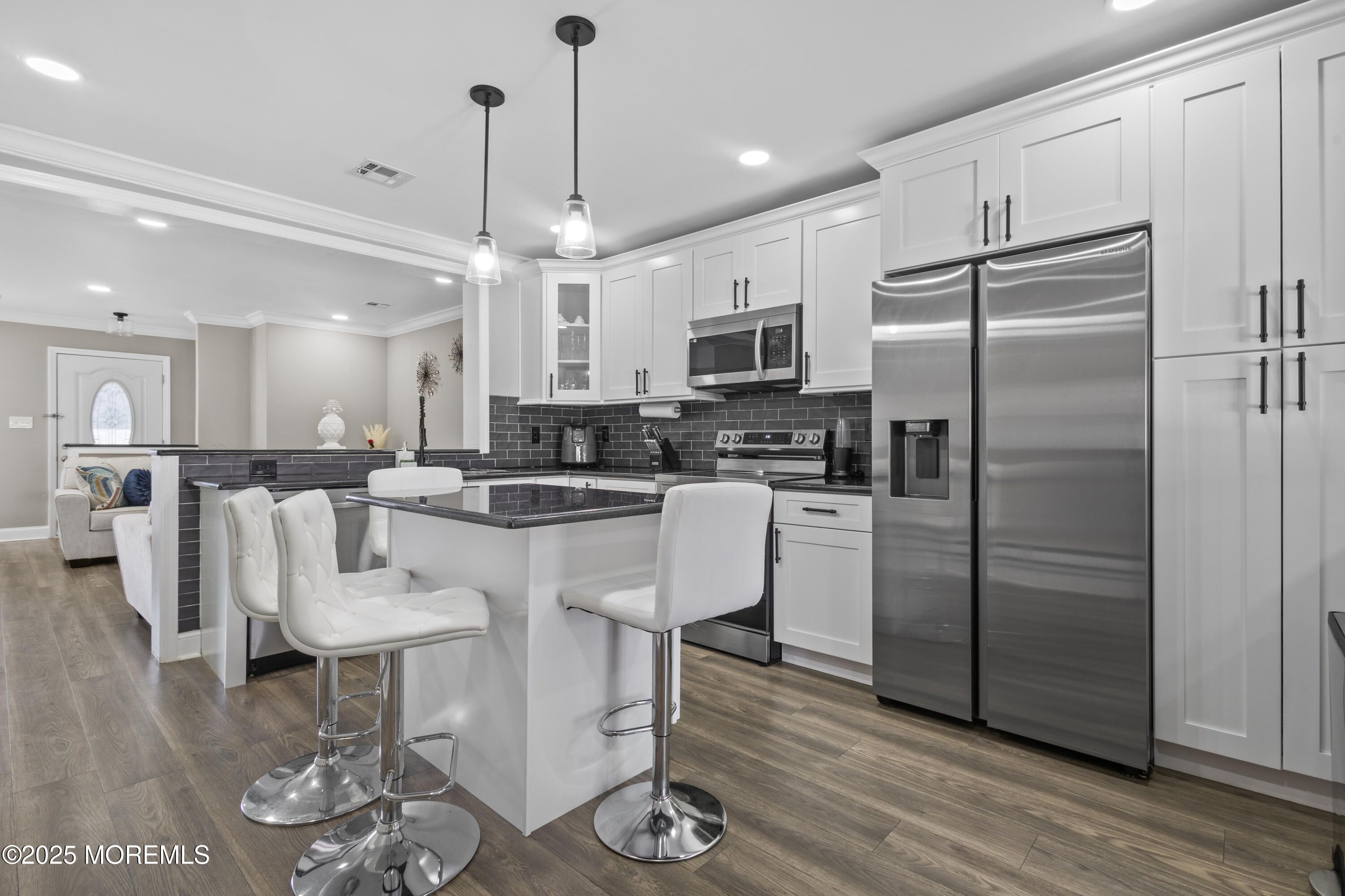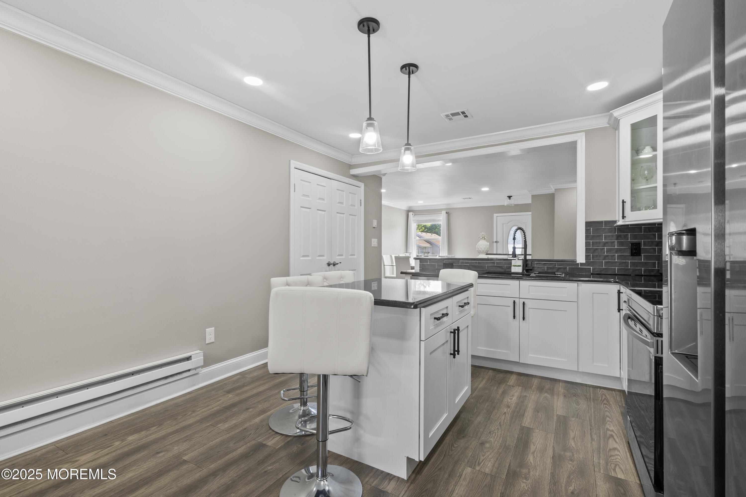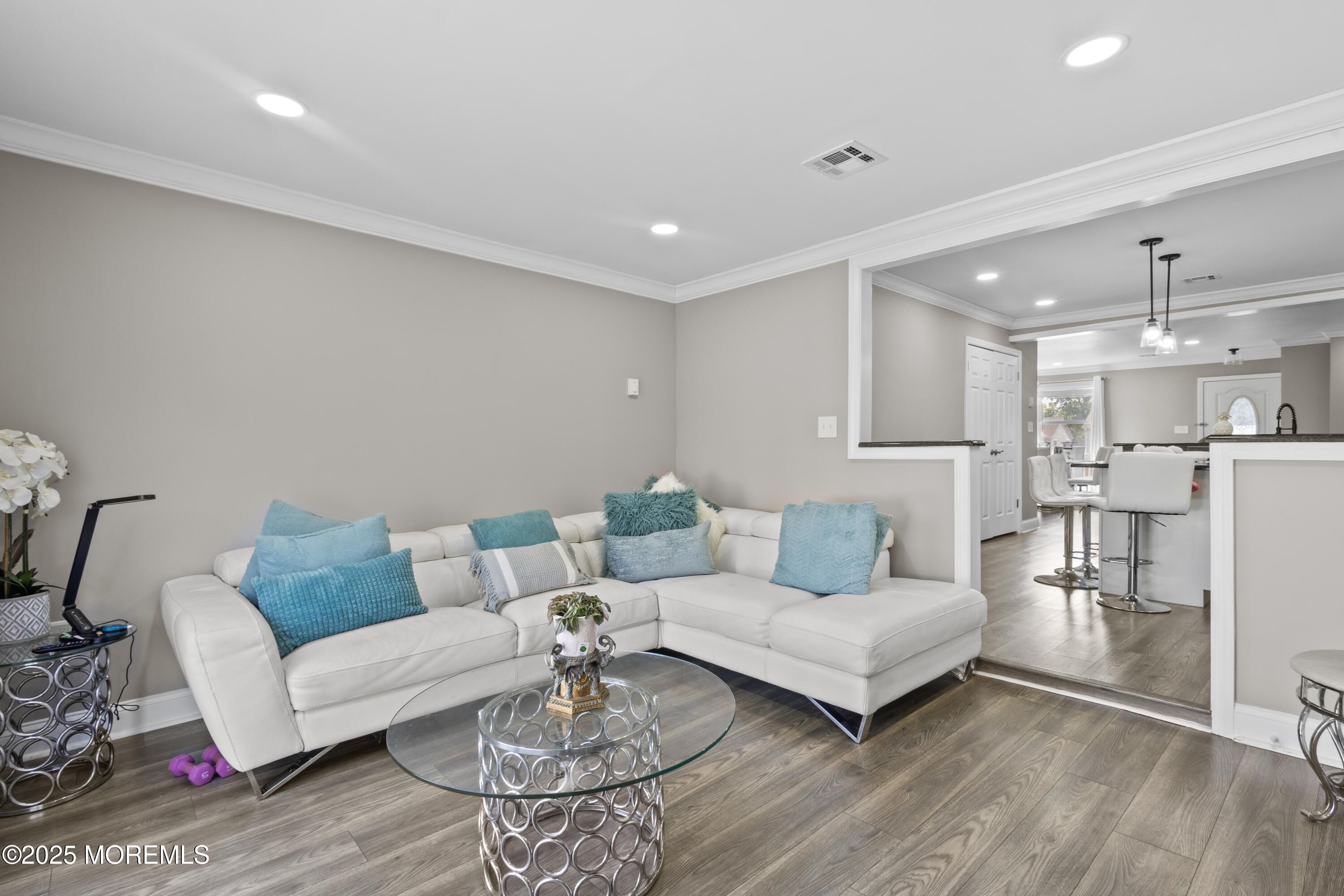 Nestled in the highly desirable Villages 55+ community in the heart of Monmouth County, this move-in ready 2-bedroom, 2 full-bathroom ranch-style unit offers the perfect blend of comfort, style, and convenience. This unit stands apart with professional insulation in both the crawl space and attic—delivering unmatched energy efficiency for year-round comfort and lower utility bills. Every detail has been thoughtfully upgraded to create a move-in ready home unlike any other. Step inside to a spacious open-concept layout with recessed lighting throughout, featuring a custom kitchen with a large center island/breakfast bar, and plenty of cabinet space. The living and dining areas flow effortlessly, enhanced by new laminate flooring, fresh crown/base molding, and a versatile den space.