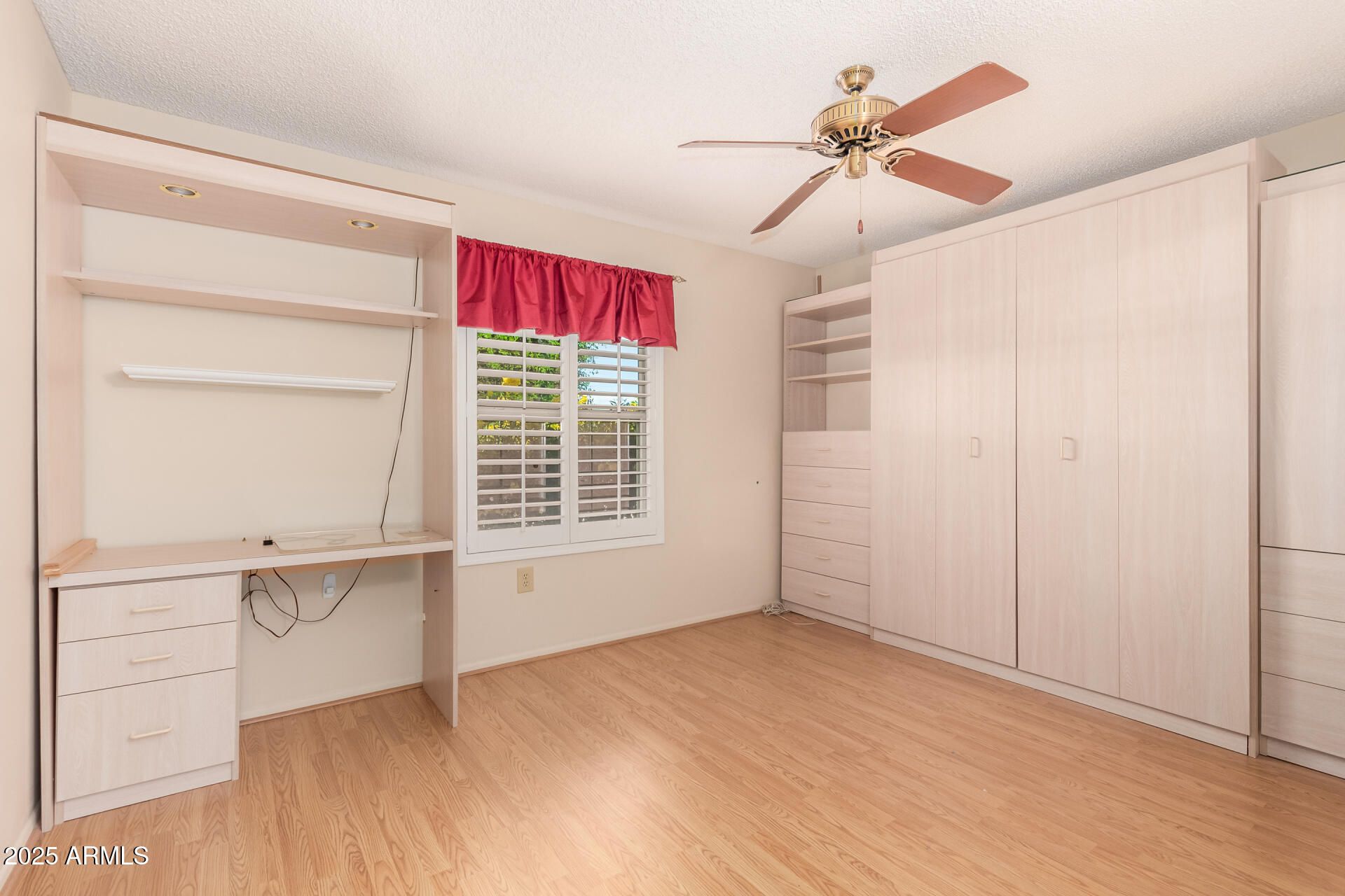 Enjoy all that Sun City West living has to offer in this lovely 2-bedroom plus flex room, 2-bath home offering over 2,100 sq.ft. of thoughtfully designed space! This energy-efficient residence features owned solar, helping you save on utility costs year-round. Step inside to a bright and inviting living area with vaulted ceilings, flowing effortlessly into a stylish kitchen complete with solid-surface countertops and a bright kitchen nook. The spacious primary suite is a relaxing retreat, showcasing a bay window, and en suite bathroom with dual vanity and walk-in closet. The guest bedroom includes convenient built-ins and a Murphy bed, ideal for visitors or a caregiver. An enclosed Arizona Room provides additional living space--perfect for hobbies, reading or just relaxing--while the covered back patio with extended slab is great for outdoor entertaining. Storage is plentiful with built-in cabinets in the garage. Located in the heart of Sun City West, you'll enjoy world-class amenities, including golf, fitness centers, pools, clubs, and endless opportunities for recreation and connection!