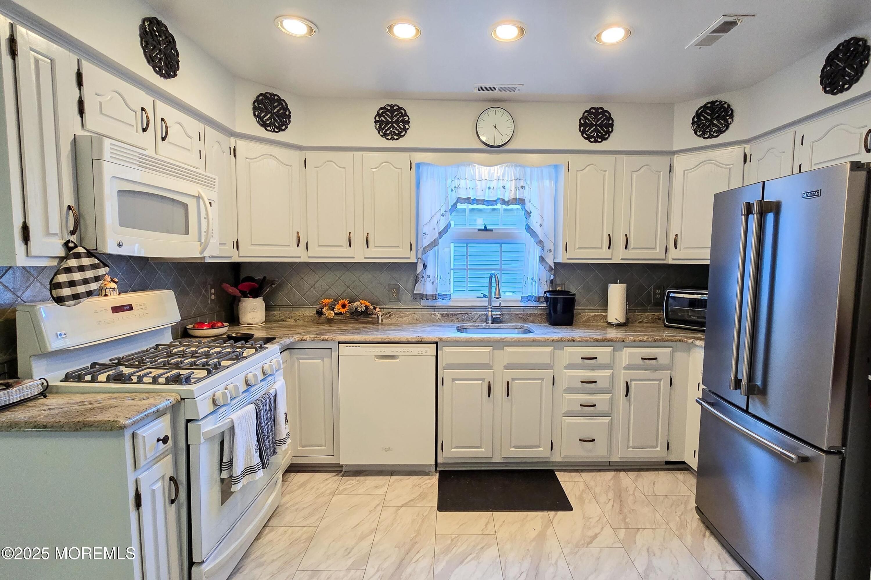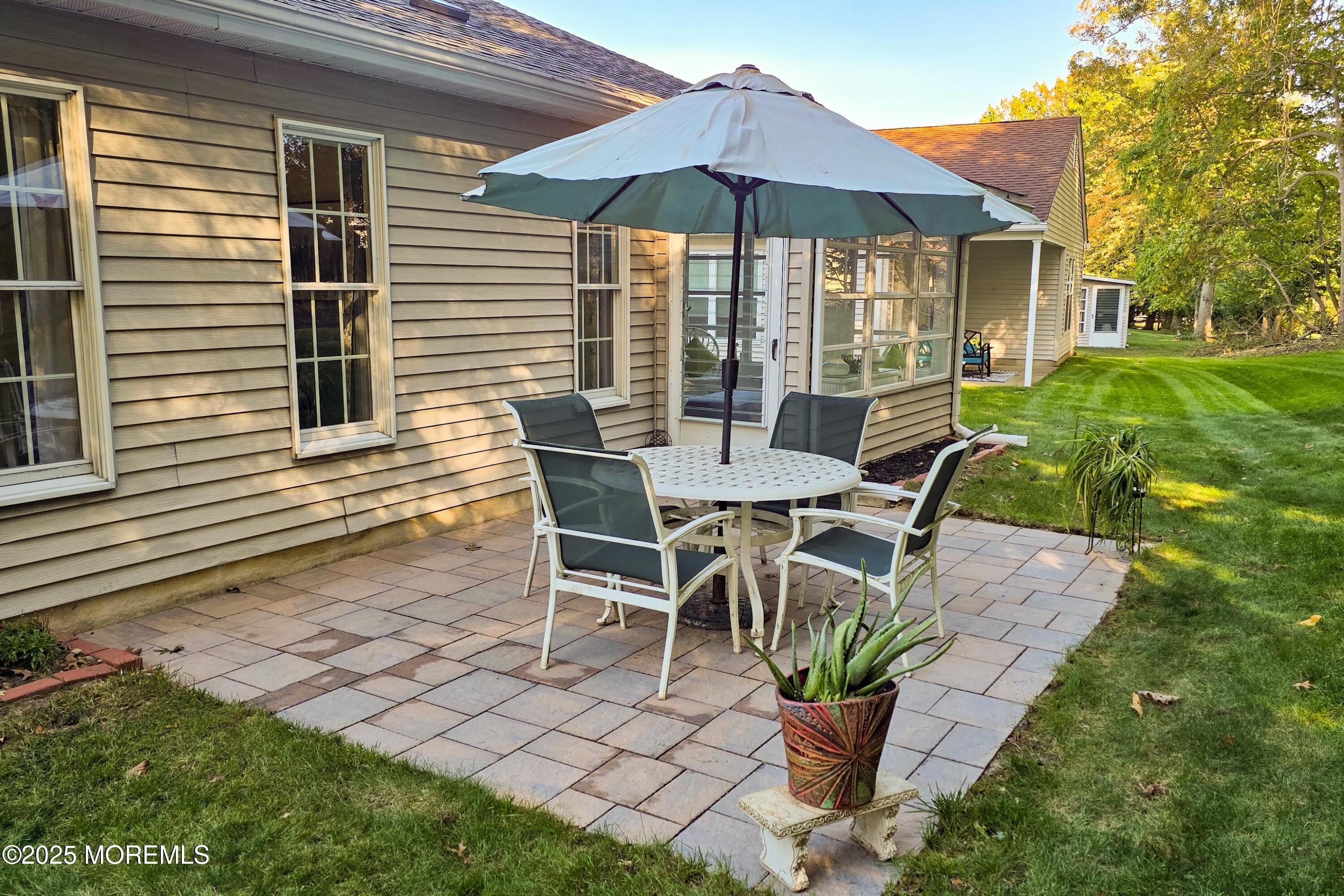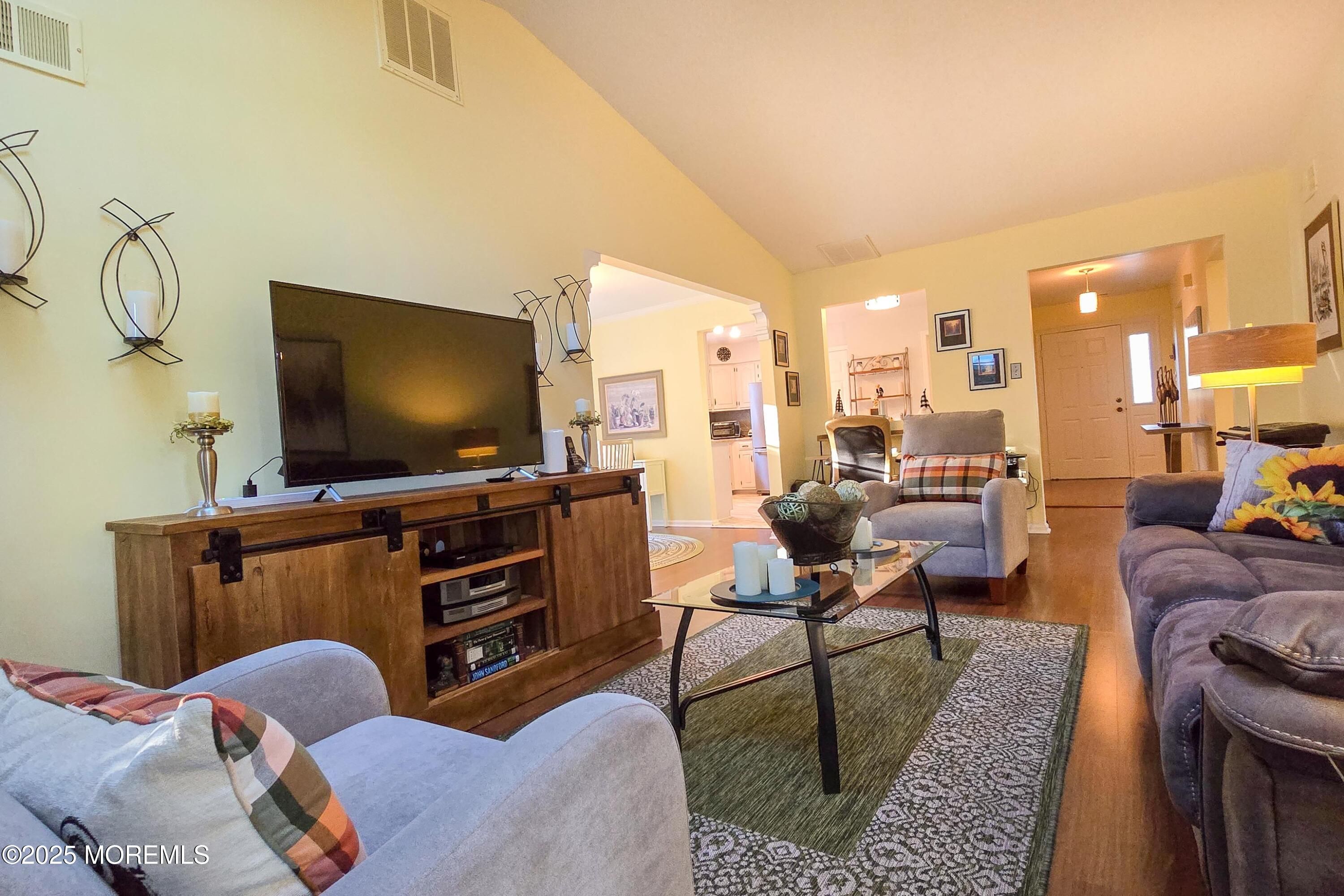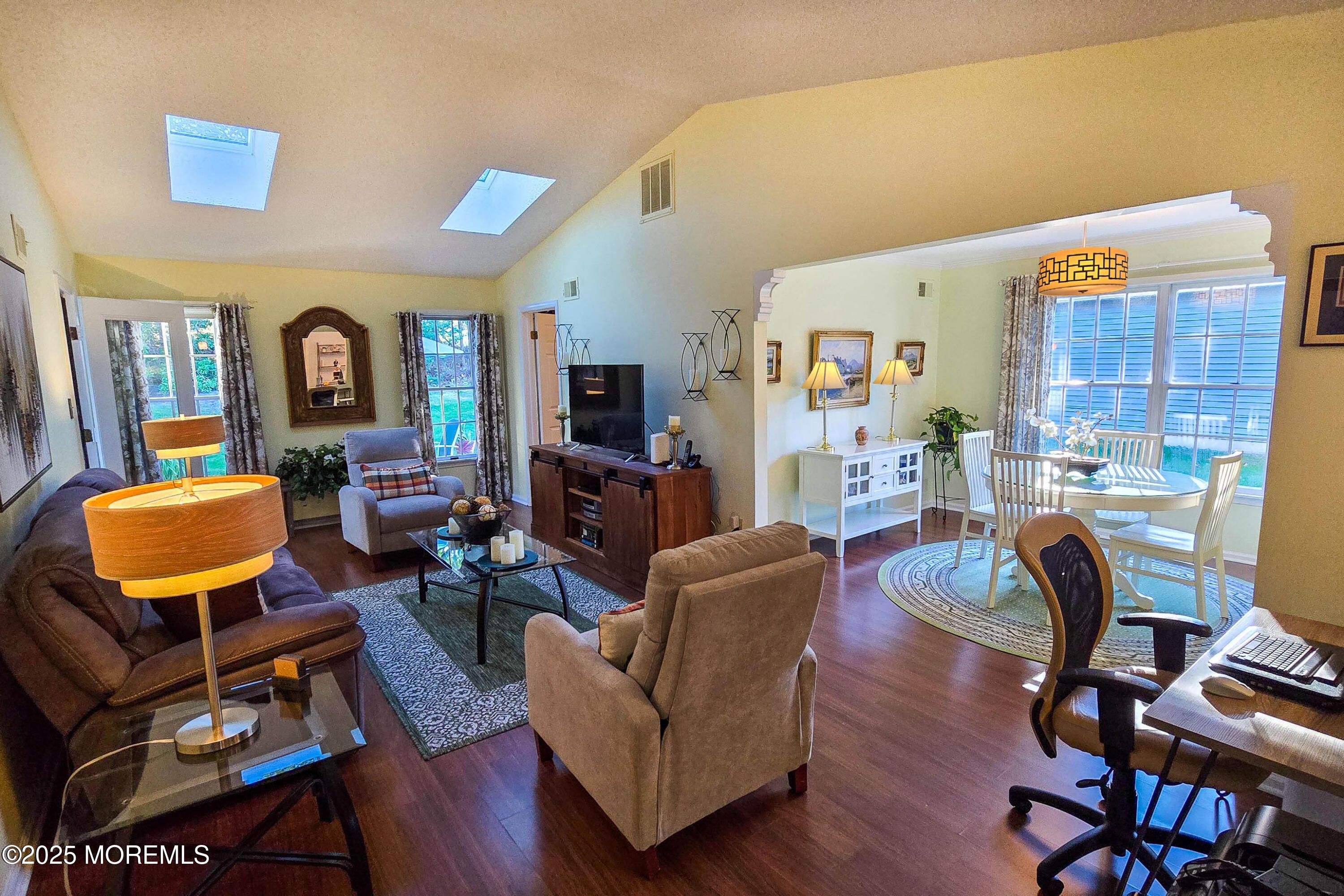 GORGEOUS !! 2 bedroom 2 bath home in exclusive Green Briar Woodlands Community. This property is popular sought after Hampton Model w/ extra bonus rooms including den + sunroom. The vaulted ceilings + glass skylights in Family room add lots of natural light to this spacious well well-maintained home. The floor plan has split bedroom arrangements between primary suite + guest suite for privacy. The attached sunroom is the perfect spot to entertain guests for relaxing afternoons. Kitchen is updated w/ granite countertops + has eat-in nook w/ view into living room + formal dining room. All residents can enjoy the executive 18 hole Golf course as well as all the amenities of luxury Club House living. This property is close to the beautiful Jersey Shore beaches + boardwalks. Come See!