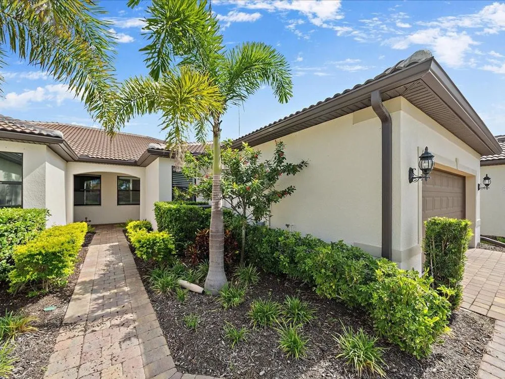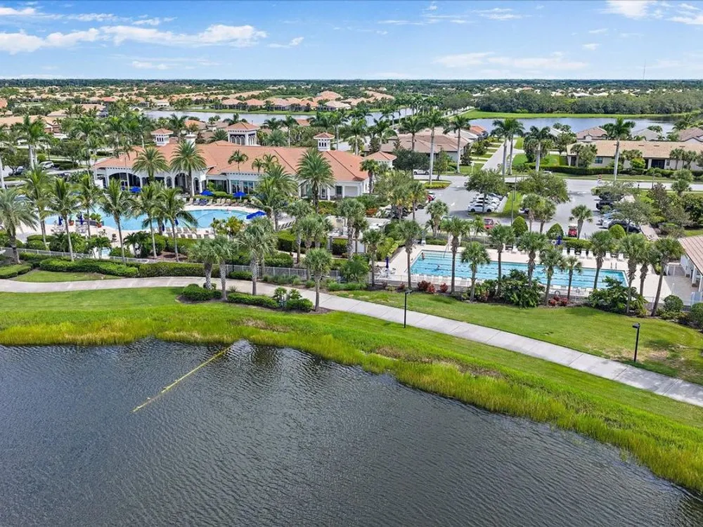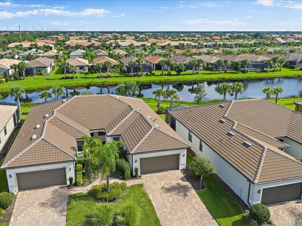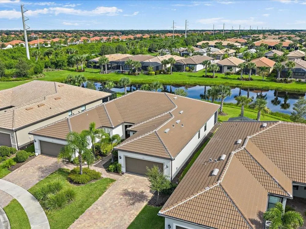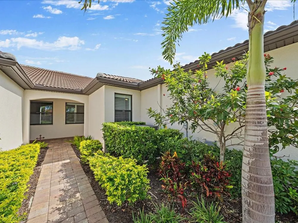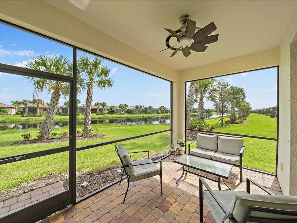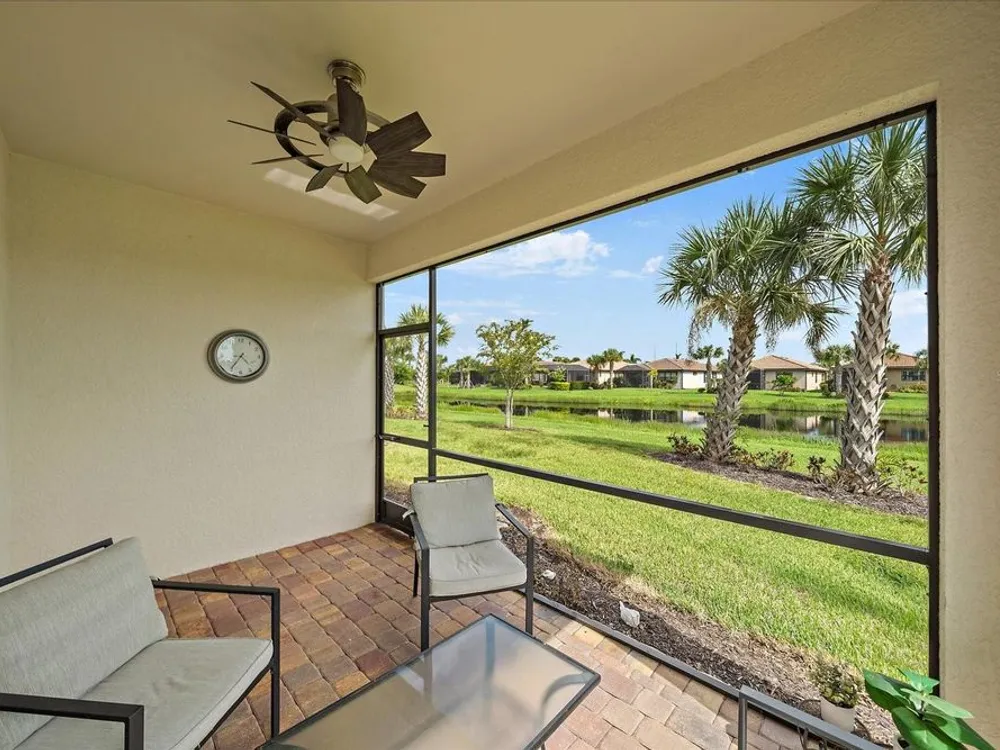 Welcome to this beautifully designed villa home offering 2 bedrooms, 2 bathrooms, and a versatile den. With 10-foot ceilings and 8-foot doors throughout, the interior feels open and inviting. Plantation shutters accent the hurricane-impact windows, adding both style and functionality, while additional hurricane shutters provide peace of mind. A 2021 roof, HVAC & water heater and 2021 appliances ensure lasting value and reliability. Offered fully furnished, this residence is move-in ready for its next owner. From the screened-in lanai, enjoy unobstructed views of the water with the option to extend the lanai for even more outdoor living space. The home is ideally situated on a quiet cul-de-sac and features an oversized, extended paver driveway along with an epoxied garage floor. As part of a maintenance-free community, exterior upkeep is handled for you, allowing more time to enjoy the IslandWalk lifestyle. IslandWalk is a gated, resort-style community that offers an extensive array of amenities designed for both relaxation and recreation. Residents enjoy access to two resort pools and spas, a dedicated lap pool, and a clubhouse with multipurpose rooms, a lanai, pavilion, and catering kitchen for social gatherings. The fitness centers and movement rooms support an active lifestyle, while the library, game room with billiards and ping-pong, and arts and crafts studio provide space for creativity and leisure. Outdoor amenities include Har-Tru tennis courts, 12 pickleball courts, bocce courts, basketball, a playground, fire pits, grills, a community garden, and a dog park with separate sections for large and small pets. Scenic walking trails, a boardwalk, and lush landscaped areas create a serene backdrop for daily living.All of this is just minutes from Wellen Park’s shopping, dining, and entertainment, area beaches, and the Atlanta Braves’ spring training stadium. This villa blends modern comfort, water views, and a vibrant, amenity-rich lifestyle in one of Venice’s most sought-after communities.