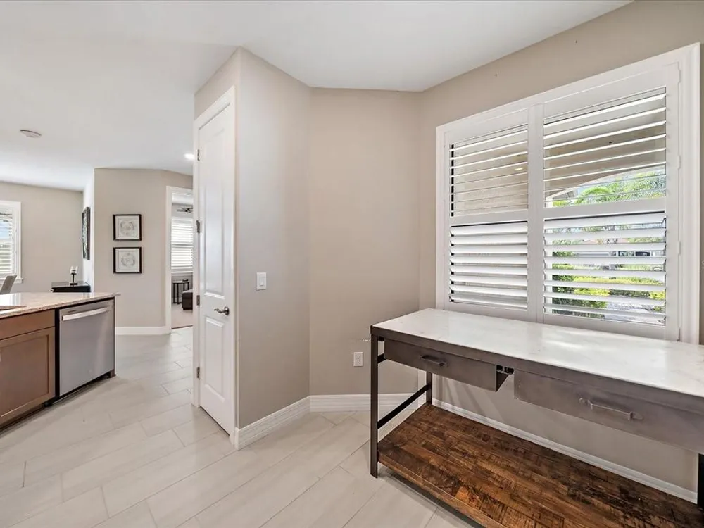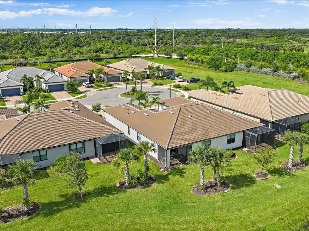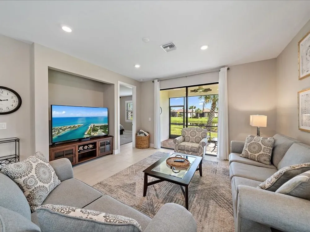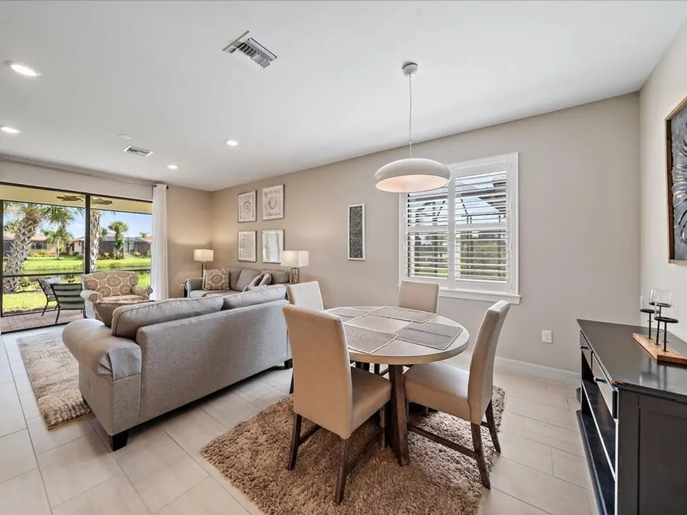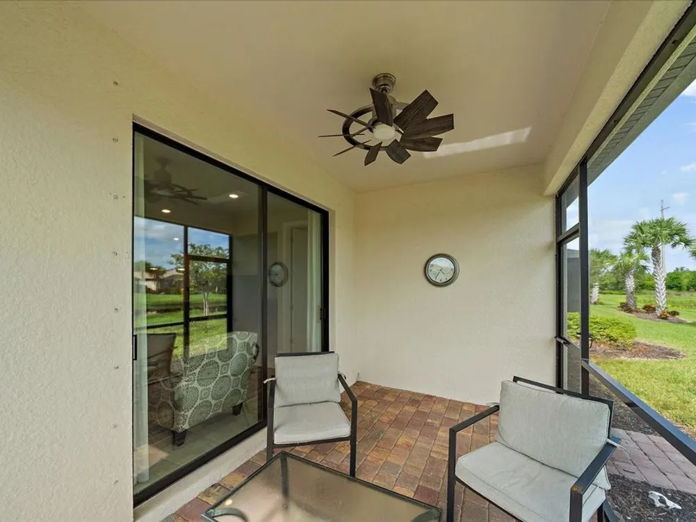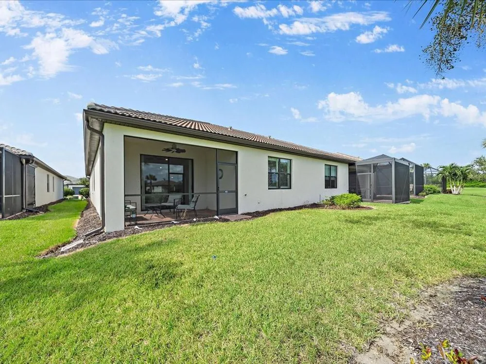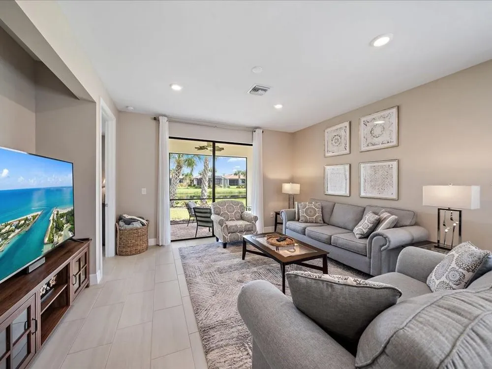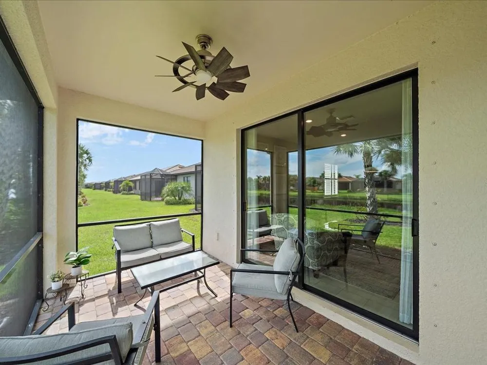 Welcome to this beautifully designed villa home offering 2 bedrooms, 2 bathrooms, and a versatile den. With 10-foot ceilings and 8-foot doors throughout, the interior feels open and inviting. Plantation shutters accent the hurricane-impact windows, adding both style and functionality, while additional hurricane shutters provide peace of mind. A 2021 roof, HVAC & water heater and 2021 appliances ensure lasting value and reliability. Offered fully furnished, this residence is move-in ready for its next owner. From the screened-in lanai, enjoy unobstructed views of the water with the option to extend the lanai for even more outdoor living space. The home is ideally situated on a quiet cul-de-sac and features an oversized, extended paver driveway along with an epoxied garage floor. As part of a maintenance-free community, exterior upkeep is handled for you, allowing more time to enjoy the IslandWalk lifestyle. IslandWalk is a gated, resort-style community that offers an extensive array of amenities designed for both relaxation and recreation. Residents enjoy access to two resort pools and spas, a dedicated lap pool, and a clubhouse with multipurpose rooms, a lanai, pavilion, and catering kitchen for social gatherings. The fitness centers and movement rooms support an active lifestyle, while the library, game room with billiards and ping-pong, and arts and crafts studio provide space for creativity and leisure. Outdoor amenities include Har-Tru tennis courts, 12 pickleball courts, bocce courts, basketball, a playground, fire pits, grills, a community garden, and a dog park with separate sections for large and small pets. Scenic walking trails, a boardwalk, and lush landscaped areas create a serene backdrop for daily living.All of this is just minutes from Wellen Park’s shopping, dining, and entertainment, area beaches, and the Atlanta Braves’ spring training stadium. This villa blends modern comfort, water views, and a vibrant, amenity-rich lifestyle in one of Venice’s most sought-after communities.