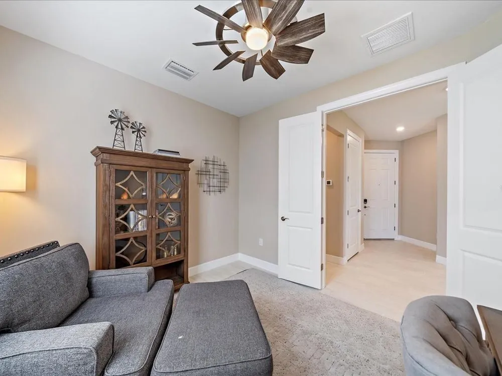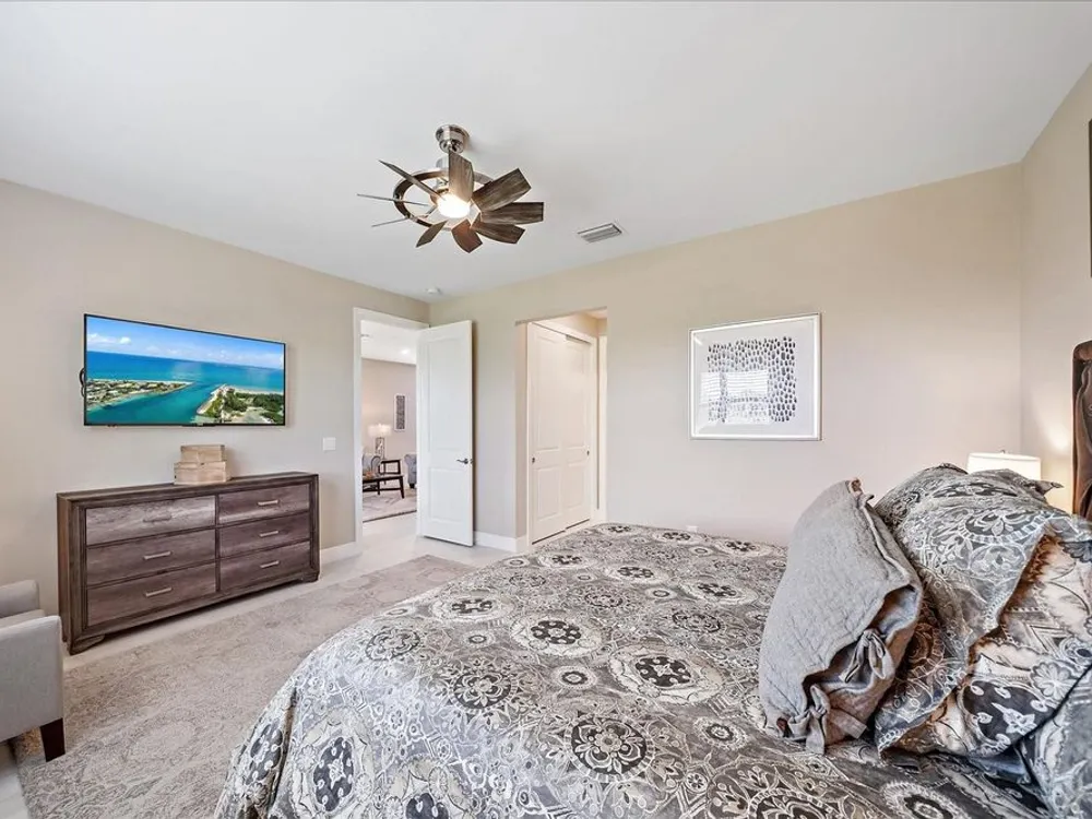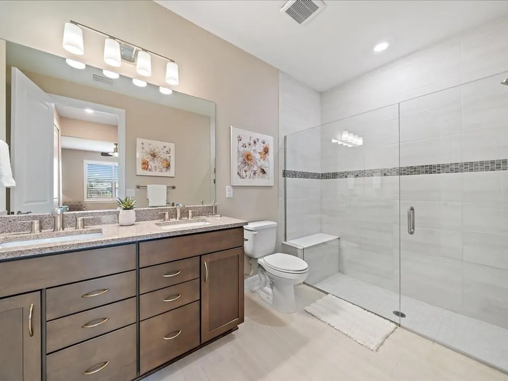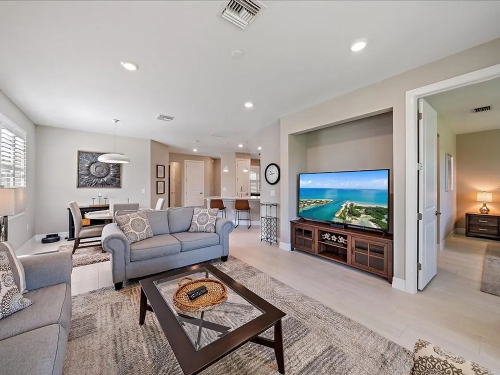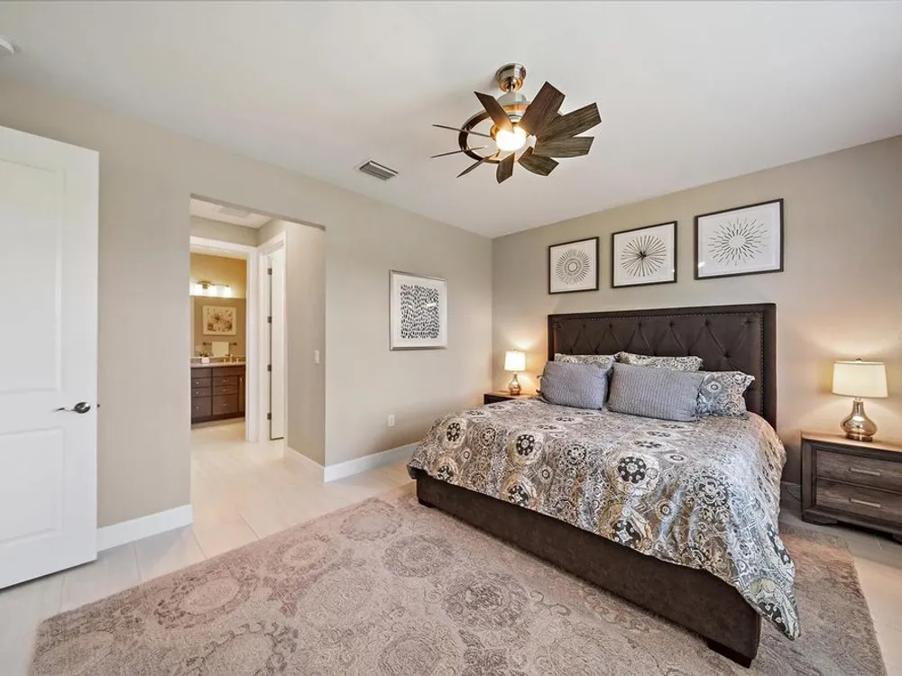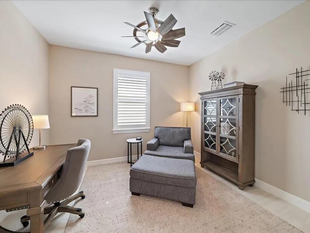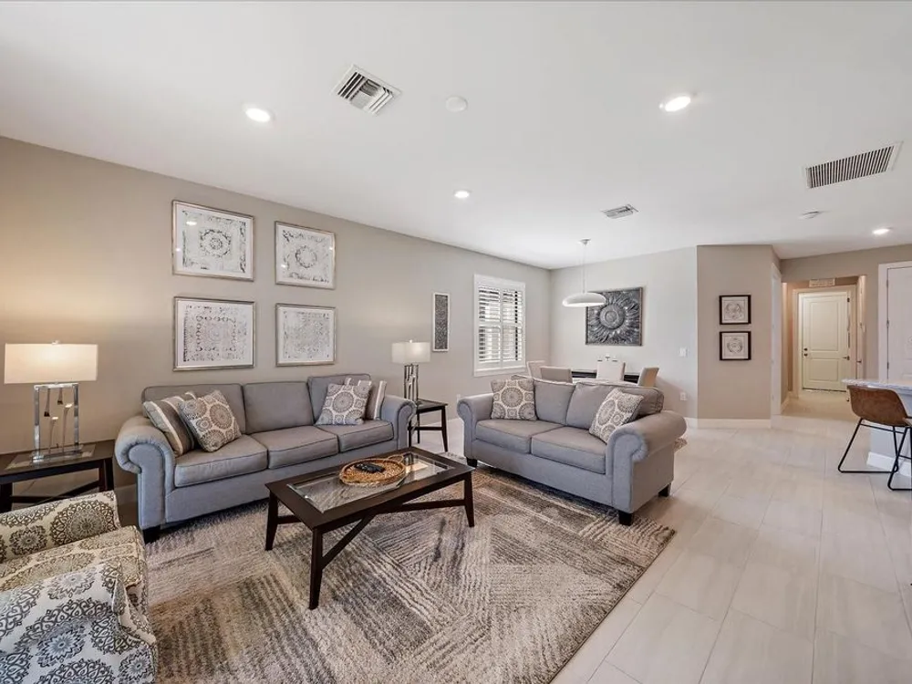 Welcome to this beautifully designed villa home offering 2 bedrooms, 2 bathrooms, and a versatile den. With 10-foot ceilings and 8-foot doors throughout, the interior feels open and inviting. Plantation shutters accent the hurricane-impact windows, adding both style and functionality, while additional hurricane shutters provide peace of mind. A 2021 roof, HVAC & water heater and 2021 appliances ensure lasting value and reliability. Offered fully furnished, this residence is move-in ready for its next owner. From the screened-in lanai, enjoy unobstructed views of the water with the option to extend the lanai for even more outdoor living space. The home is ideally situated on a quiet cul-de-sac and features an oversized, extended paver driveway along with an epoxied garage floor. As part of a maintenance-free community, exterior upkeep is handled for you, allowing more time to enjoy the IslandWalk lifestyle. IslandWalk is a gated, resort-style community that offers an extensive array of amenities designed for both relaxation and recreation. Residents enjoy access to two resort pools and spas, a dedicated lap pool, and a clubhouse with multipurpose rooms, a lanai, pavilion, and catering kitchen for social gatherings. The fitness centers and movement rooms support an active lifestyle, while the library, game room with billiards and ping-pong, and arts and crafts studio provide space for creativity and leisure. Outdoor amenities include Har-Tru tennis courts, 12 pickleball courts, bocce courts, basketball, a playground, fire pits, grills, a community garden, and a dog park with separate sections for large and small pets. Scenic walking trails, a boardwalk, and lush landscaped areas create a serene backdrop for daily living.All of this is just minutes from Wellen Park’s shopping, dining, and entertainment, area beaches, and the Atlanta Braves’ spring training stadium. This villa blends modern comfort, water views, and a vibrant, amenity-rich lifestyle in one of Venice’s most sought-after communities.