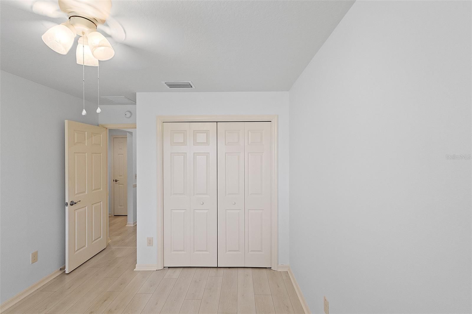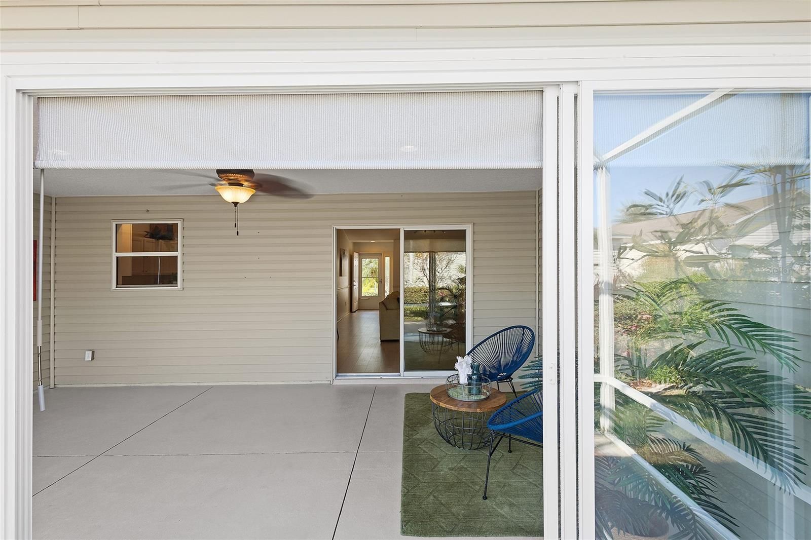 Welcome Home to the Village of Fernandina – Updated 3/2 Anchor Model with Stunning Modern Upgrades From the moment you arrive, this Anchor Model in The Village of Fernandina stands out with its inviting Florida palms, neatly manicured shrubs, and low-maintenance landscaping that frame the home’s excellent curb appeal. The south-facing front door welcomes natural light throughout the day, creating a bright and cheerful entry experience. A glass storm door with a screen drop-down brings in natural light while allowing a fresh breeze to flow through. Step inside to a beautifully updated interior where luxury Mohawk laminate flooring, vaulted ceilings, open floorplan, and NO POPCORN texture set the tone for modern, effortless living. Every detail has been thoughtfully updated — from recessed lighting and contemporary fixtures to plantation shutters that add timeless style throughout. The kitchen is both elegant and functional, featuring white cabinetry, stunning quartz countertops, a pantry, and pull-out shelving for easy organization. Whether cooking for two or entertaining guests, this space blends design and practicality seamlessly. The spacious primary suite offers a true retreat, highlighted by an extra-large walk-in closet and a custom-tiled walk-in shower with seamless glass doors and a built-in bench. Both guest bedrooms are equipped with built-in closets and well-sized and ideal for visitors, office, or hobby space. Indoor living extends effortlessly outdoors — enjoy the enclosed lanai with air conditioning, painted floors, and sliding windows to capture the cross-breeze. Beyond, a birdcage enclosure provides a sunny, screened-in spot for morning coffee, while the open patio offers the perfect place for grilling or evening relaxation. The home is offset - eliminating the kissing lanai scenario, offering plenty of privacy. Additional features include an inside laundry room with a utility sink and generous cabinetry, plus an immaculate garage with epoxy floors, insulated door, overhead storage, and pristine organization. This thoughtfully updated Fernandina gem combines modern comfort, easy maintenance, and The Villages’ sought-after lifestyle — ready for you to move right in and start enjoying the best of Florida living.