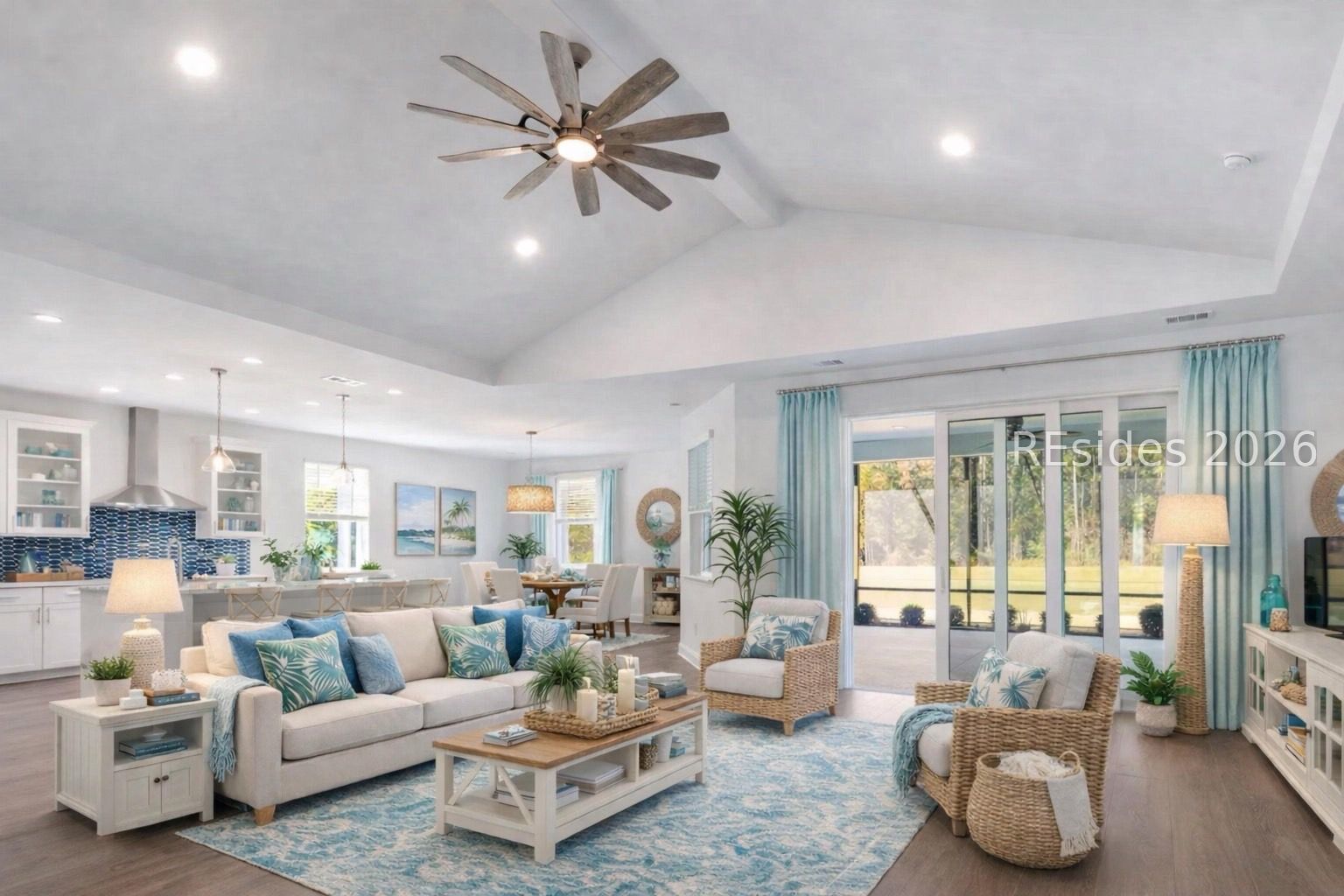 Scenic lagoon to wooded views like these create such a peaceful setting you will feel like you are on vacation every day. This barely lived in, 2023 Built, PRISTINE Trinidad Bay model is ready for you to move right in. Part of the Island Collection, this floor plan is rarely available on the market so this an opportunity you will not want to miss out on! Building this floor plan would take months! Set on the most beautiful lot with private lagoon to woods views, this one story home with 3 Bedrooms PLUS office and 3.5 baths is just waiting for you. All bedrooms are ensuite! There is a 3 car garage with newly epoxy floors, expanded screened in porch, freshly painted interior and upgrades with designer touches throughout. This immaculate home is move in ready. Entire home has LVP flooring in all main living & Bedroom areas with tile in most baths. Kitchen is phenomenal! Luxury level quartz counters, beautiful blue tile back splash, gas cook top, Stainless appliances, wall oven & microwave, gorgeous cabinets with pullouts & under cabinet lighting plus a custom pantry. There is beautiful lighting, ceiling fans, 8 Ft interior doors, tankless water heater & a whole house water filtration system. Rooms are generous in size, baths are upgraded with floor to ceiling bath/shower tiles and main bath is exceptional with all tile walk in shower and luxury quartz counters. Primary living area is open to the kitchen & has telescoping sliding doors to the screened in porch so you can open up the views and feel the fresh air come in. For convenience there is a gas stub out for cookouts on the porch too. Sweeping views of the lagoon to woods views add to the ultimate privacy this home enjoys. Laundry room has so much extra storage you will have space for everything! The 3 car garage has beautiful epoxy floors, room for all of your toys and a utility sink too. Electrical panel is 200 amp with whole house surge protection for peace of mind. There is nothing for you to do! Lawn care is taken care of by the community so you can have more relaxation time and enjoy all that Margaritaville has to offer! Welcome home! You are going to love living here!!
