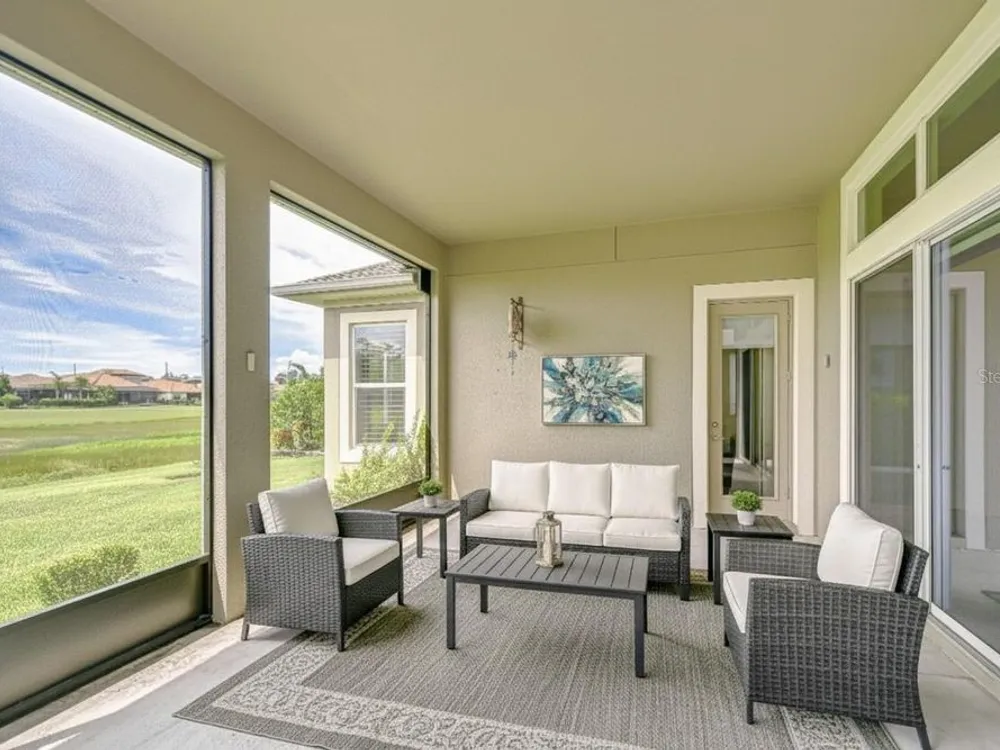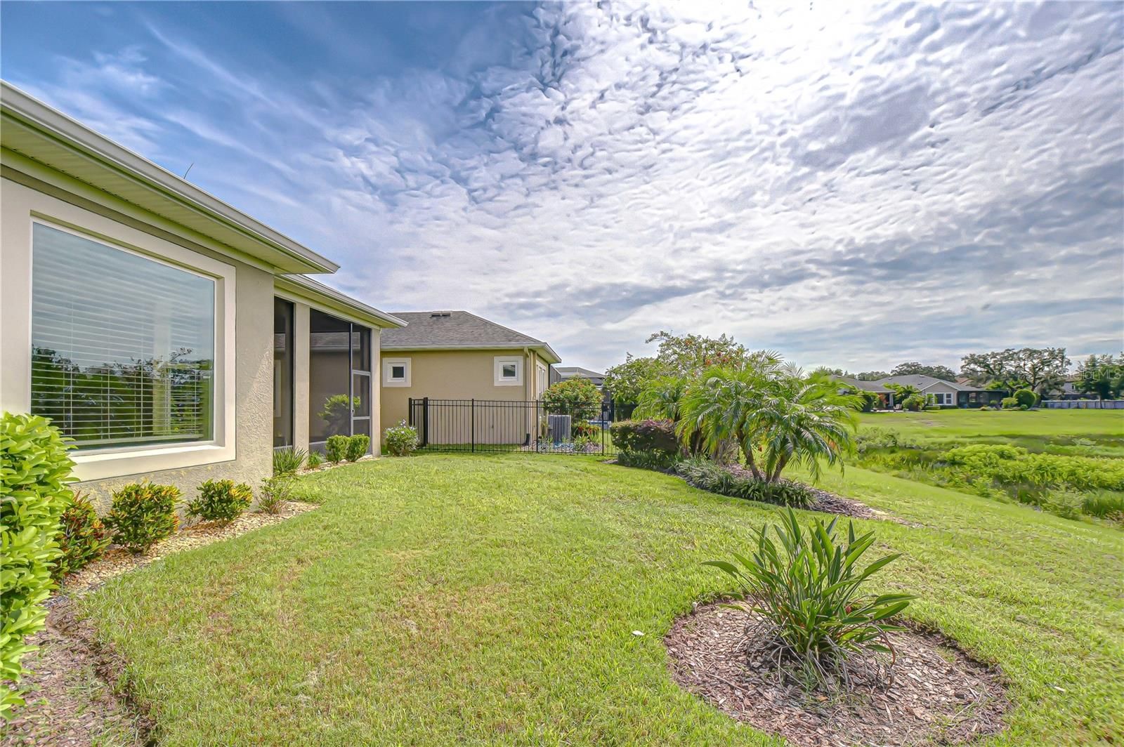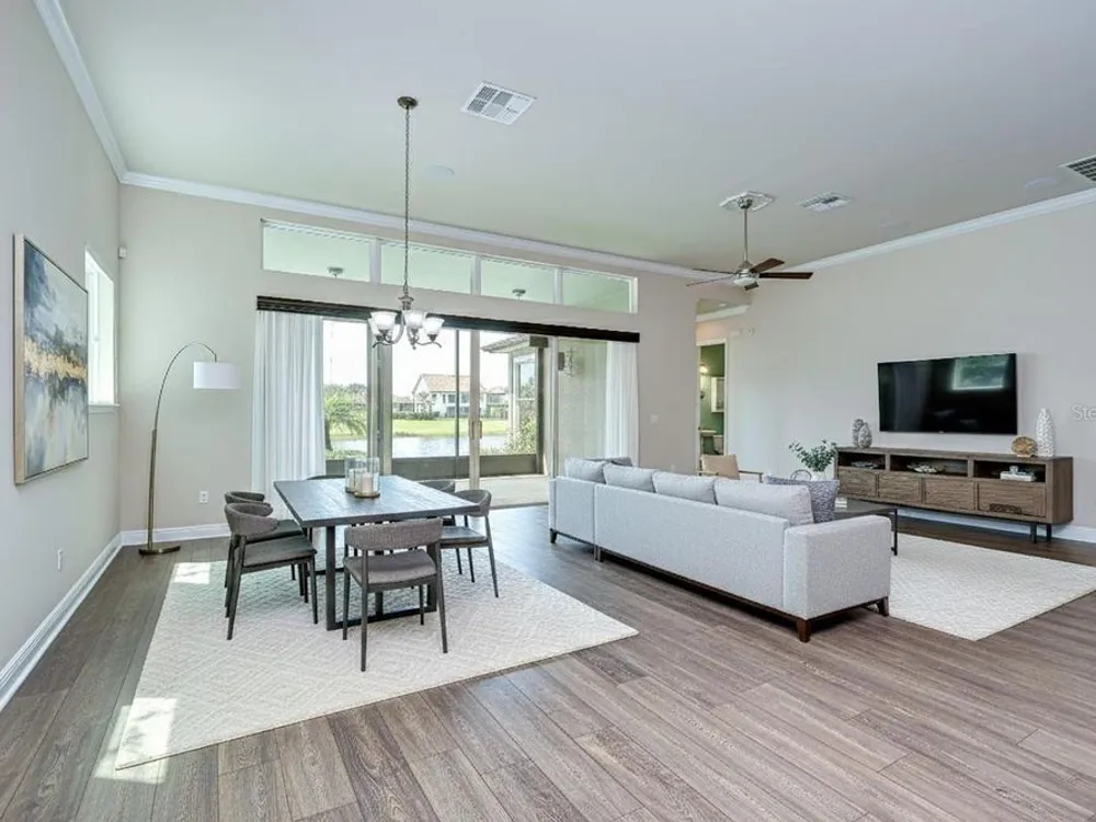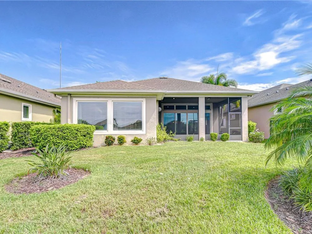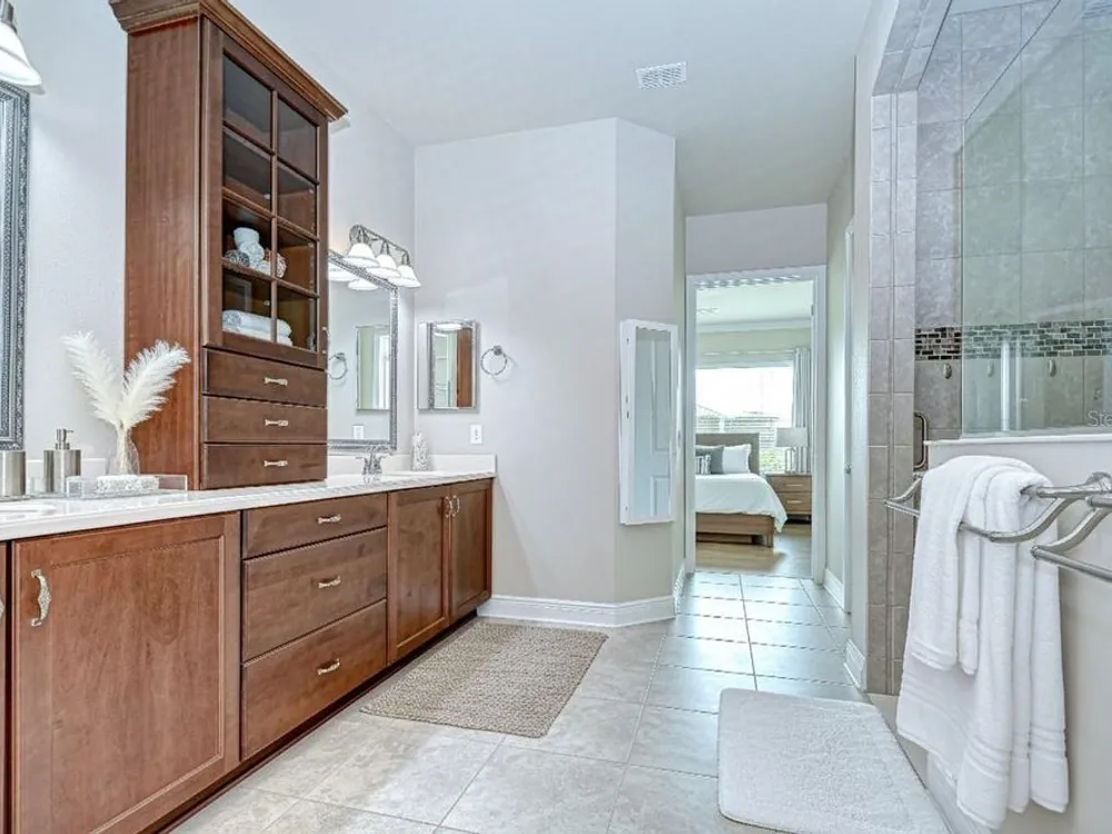One or more photo(s) has been virtually staged. Imagine waking up every day in a community where it feels like you’re on vacation. That dream becomes reality in this beautifully crafted David Weekley home, perfectly placed in the coveted Encore at FishHawk Ranch West, a 55+ gated neighborhood offering true resort-style living. Set on a private lot with no backyard neighbors, this home blends comfort, elegance, and function. Inside, you’ll find neutral paint, wood-look tile flooring, crown molding, and wide baseboards that create a warm and timeless backdrop. The gourmet kitchen is a showstopper with stone countertops, stainless steel appliances, built-in oven and microwave, soft-close cabinetry, a large island, and a designer backsplash. Flowing seamlessly into the great room, natural light pours in through a wall of sliders that open to the screened lanai—perfect for entertaining or enjoying peaceful conservation views. A convenient half bath is nearby to add thoughtful functionality. The primary suite, tucked at the back of the home for privacy, features a large walk-in shower, dual vanities with plenty of storage, and a spacious walk-in closet. Guests will love the second bedroom with its own en-suite bath and walk-in shower, while the front dining room adds character with plantation shutters and custom built-ins. Life in Encore centers around The Oasis Club, where you’ll enjoy a fitness center, resort-style pools, pickleball and bocce courts, fire pits, miles of walking trails, and a vibrant clubhouse for gatherings and events—all led by a dedicated on-site activities director. This home delivers the perfect balance of luxury, privacy, and an active lifestyle—your next chapter starts here!
