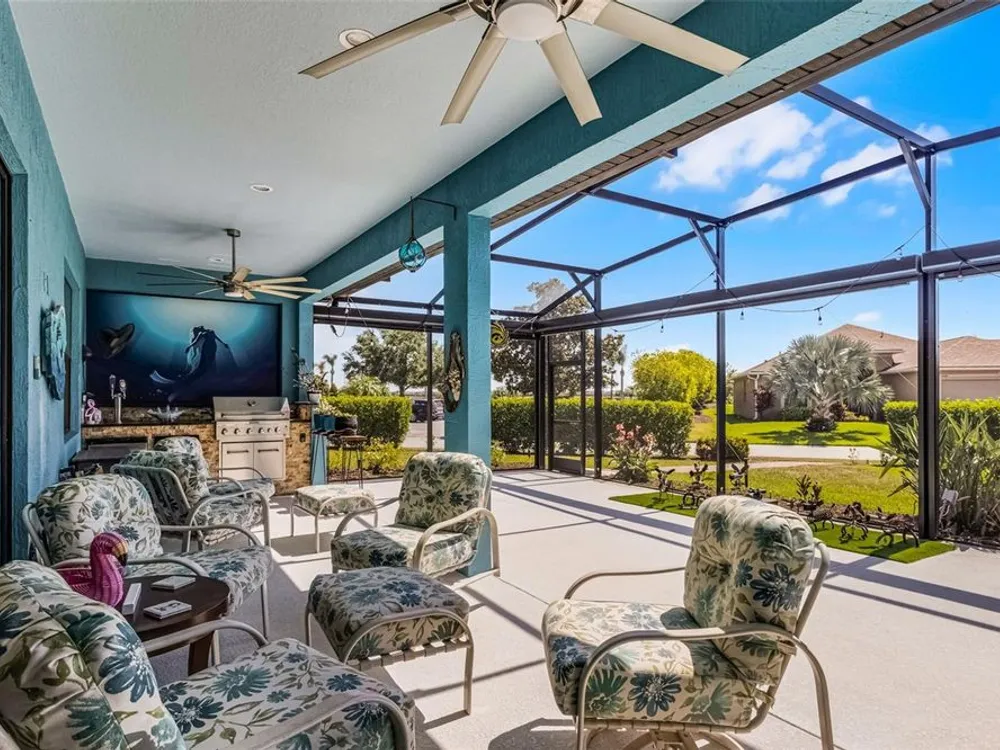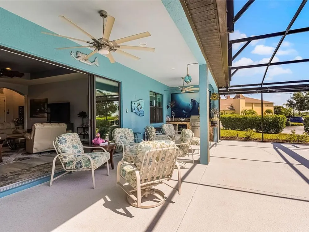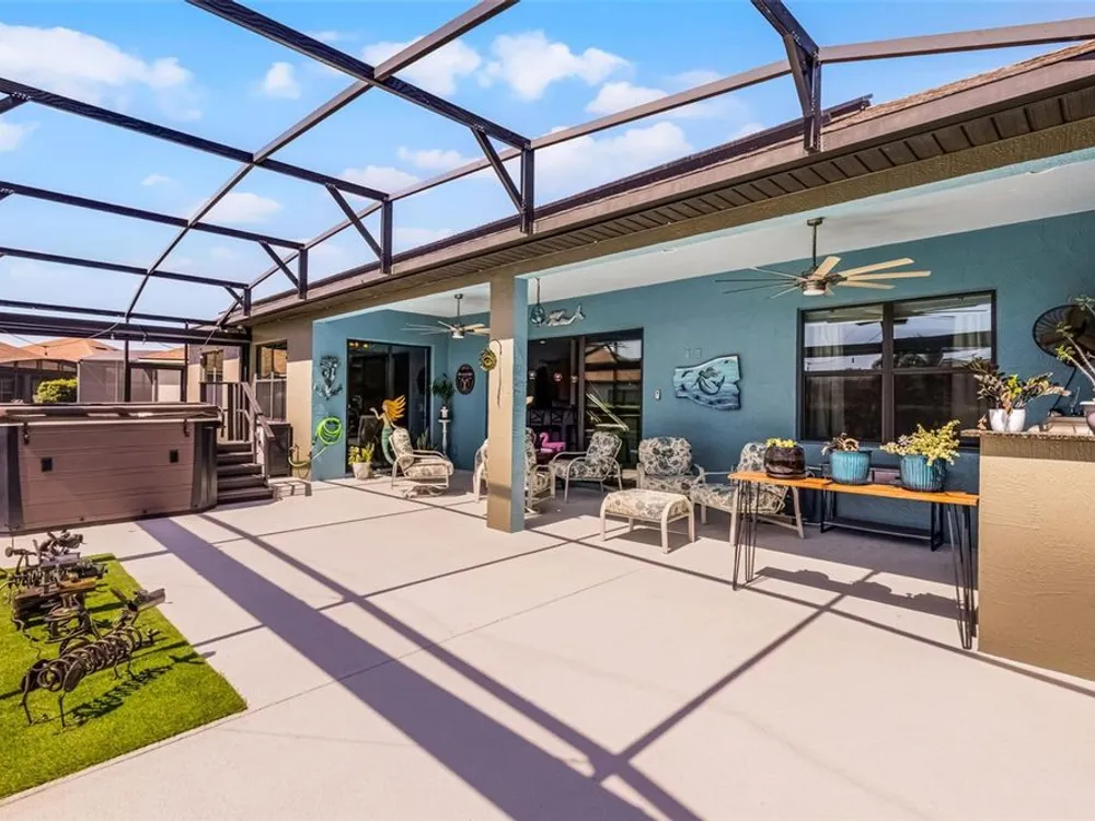 Back on market! Buyer(s) contingency fell through. Discover an exceptional home for sale in the beautiful Lake Ashton Golf course community, which offers 24-hour security for peace of mind. This Ashton floor plan, with 2606 SqFt of living is thoughtfully designed with three bedrooms, two full baths, a den, and a flex room, providing ample space for both relaxation and entertainment. Step inside to find stunning laminate flooring and tile throughout, enhancing the home's aesthetic appeal. The gourmet kitchen is a chef's delight, featuring soft-close solid wood 42-inch cabinets with elegant crown molding, stainless steel appliances, and luxurious granite countertops. The kitchen also boasts a beautiful vented hood, double convection ovens, and a microwave, making it perfect for culinary enthusiasts. The master bathroom is a haven of comfort, showcasing custom closets and a beautifully designed shower. The outdoor oversized lanai is truly breathtaking, complete with an outdoor kitchen featuring a stainless steel grill. This space is ideal for relaxation or exercise, highlighted by a Veranda 10-person hybrid swim spa. For added convenience and privacy, the patio includes remote control roller shades. This home also features beautiful upgraded landscaping and an upgraded irrigation system, ensuring a vibrant exterior. Energy efficiency is a priority with PAID OFF solar panels that come with a transferable warranty, while the oversized garage includes golf cart parking for added convenience. This home also features a generator that powers the entire house, ensuring comfort and convenience even during outages. With so many thoughtful upgrades, this home is a must-see to truly appreciate its beauty and functionality. Don’t miss the chance to make it yours. Call today for your private showing!!!