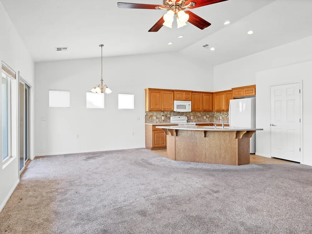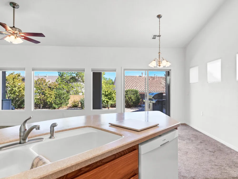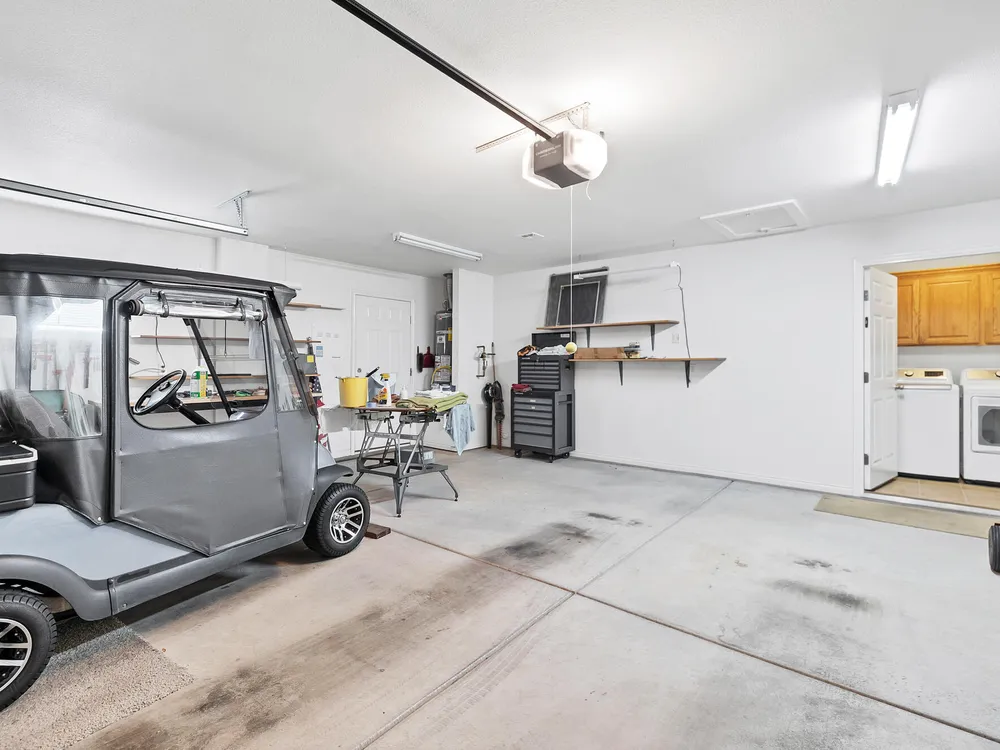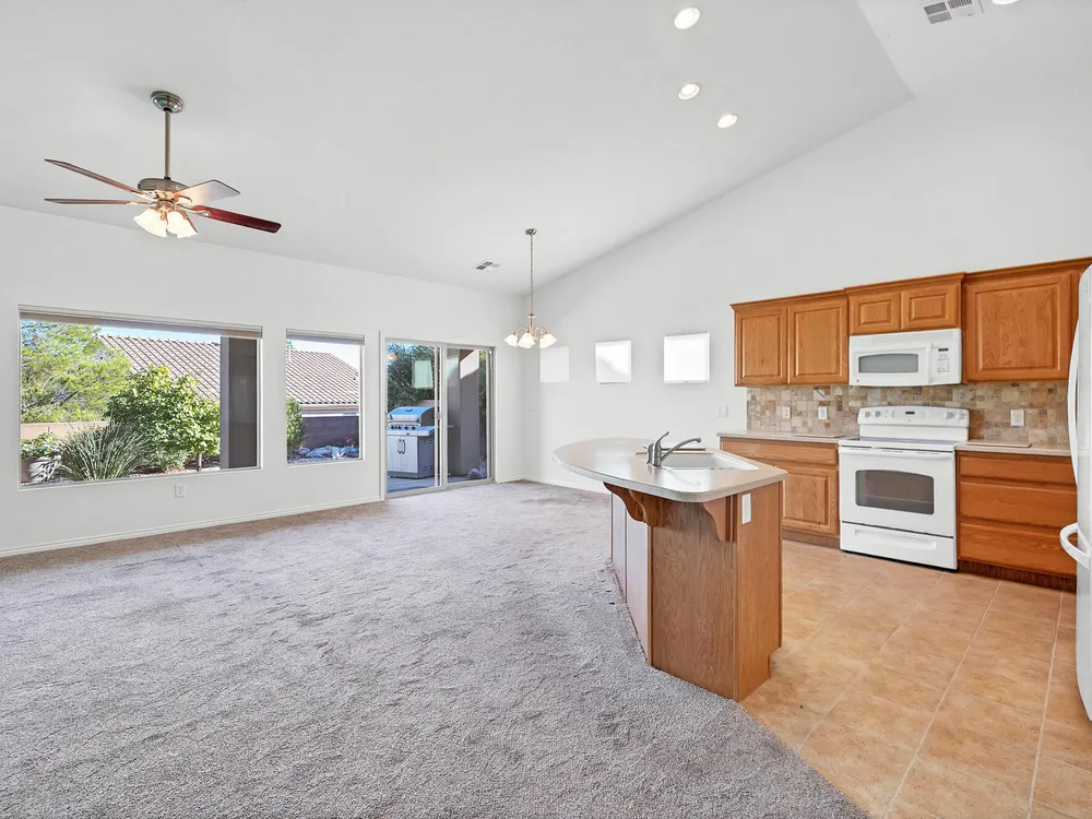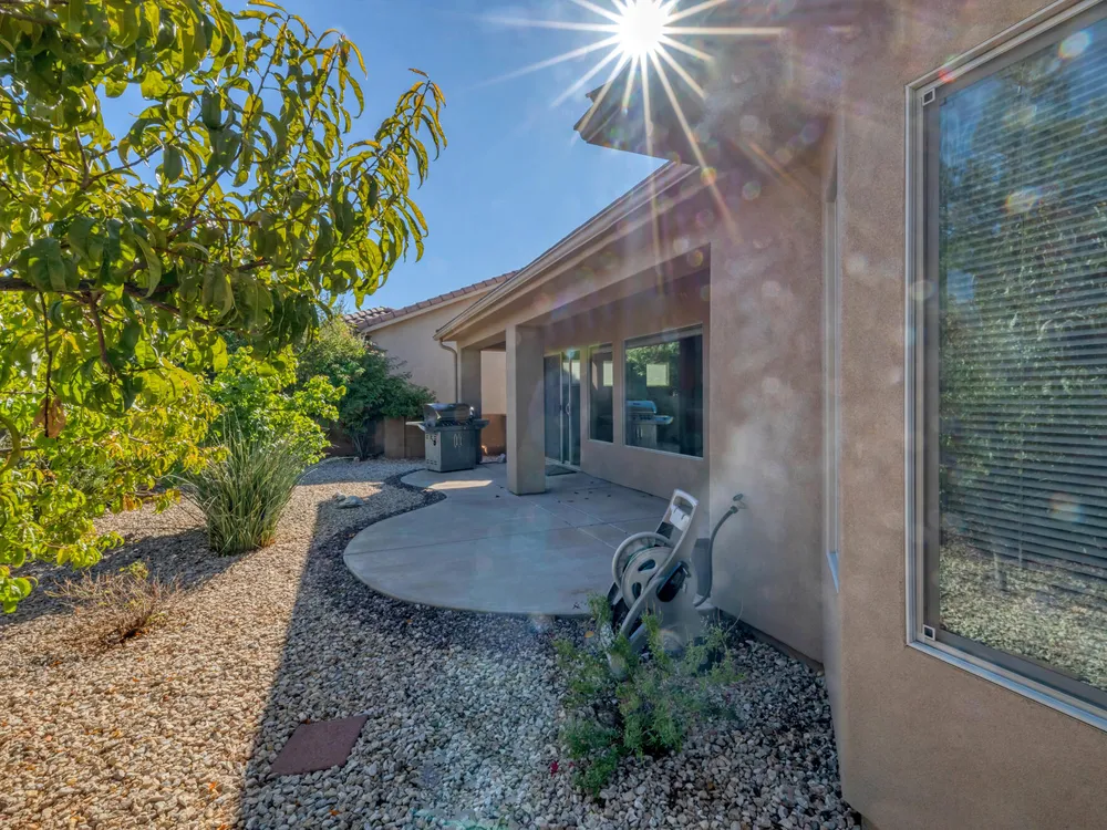 Nice home in center of community. Wonderful outdoor living with front courtyard and covered rear patio facing North. This home in Sun River has vaulted ceilings and open concept kitchen and family room. Recently updated front yard with artificial turf. The garage is oversized with enough room for a golf cart and two cars, a great option since Sun River is a golf cart community, even including the new Smiths. Mature yard with fully fenced yard for pets and privacy with nice fruit trees and area to garden. This home qualifies for HECM Financing for as little as $258,000 with no mortgage payments. Call our preferred lender to see if you qualify.