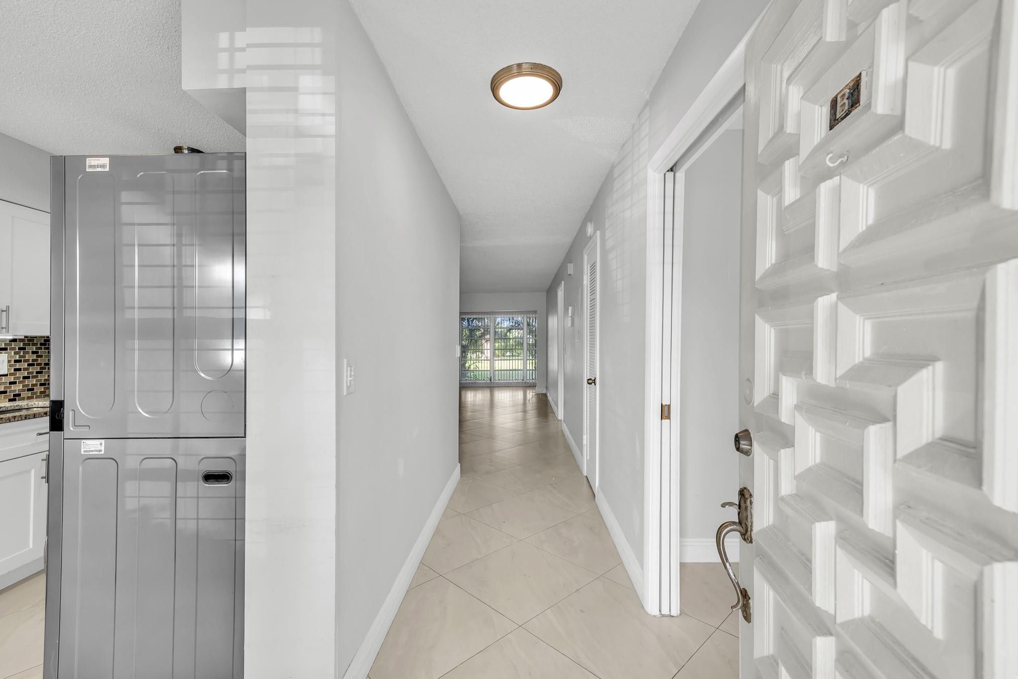 Beautifully updated and spacious 55+ ground-floor condo with no stairs and a private paver patio overlooking serene green space and the Villa Delray Golf Course. This light-filled home offers two generously sized bedrooms, each featuring a full ensuite bathroom and walk-in closet—a perfect layout for comfort and privacy. The kitchen has been tastefully upgraded with white shaker cabinetry and granite countertops, complemented by newer tile flooring throughout for a clean, modern feel. Enjoy the convenience of an in-unit washer and dryer, making everyday living effortless.This condo truly has it all—style, comfort, convenience, and peaceful golf course views. Ready for you to move in and enjoy!
