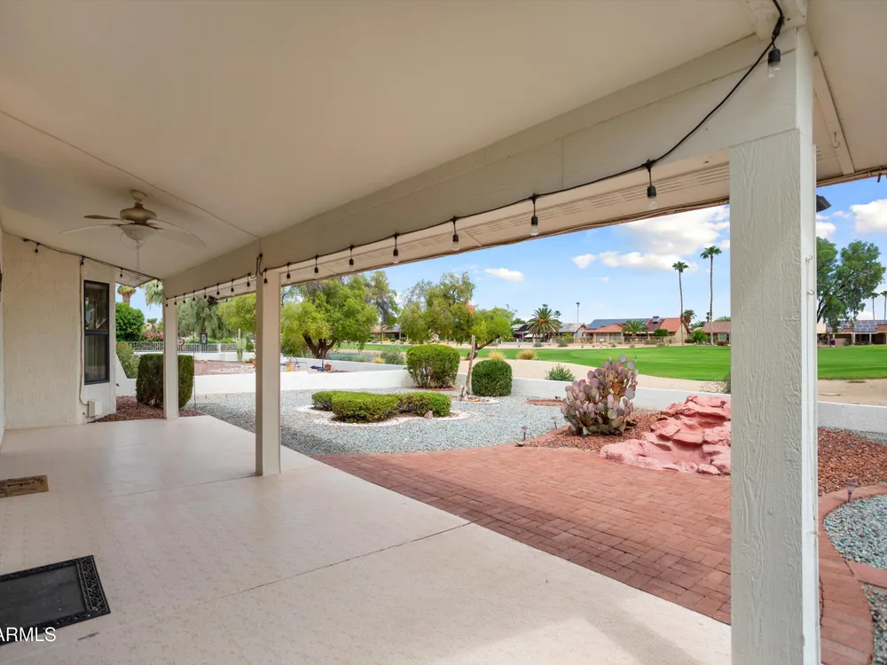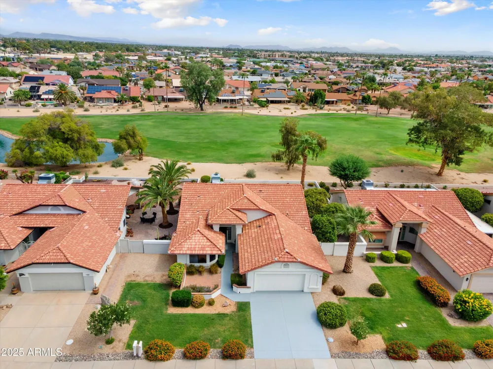 Located on Grandview GC 11th Fairway * This Monaco Model features 1962sf with 2 bedrooms and 1.75 bathrooms * Backyard facing North with a Water View and a Water Feature * The floor plan is bright and open with vaulted ceilings * Newer neutral Tile and Carpeting * Black Kitchen Appliances with Black Granite Counters * Cabinetry is very nice * Vertical Blinds * The Home & Windows were Professionally Cleaned * An exceptionally nice home in a very nice location near shopping, banking, medical and lets not forget all the fun to be had at the 4 Recreation Centers & the Many Clubs * Sun City West has a Wood Shop, Metal Shop, Auto Restoration Club 7 Golf Courses plus Briarwood Country Club which has its own Golf Course and Club Amenities, so stop on by to appreciate all this home has to offer
