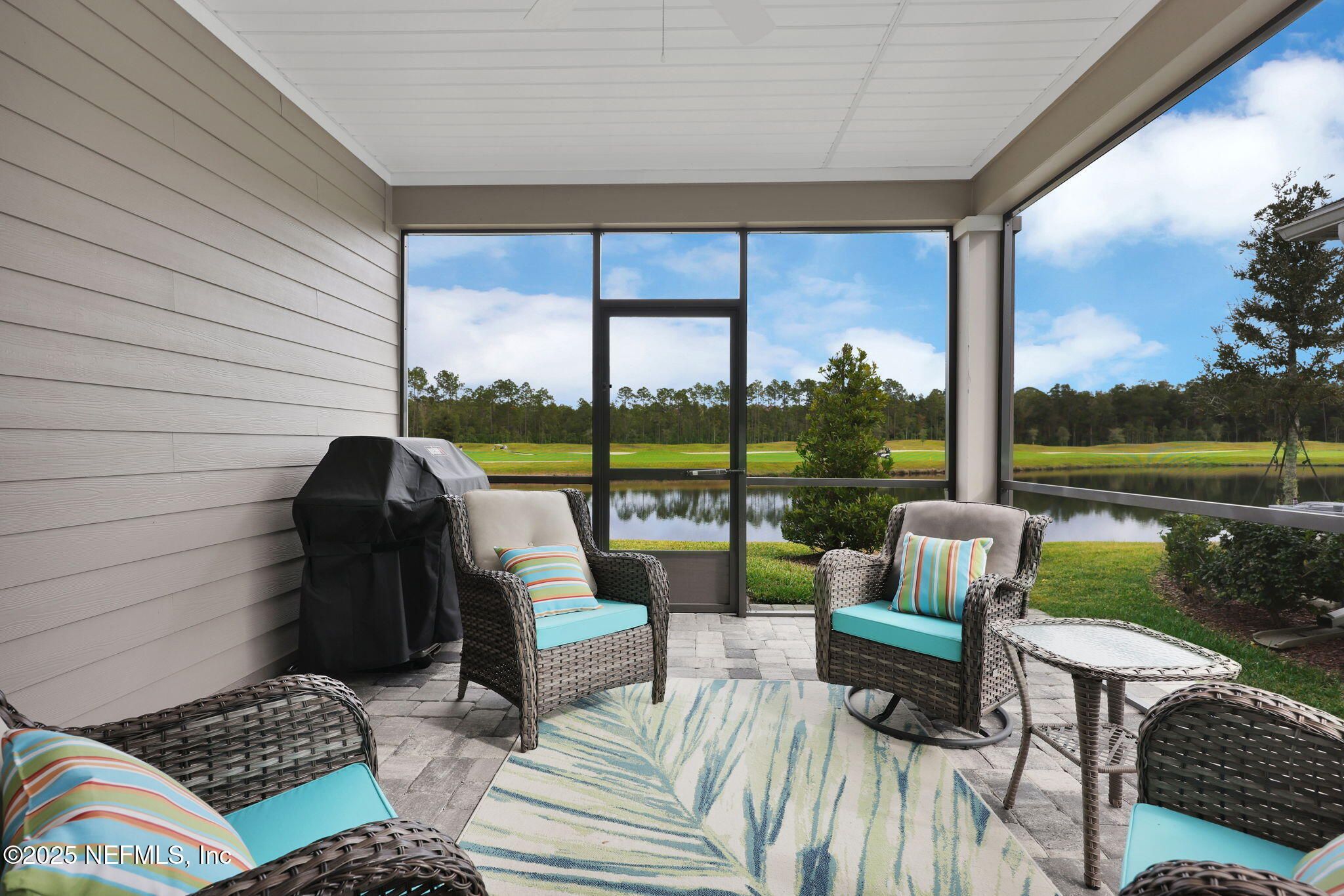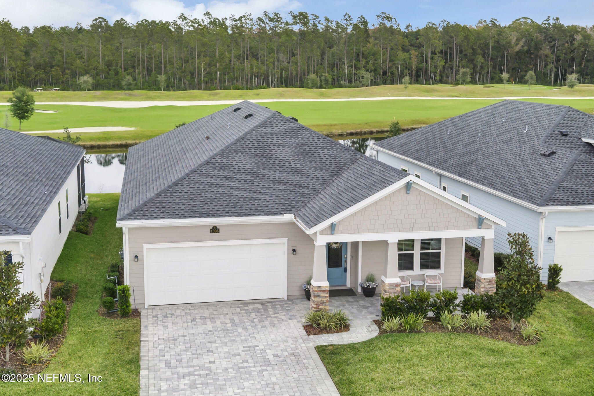 This charming home is situated on a premium homesite in Stillwater, offering expansive water & golf course views. This sought-after ''Sierra'' plan features 4 bedrooms, a dedicated study, 2.5 baths, and over 2200 square feet of thoughtfully-designed living space. The gourmet kitchen showcases white shaker cabinetry with roll-out shelving, double ovens, a gas cooktop, a beverage center, quartz countertops & a decorative glass tile backsplash. Complete with a 9' island breakfast bar, this kitchen is ideal for cooking & hosting alike. Sliding doors lead out to a covered, screened lanai overlooking the golf course, offering sweeping water & preserve views. You'll find ample storage throughout as well as additional upgrades like 8' doors, decorative shiplap & wood paneling, upgraded lighting & mirrors, wood-look plank tile flooring throughout the main areas & coordinating LVP flooring in each bedroom. Outside, you'll find covered front and back porches, a 2-car garage with epoxy coating, Hardie siding, decorative stacked stone, and paver surfaces. Enjoy low-maintenance living at its finest, plus year-round access to resort-style amenities. Lawncare is covered & each homeowner receives a golf membership with green fees included at no additional cost. Built in 2023, this home has been meticulously maintained & is move-in ready. Stillwater is a gated 55+ master-planned community featuring an 18-hole Bobby Weed-designed championship golf course. Avid golfers can hone their game at the practice facility, equipped with state-of-the-art Toptracer technology. Residents enjoy access to a wide array of amenities, including a resort-style swimming pool, fitness center, bocce ball, pickleball, and tennis courts. The clubhouse offers a full-service restaurant, bar, and lounge & the weekly events calendar ensures there's never a shortage of activities, no matter your interests. Centrally located in St. Johns, FL, you're perfectly positioned between St. Augustine & Jacksonville, surrounded by restaurants, shopping, hospitals & so many other conveniences. Come enjoy laid-back Florida living at its finest.