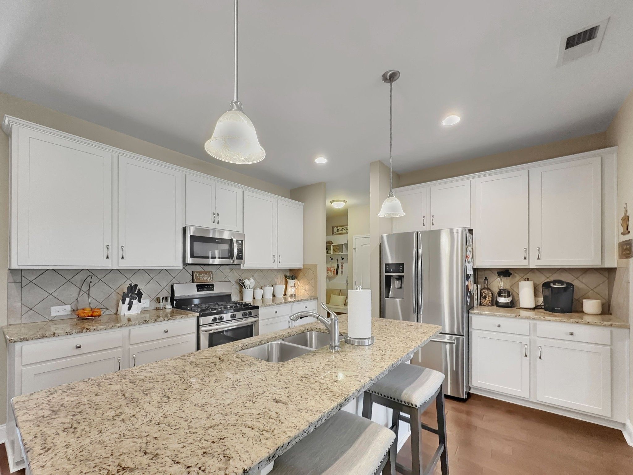 This beautifully maintained Georgetown Villa offers effortless living with a spacious, light-filled layout. Featuring 3 bedrooms, 3 full bathrooms, a sunroom, and a versatile bonus space, there’s room for every lifestyle. Located next to a serene common area, the home provides a sense of openness and privacy. Inside, you’ll find gorgeous hardwood flooring, well designed kitchen with gas stove, a tile shower, granite countertops, and a covered porch perfect for relaxing or entertaining. Ideally situated just minutes from grocery stores, shopping, healthcare facilities, and with quick access to the interstate, convenience is truly at your doorstep.