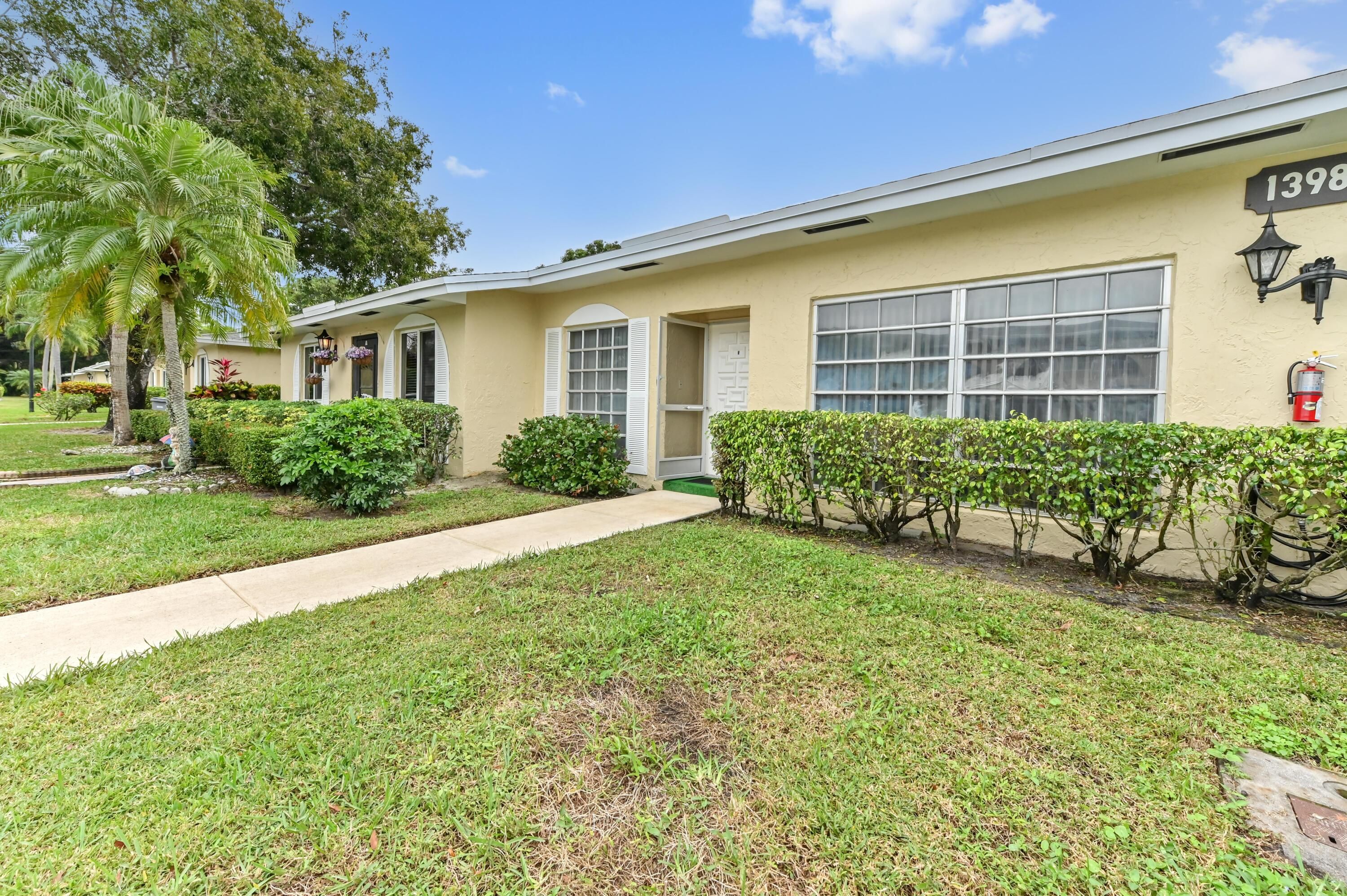 Welcome to one of Delray Beach's most sought-after communities, where comfort meets resort-style living. This 2-bedroom, 1 1/2 bath villa is immaculate and offers a well-designed, solid floor plan with endless potential to make it your own. The home blends ease and style, featuring a spacious and private backyard sanctuary—perfect for relaxing or entertaining. Inside, the kitchen is both functional and inviting with sleek countertops and a cozy breakfast nook. Enjoy the convenience of a washer and dryer in the home, along with mostly tile flooring and some carpeting, including freshly installed tile in both bedrooms, creating a clean, cohesive feel throughout. The monthly HOA includes: cable, high-speed Breezeline internet, water, lawn care, roof maintenance and more! Best of all, the community boasts a brand-new, stunning resort-style clubhouse with outstanding amenities, including two sparkling pools, a hot tub, a state-of-the-art fitness center, tennis courts, pickleball courts, a classic diner, and much more...offering a vibrant and social lifestyle right outside your door. Ideally located in prime Delray Beach, just minutes from I-95, the Turnpike, and downtown Delray's renowned dining, shopping, the beautiful beach and cultural attractions. This is a fantastic opportunity for buyers seeking comfort, value, and the very best of Florida living.