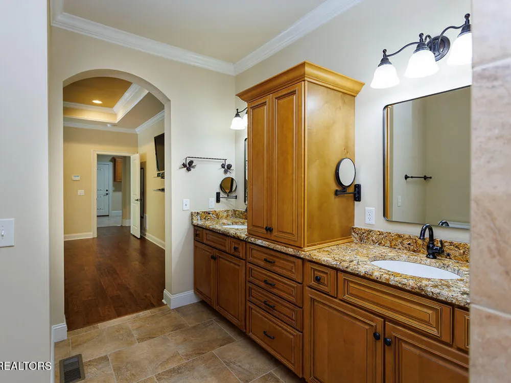 Another beautiful Cordova plan by Fairfield Glades Premier Builder. This meticulously maintained 2013 SF home exudes quality with all of the bells and whistles! The home sits on a professionally designed and manicured oversized lot with a sprinkler system and landscape lighting, talk about street appeal! 3 bedrooms, 2.5 baths with an enclosed sun porch off of the great room, a bright and sunny office space off of the custom kitchen that could be a sitting area or sun room make up the heart of this home. The kitchen & baths boast custom cabinets with pull out soft close drawers. Some of the upgrades on this home include Water Cop, whole house LED lighting, house generator, central alarm system, 20 amp outlets in the oversized garage, stainless steel gutter covers, central alarm system, new AC w/ UV-C light air sanitizer system in 2024, additional storage can be found in the insulated attic and 8'x10 Master Craft utility shed in the back yard. and so much more! This house has it all!