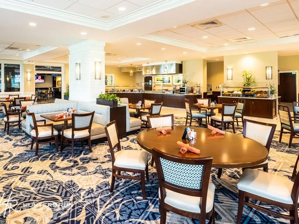 Spacious and light-filled, this single-family home features soaring ceilings, a brand-new roof, and an inviting open layout. Enjoy seamless indoor-outdoor living with a large front courtyard and rear patio. Entertain at the wet bar and host family or guests in the private-entry suite. The expansive primary bedroom offers a luxurious retreat with a large soaking tub and oversized walk-in closet. This is a pool lot! Hunters Run is a resort style country club offering top-tier tennis & pickleball courts, 7 unique dining venues, resort-style pools, a state-of-the-art fitness center, a full-service spa & salon, and social events. Membership is required. The community features social, tennis and full golf membership options.
