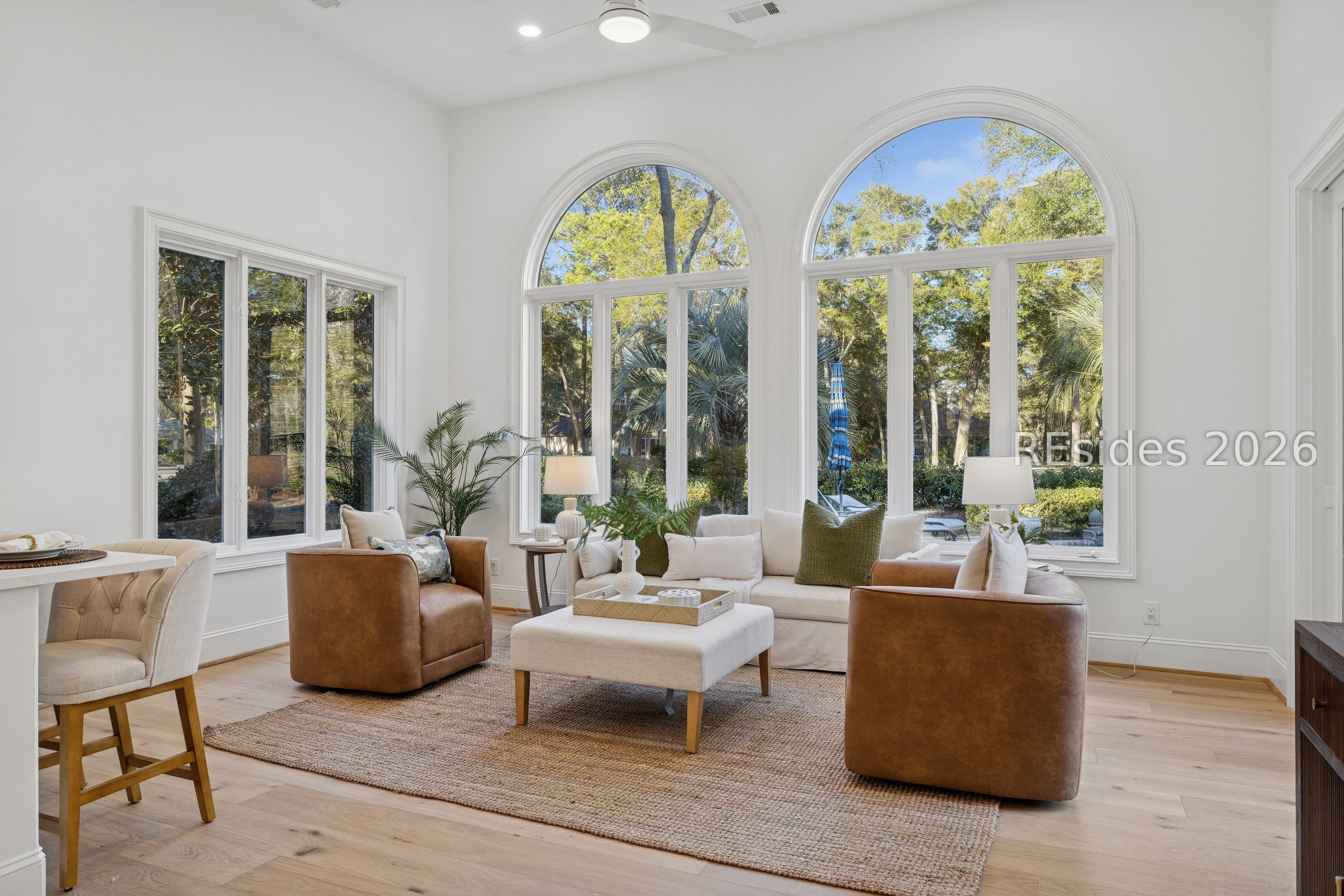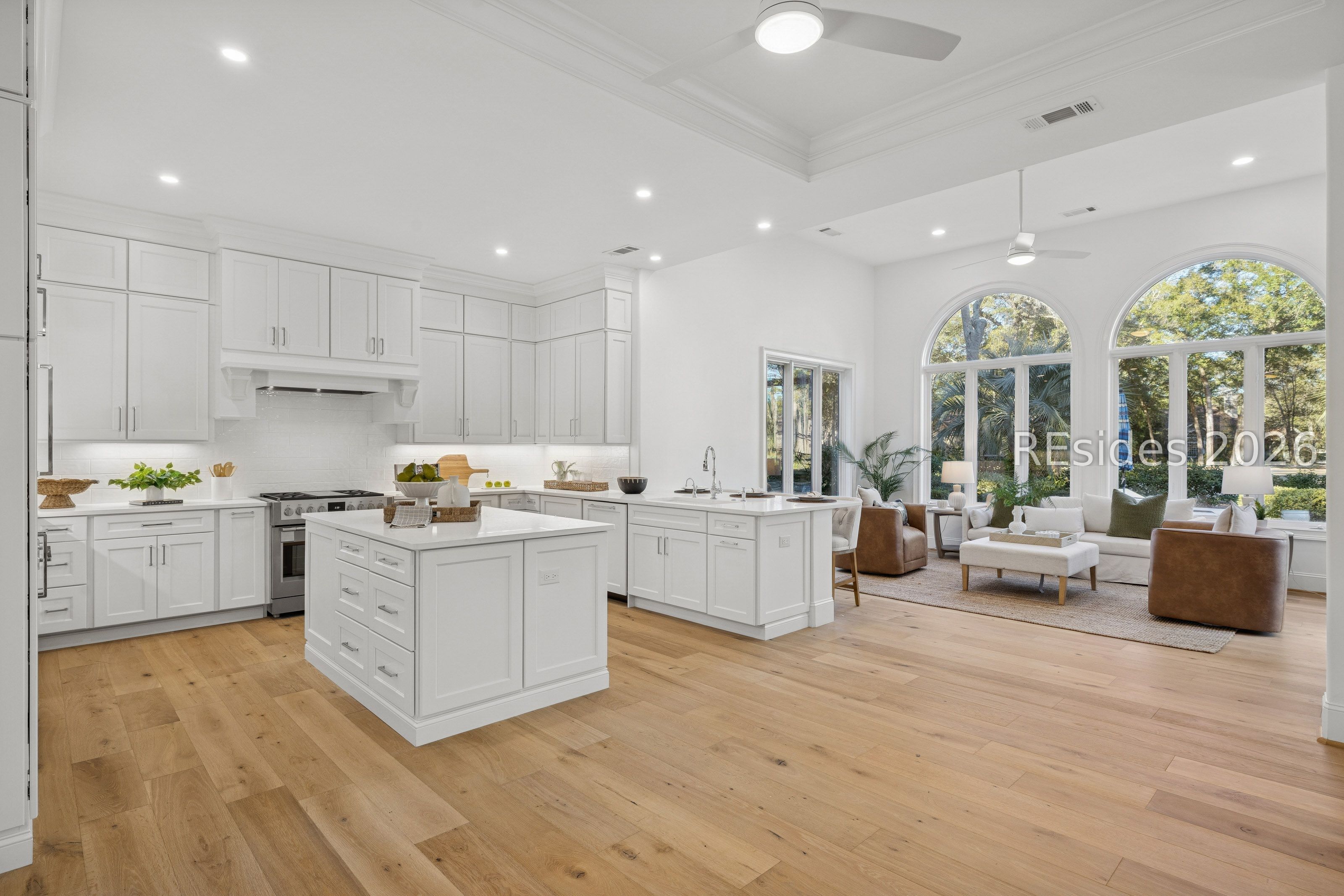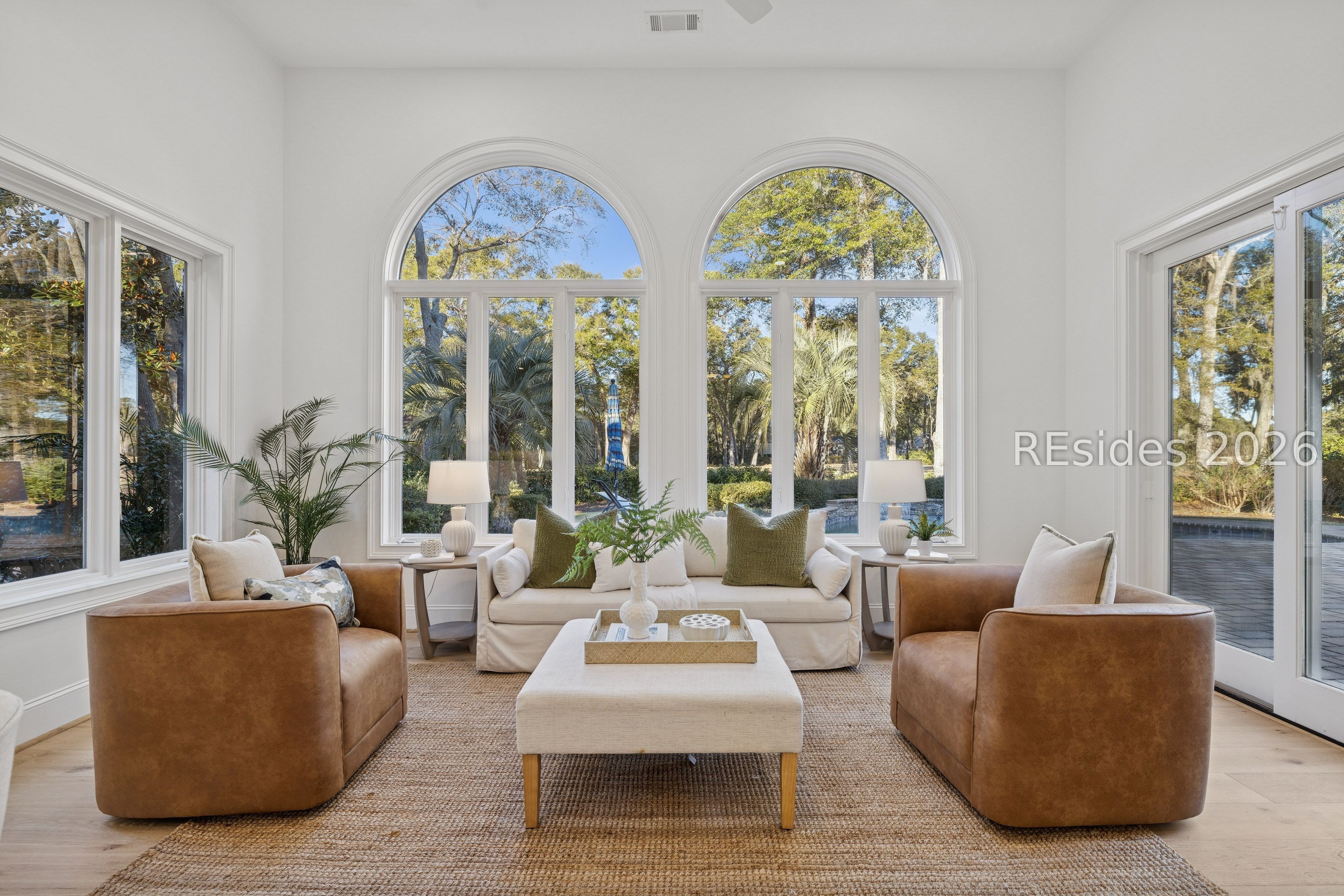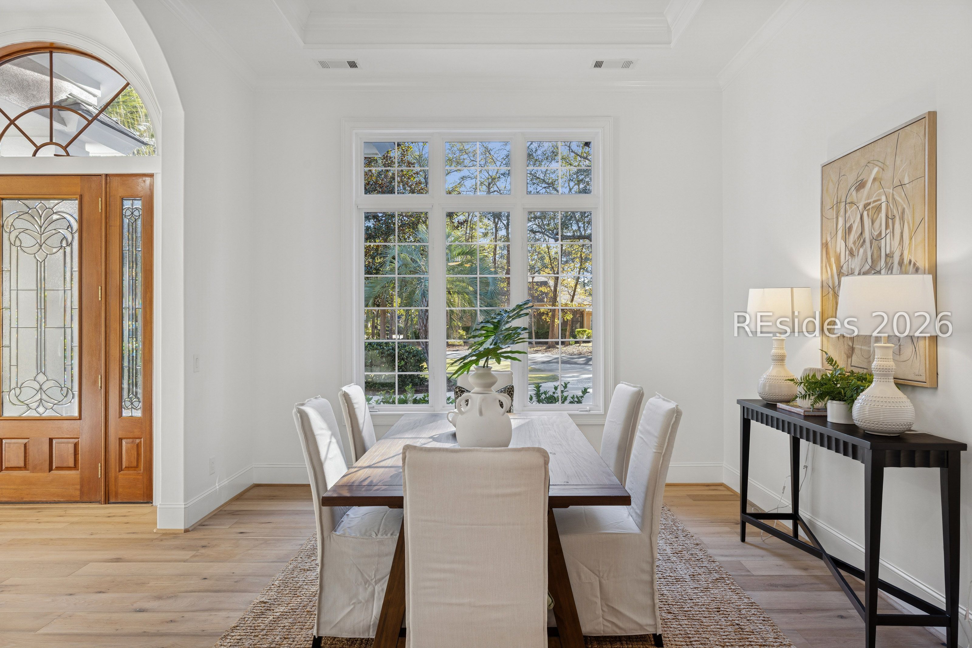 Your Island dream home awaits! This completely remodeled home sits within the prestigious gated Indigo Run Community on Hilton Head Island. No detail was overlooked nor expense spared. As you enter the foyer, your eyes are immediately drawn to the elegant high ceilings of the light-filled great room, anchored by an inviting fireplace. The gourmet kitchen features exquisite wood cabinetry and top-of-the-line appliances. Thoughtfully updated from top to bottom, the residence offers a refined Lowcountry feel with today's most desired finishes and a layout designed for everyday living and entertaining. High ceilings, crown molding, and hardwood flooring enhance the open floor plan, while new tile, quartz countertops throughout, and brand-new appliances elevate the kitchen and baths. Expansive windows frame peaceful pool views with the golf course beyond. The first-floor owner's suite provides privacy and comfort, complemented by a dedicated office ideal for remote work. Outdoors, lush landscaping surrounds a private swimming pool and patio, creating a serene setting to enjoy the island lifestyle. Move-in ready and meticulously updated, this Indigo Run home offers luxury, golf course living, and access to Hilton Head's beaches, dining, and shopping-all within one of the island's most sought-after communities.