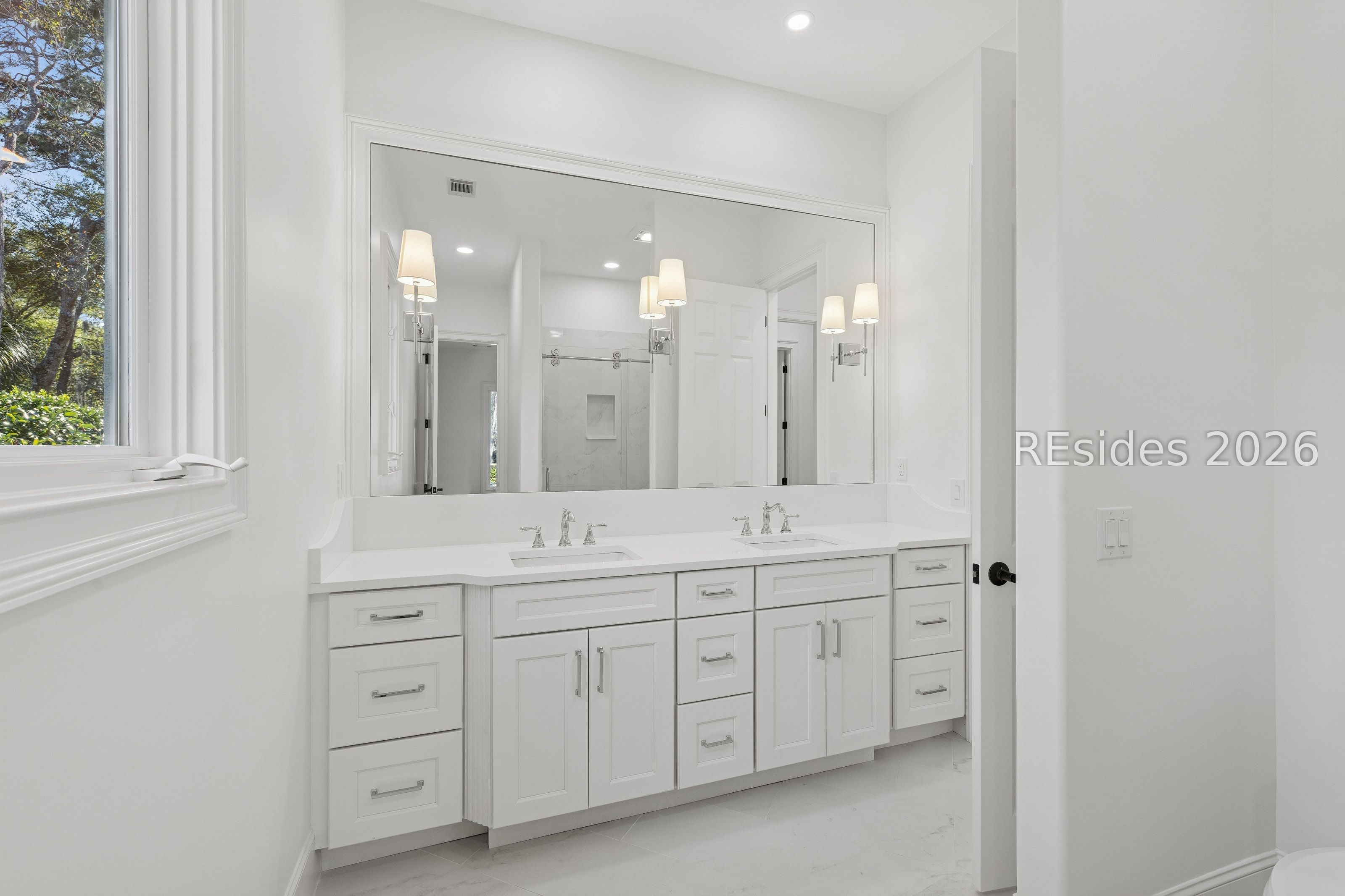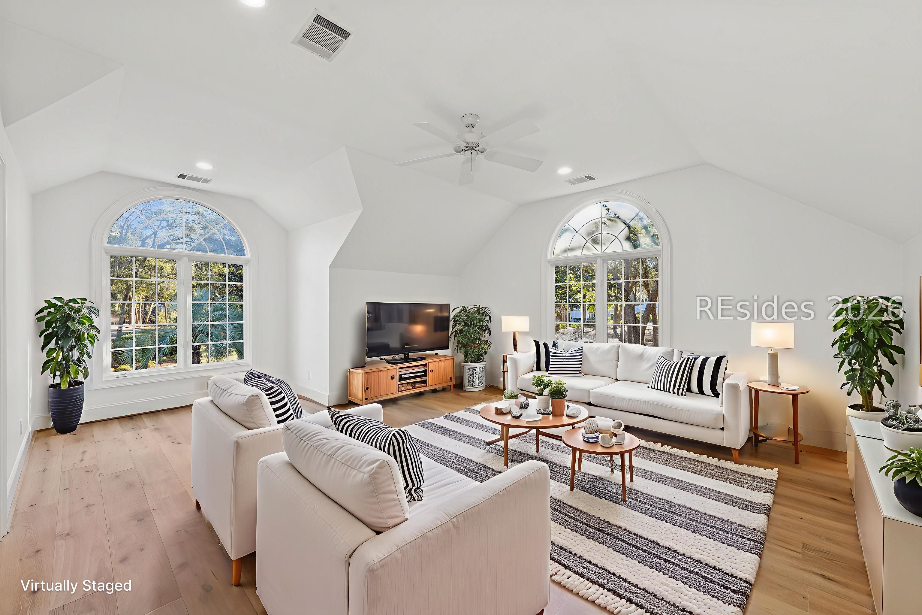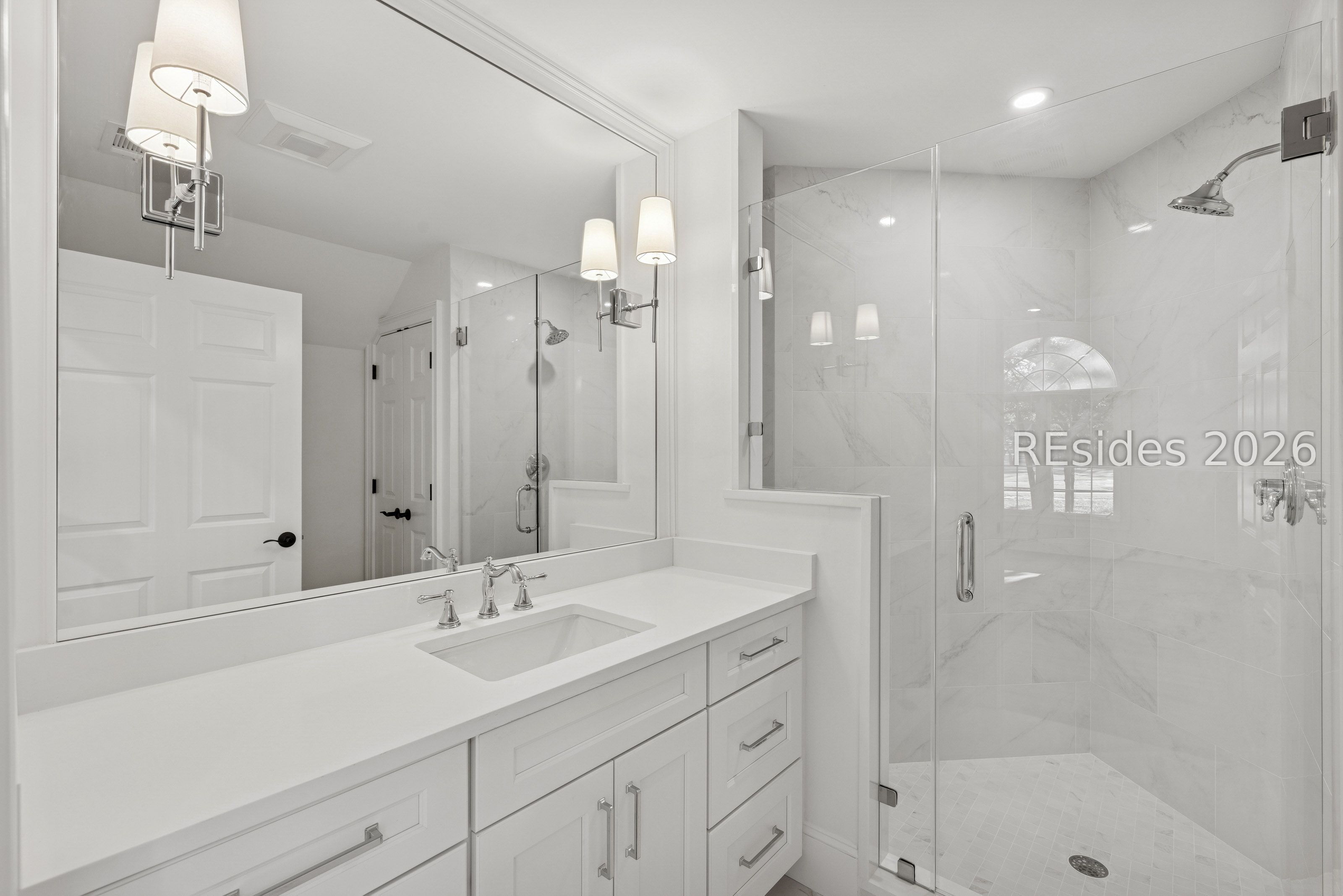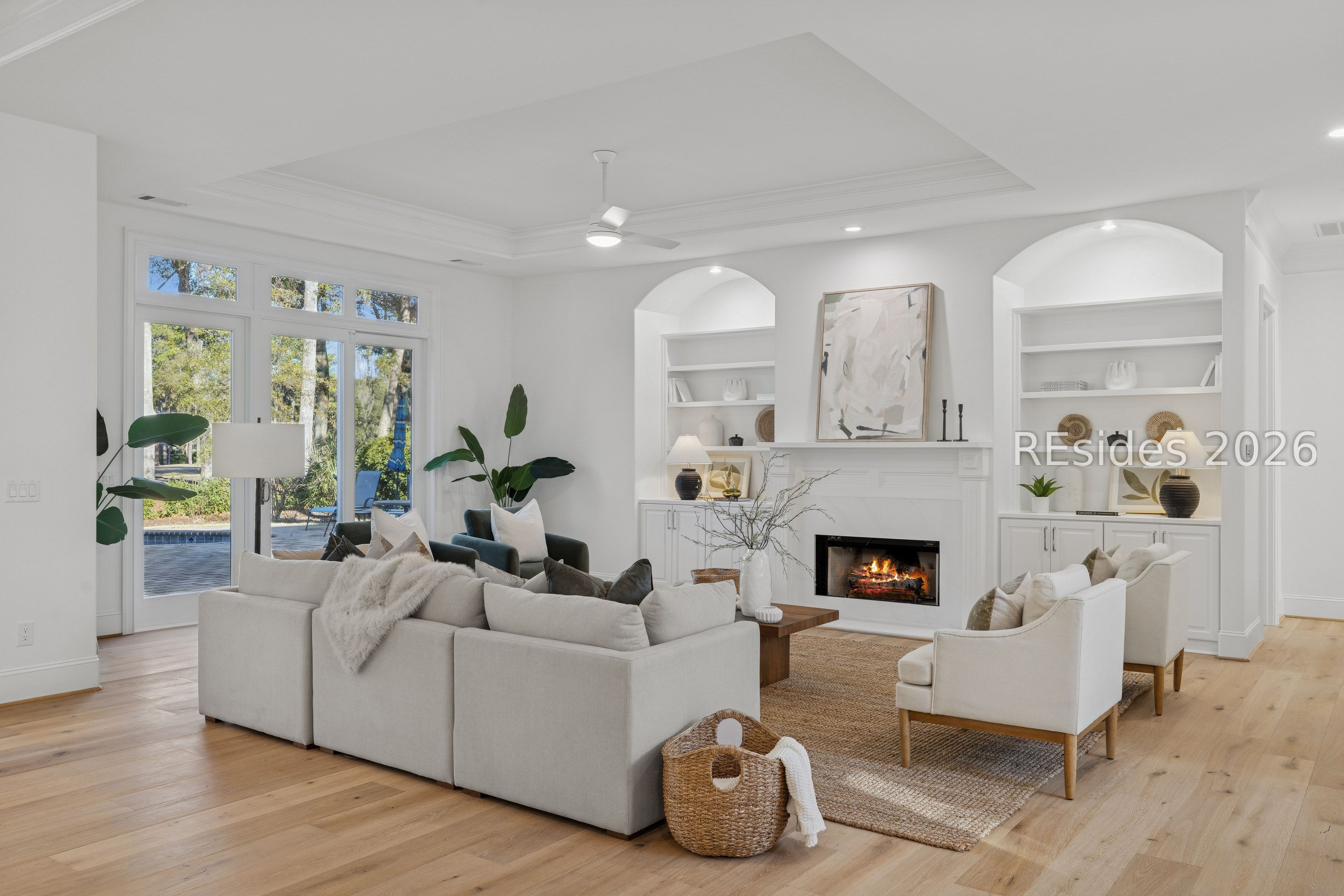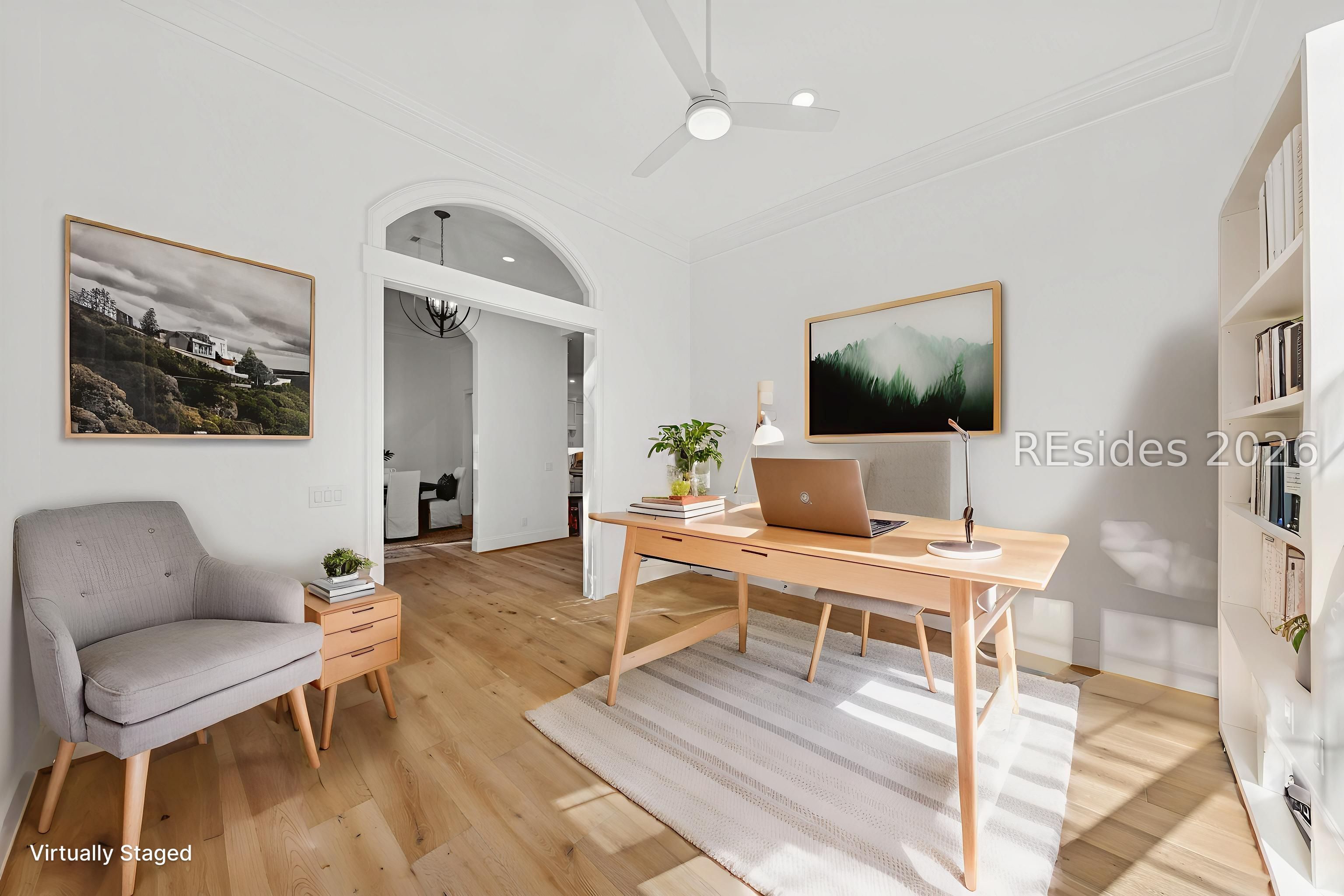 Your Island dream home awaits! This completely remodeled home sits within the prestigious gated Indigo Run Community on Hilton Head Island. No detail was overlooked nor expense spared. As you enter the foyer, your eyes are immediately drawn to the elegant high ceilings of the light-filled great room, anchored by an inviting fireplace. The gourmet kitchen features exquisite wood cabinetry and top-of-the-line appliances. Thoughtfully updated from top to bottom, the residence offers a refined Lowcountry feel with today's most desired finishes and a layout designed for everyday living and entertaining. High ceilings, crown molding, and hardwood flooring enhance the open floor plan, while new tile, quartz countertops throughout, and brand-new appliances elevate the kitchen and baths. Expansive windows frame peaceful pool views with the golf course beyond. The first-floor owner's suite provides privacy and comfort, complemented by a dedicated office ideal for remote work. Outdoors, lush landscaping surrounds a private swimming pool and patio, creating a serene setting to enjoy the island lifestyle. Move-in ready and meticulously updated, this Indigo Run home offers luxury, golf course living, and access to Hilton Head's beaches, dining, and shopping-all within one of the island's most sought-after communities.
