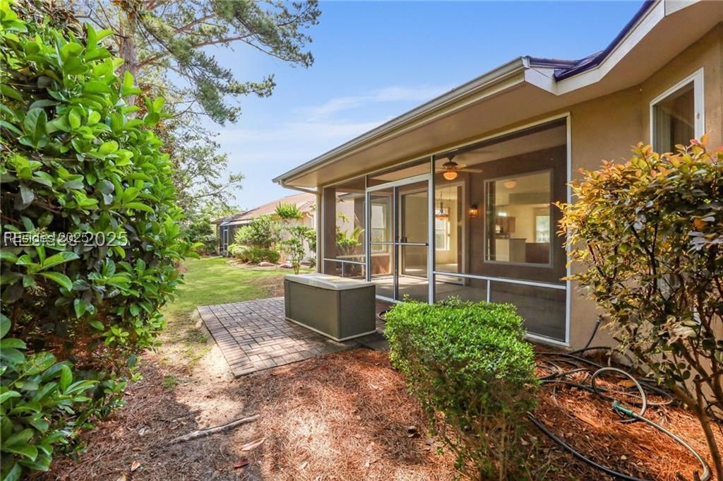 BRAND NEW ROOF & CARPET! This beautifully maintained Sun City Hilton Head home is tucked away on a quiet, private cul-de-sac and features a brand-new roof with a transferable warranty starting with the new owner! The spacious garage is a standout, offering durable epoxy flooring, a dedicated third door for your golf cart, pull-down attic storage, built-in shelving, and a functional workbenchperfect for projects and extra storage. Inside, the popular Hatteras floor plan includes a flexible bonus space ideal for a home office, guest room, or hobby area. Enter through a charming gated courtyard accented by fresh exterior paint and a clean stucco report. Out back, enjoy peaceful Lowcountry living from your screened porch or on the inviting brick patio.