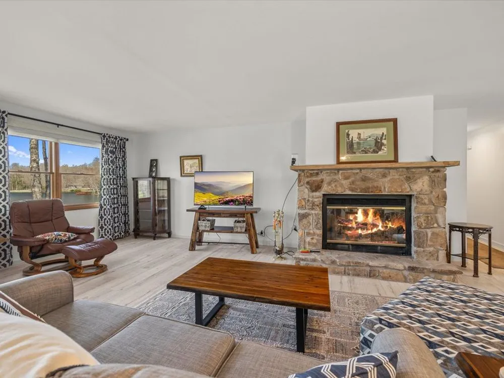 Located in the Fairfield Glade community, this captivating 3 bed/2 bath lakefront property offers 1,830 sq. ft. of living space. The exterior, with its natural shingled charm, is cradled by mature trees, embodying the tranquil spirit of the Cumberland Plateau. As you step through the front door, the warmth of the living room invites you in, with its centerpiece fireplace adding a cozy ambiance to the spacious, open-plan design. The sunlight streams through expansive windows, drawing attention to the stunning lake views that provide a picturesque backdrop for daily living. The kitchen is a testament to modern functionality, outfitted with stainless steel appliances, pristine white cabinets, and a chic backsplash. It's a space that's both inviting & ideal for preparing meals while engaging in conversation with guests. Outside, the property's lakeside setting is a gateway to peaceful contemplation and waterside activities, offering a blend of outdoor adventure and homely comfort.