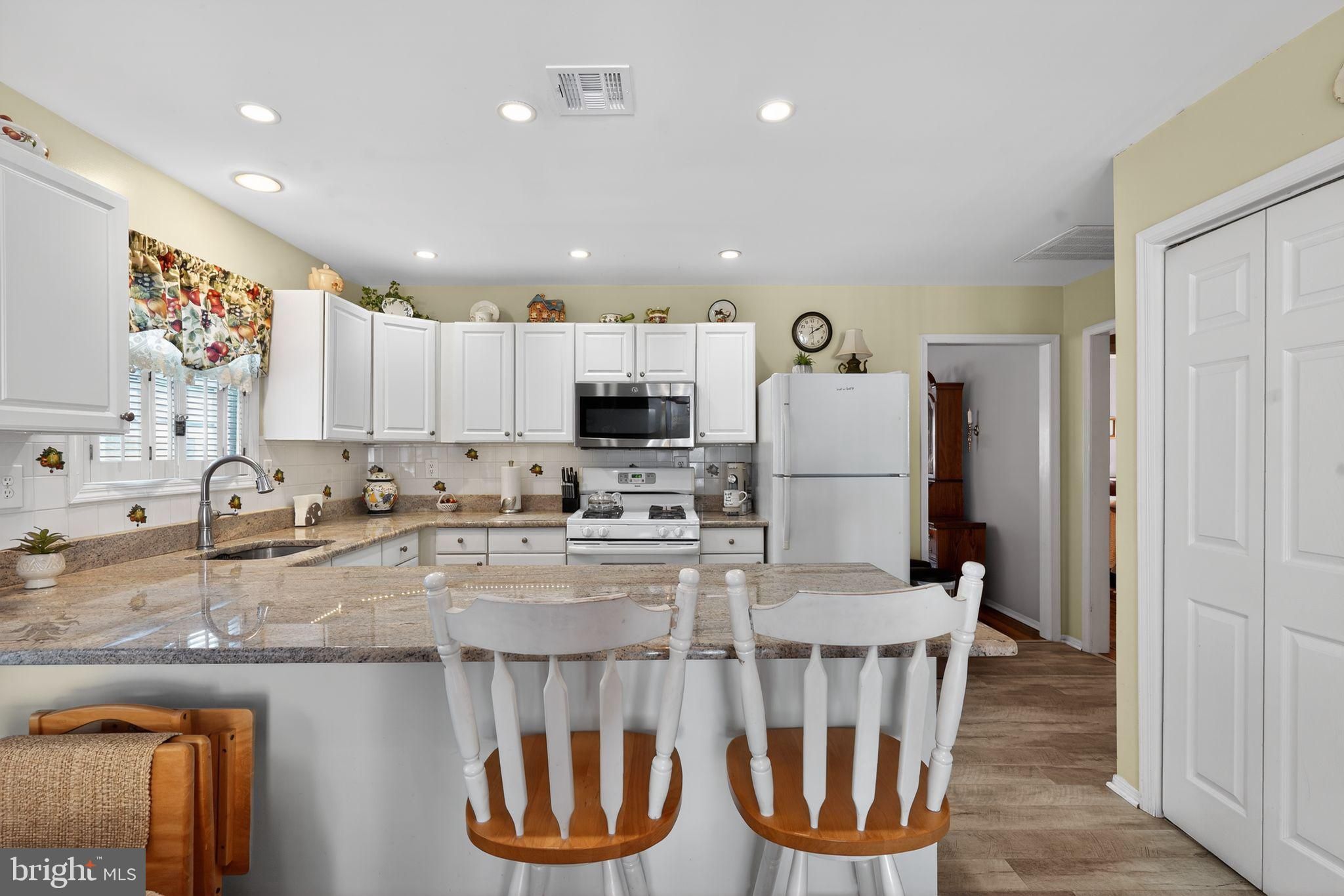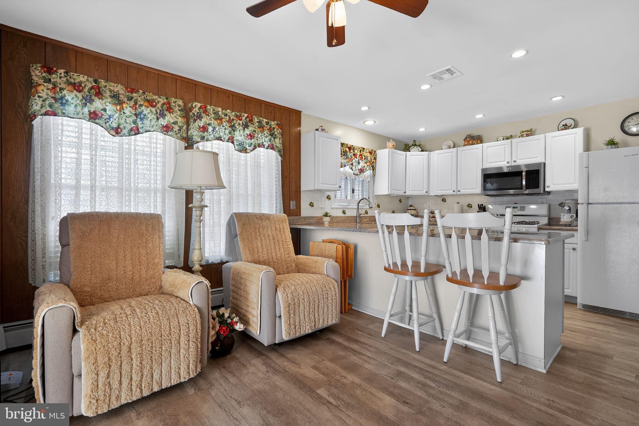 Welcome to 14 Doral Drive, a beautifully maintained home located in the highly desirable Holiday City West 55+ community. This inviting residence offers the perfect blend of comfort, space, and easy living. The exterior welcomes you with a private driveway, attached garage, and charming covered front porch, ideal for morning coffee or relaxing evenings. Inside, you’ll find a bright and spacious living and dining area featuring luxury vinyl plank flooring, neutral tones, and an open layout that creates a warm and welcoming atmosphere for everyday living and entertaining. The kitchen is the heart of the home, showcasing white cabinetry, granite countertops, stainless steel appliances, recessed lighting, and a generous breakfast bar that opens to the main living space—perfect for casual meals or hosting guests. Adjacent to the kitchen is a cozy sitting or dining area, offering flexible living options. A standout feature of this home is the sun-filled enclosed porch, providing peaceful views and year-round enjoyment—an ideal space to relax, read, or entertain while enjoying abundant natural light. The home offers comfortable, generously sized bedrooms with ample closet space and soothing color palettes. The bathroom is tastefully updated with a modern vanity, walk-in shower, and bright finishes. This home has been lovingly cared for and provides easy, low-maintenance living in one of Toms River’s most sought-after adult communities. Holiday City West offers a vibrant lifestyle with community amenities including a clubhouse, outdoor pool, shuffleboard courts, and a wide variety of social clubs and activities. Lawn care and snow removal are included, allowing residents to enjoy carefree living. Conveniently located near shopping, dining, medical facilities, major roadways, and the Jersey Shore, this move-in-ready home is an exceptional opportunity to enjoy everything Holiday City West has to offer.