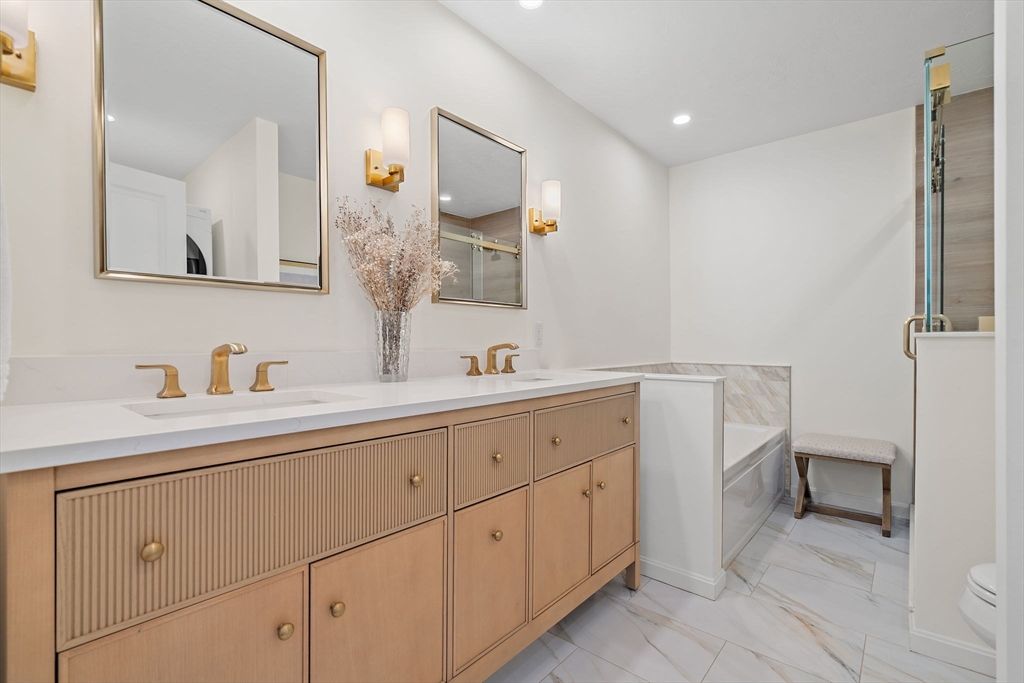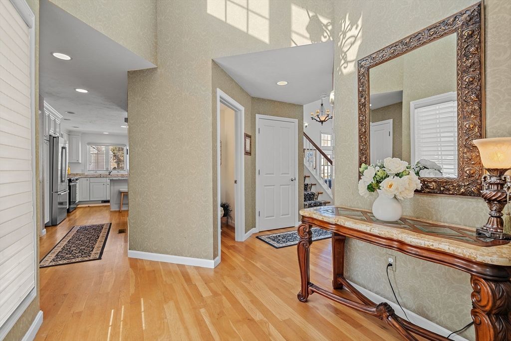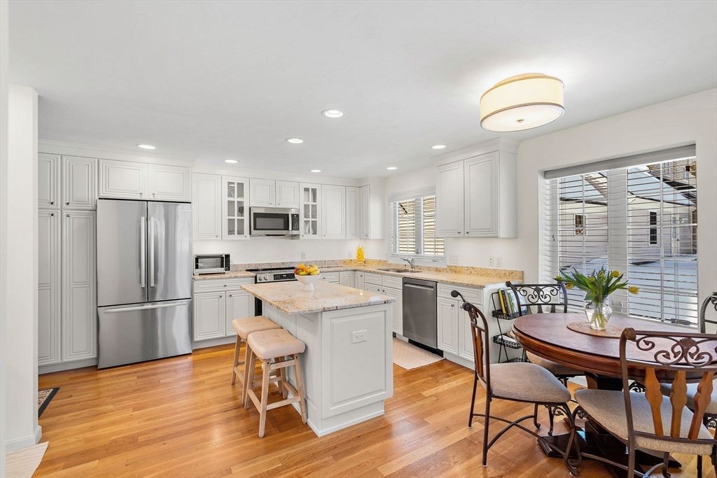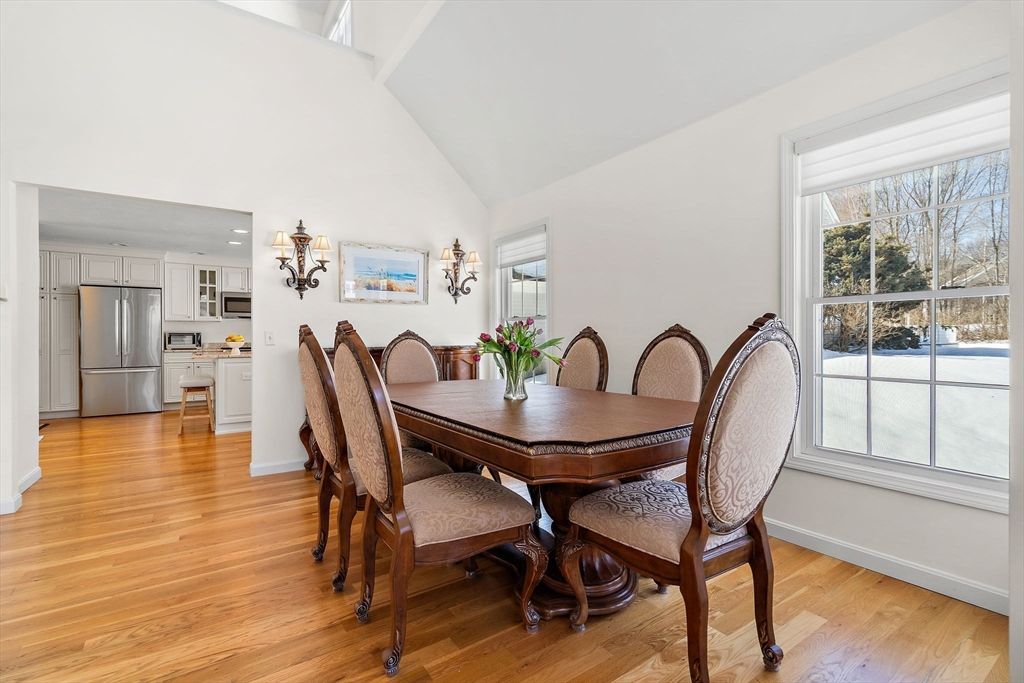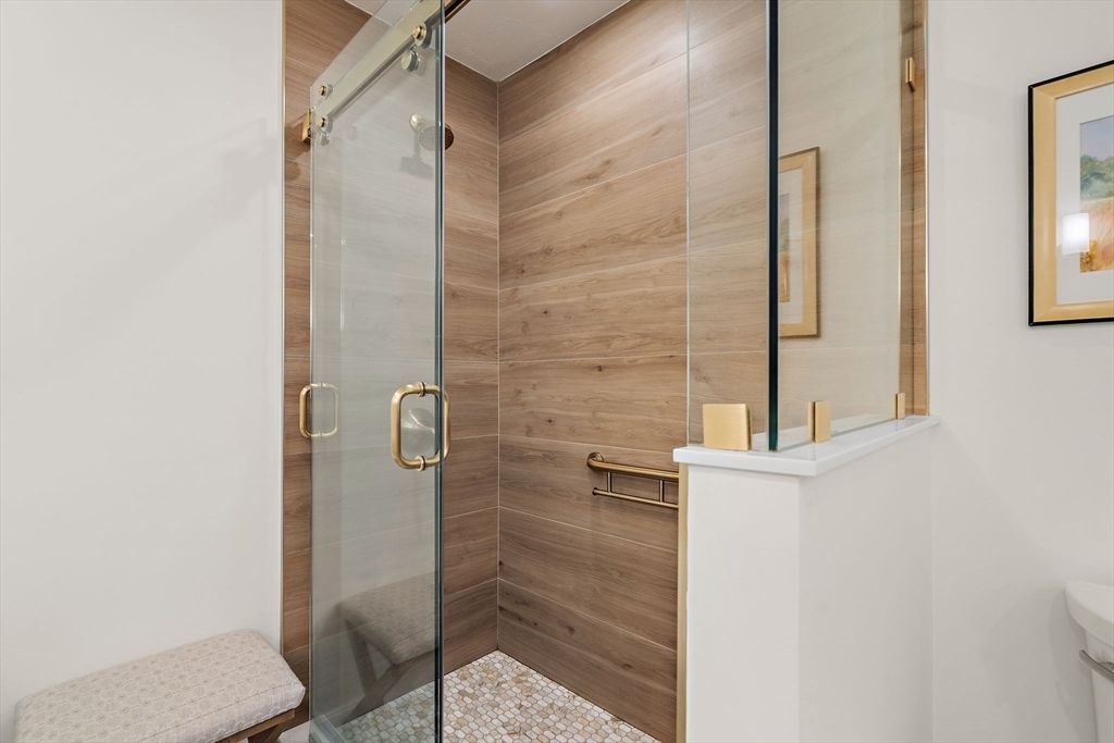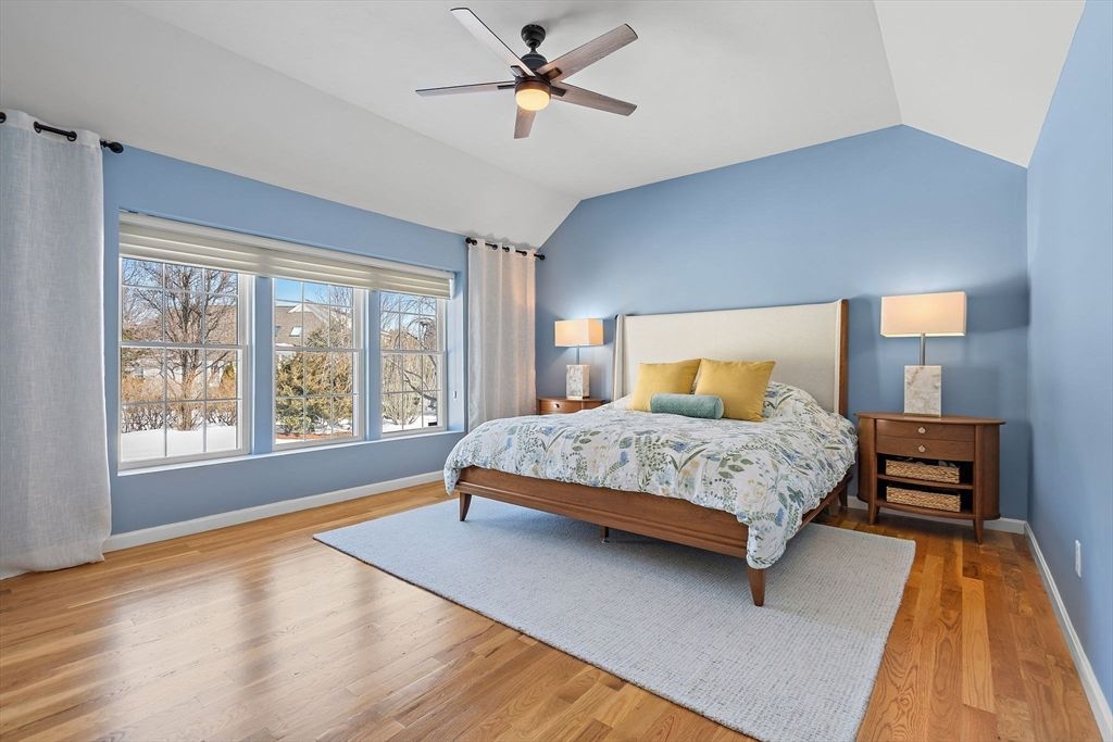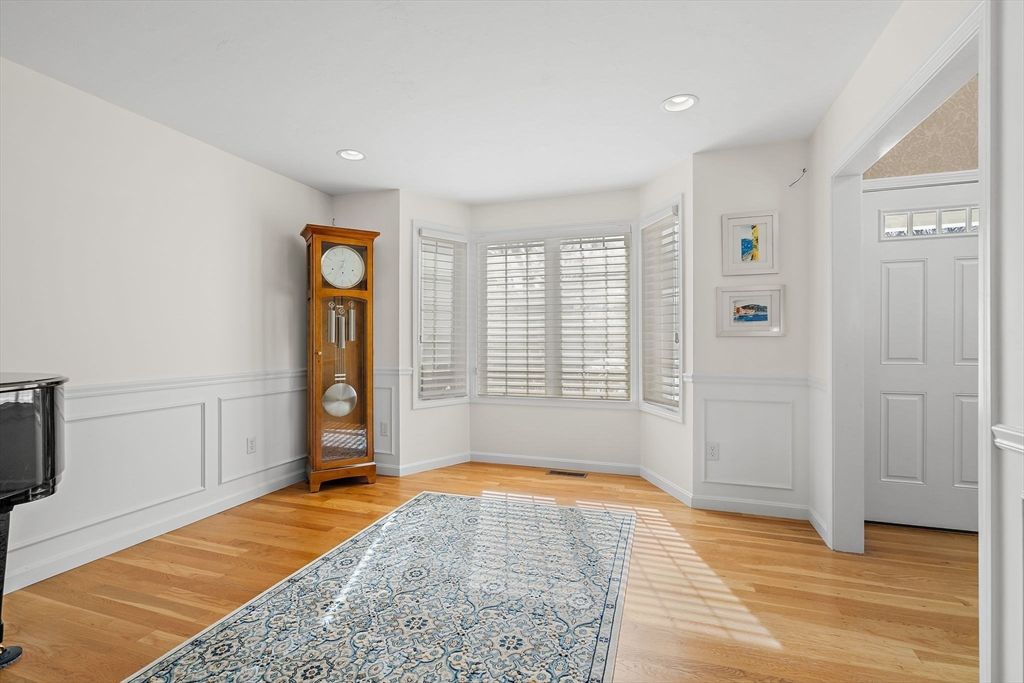 Refined sophistication meets effortless living. This sensational, designer-decorated home showcases exceptional custom detail throughout. The fully renovated kitchen shines with high-end appliances, custom cabinetry, granite counters, and a coffee bar with mini fridge. The dining room area is wide open and leads out to a charming 3-season room overlooking a private, lush rear yard. Hardwood floors span the first level, including a sun-filled vaulted great room with a gas fireplace and walls of windows. The first-floor primary suite offers a luxurious bath with glass enclosed walk-in shower and exceptional custom closet space. A second-floor guest suite with full bath, walk-in closet, and loft provides wonderful flexibility. The finished lower level features a media room, office, and exercise space plus abundant storage. Surrounded by conservation land, walking trails, and a vibrant clubhouse community. A detailed list of updates is attached—You will LOVE this home!