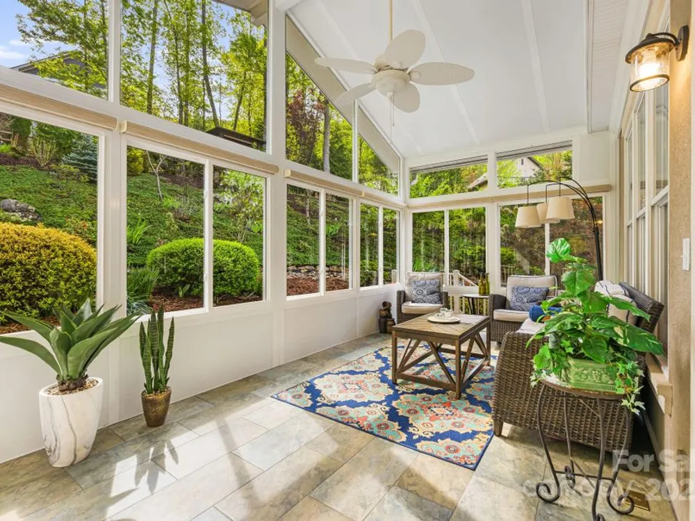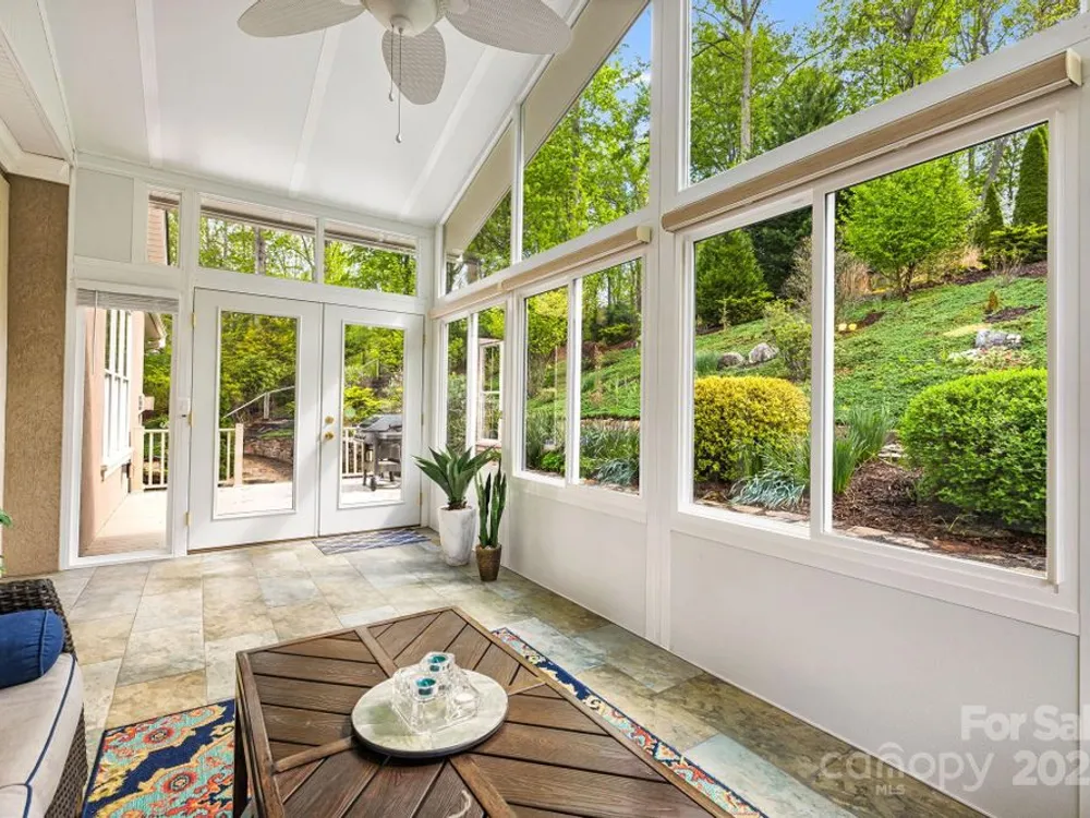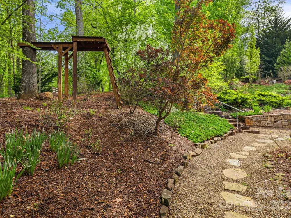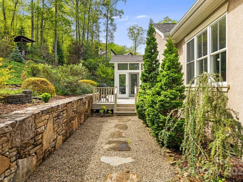 OPEN HOUSE FRIDAY, October 10th, 11:00 am - 1:00 pm SATURDAY, October 11th, 11:00 am - 2:00 pm SITTING ON A KNOLL SURROUNDED BY NATURE, this exquisite home checks all the boxes! One level living, open and bright--perfect for entertaining. Mountain views and beautiful gardens w/plantings to enjoy year round. Watch wildlife from the sunroom while enjoying your morning coffee. Hardwood floors, stone fireplace with gas logs. Gourmet kitchen w/stainless steel appliances, granite countertops, center island, breakfast bar, walk-in pantry. Primary bedroom suite has two walk in closets, spa shower with radiant heated floor, double vanities. 3 additional bedrooms, one with a wardrobe closet. A flex room for exercise or studio OR it can be opened as previous—a formal dining room. The garage has space for a work bench and a loft above-- for a hobby room or storage. Outdoor space includes a covered front porch, rear deck, gazebo. Biltmore Lake offers a 68 acre lake, 6+ miles of walking trails, clubhouse, tennis, basketball, paddle boating. There is a 135 acre conservation area nearby.