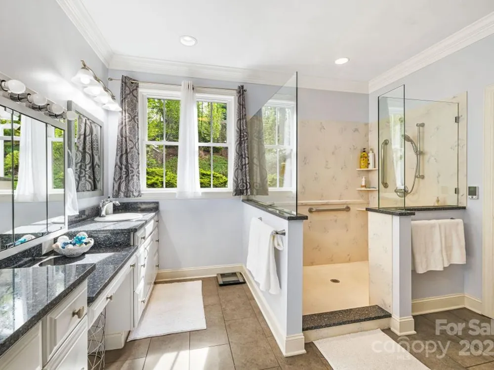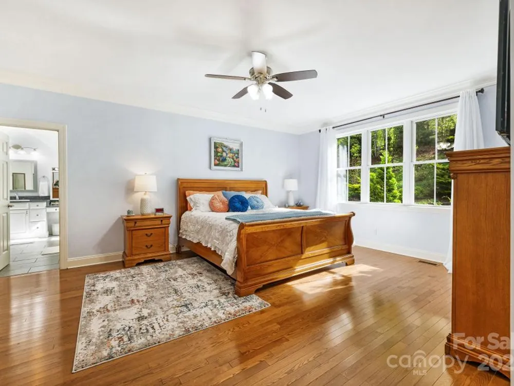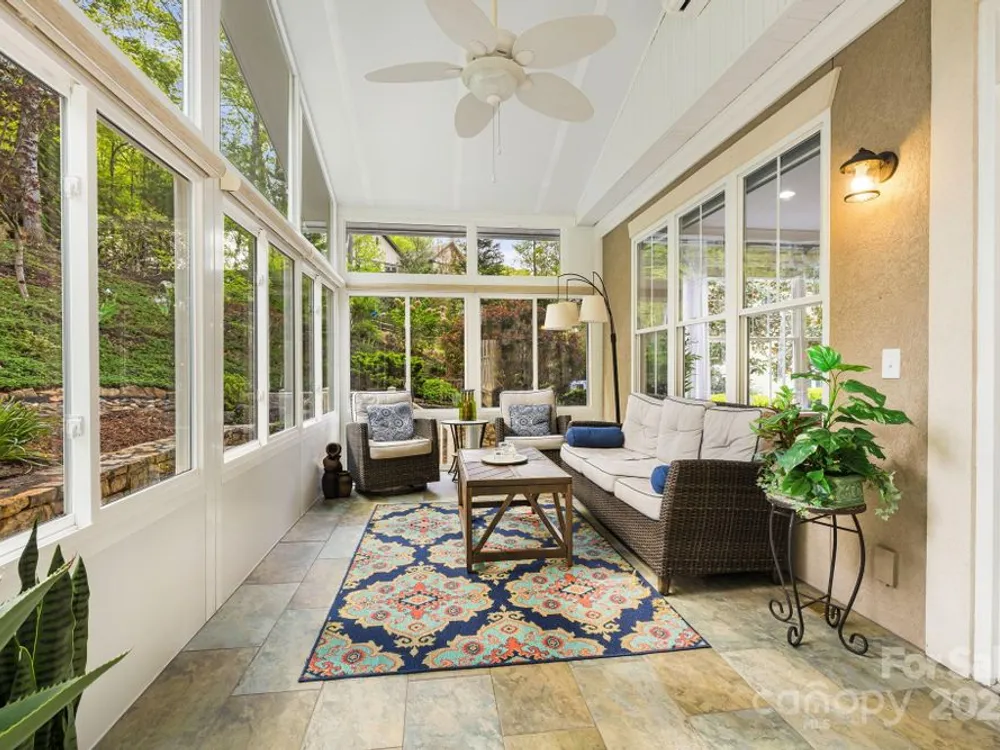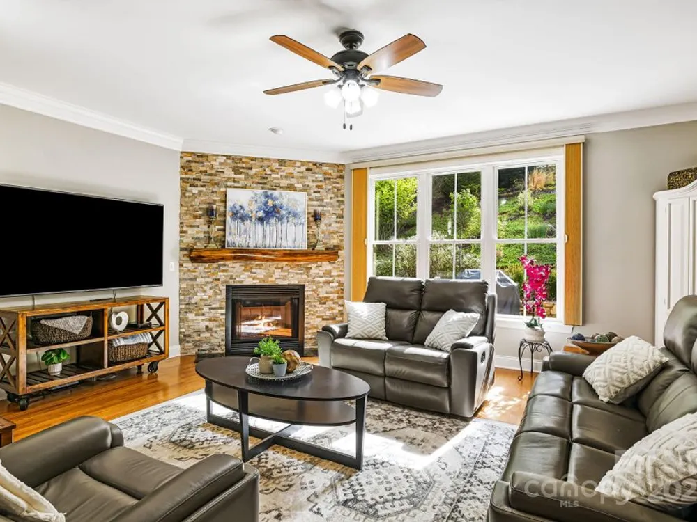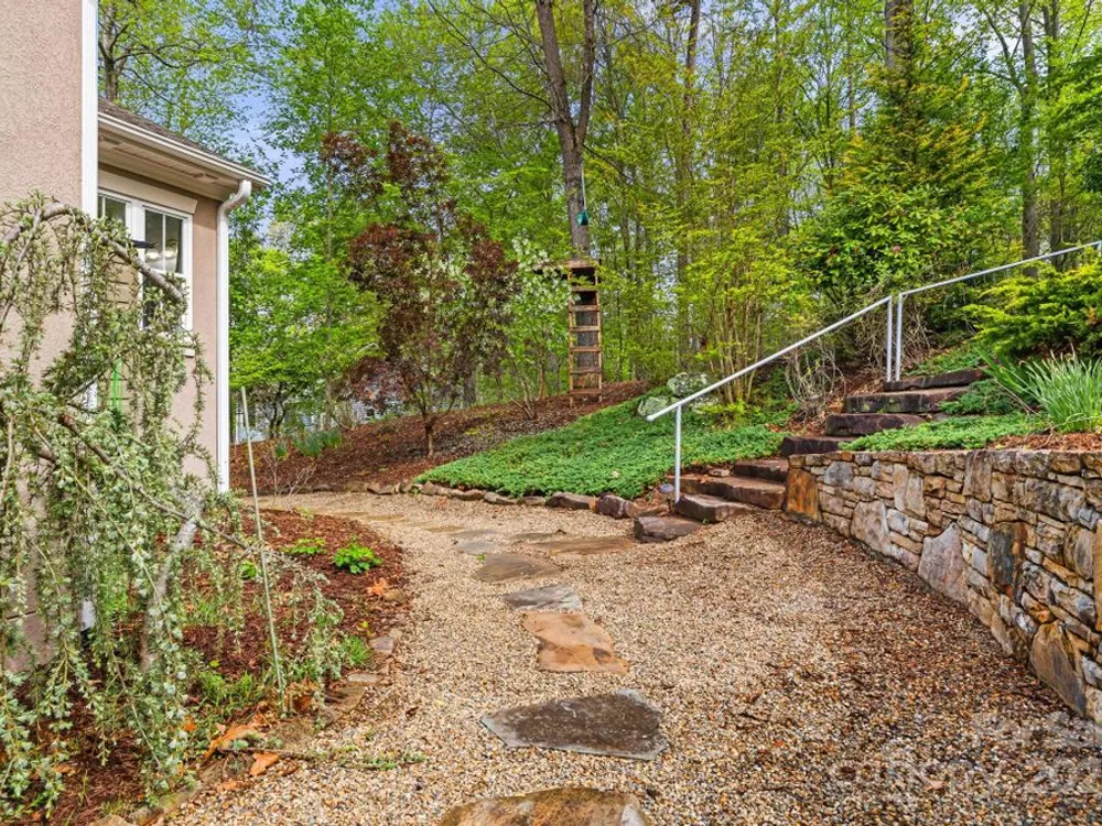 OPEN HOUSE FRIDAY, October 10th, 11:00 am - 1:00 pm SATURDAY, October 11th, 11:00 am - 2:00 pm SITTING ON A KNOLL SURROUNDED BY NATURE, this exquisite home checks all the boxes! One level living, open and bright--perfect for entertaining. Mountain views and beautiful gardens w/plantings to enjoy year round. Watch wildlife from the sunroom while enjoying your morning coffee. Hardwood floors, stone fireplace with gas logs. Gourmet kitchen w/stainless steel appliances, granite countertops, center island, breakfast bar, walk-in pantry. Primary bedroom suite has two walk in closets, spa shower with radiant heated floor, double vanities. 3 additional bedrooms, one with a wardrobe closet. A flex room for exercise or studio OR it can be opened as previous—a formal dining room. The garage has space for a work bench and a loft above-- for a hobby room or storage. Outdoor space includes a covered front porch, rear deck, gazebo. Biltmore Lake offers a 68 acre lake, 6+ miles of walking trails, clubhouse, tennis, basketball, paddle boating. There is a 135 acre conservation area nearby.
