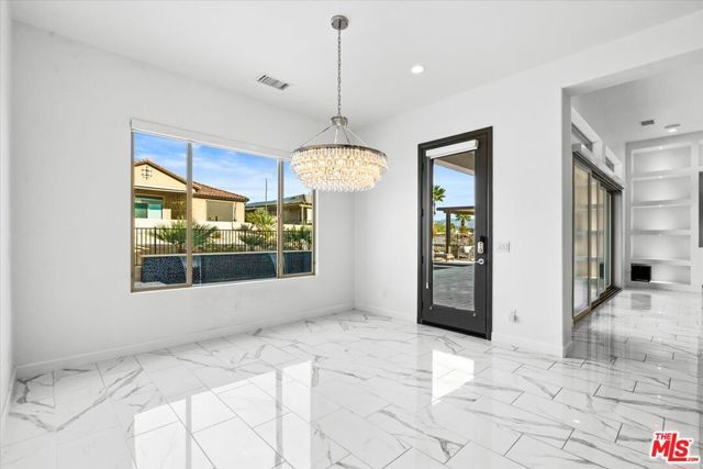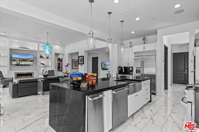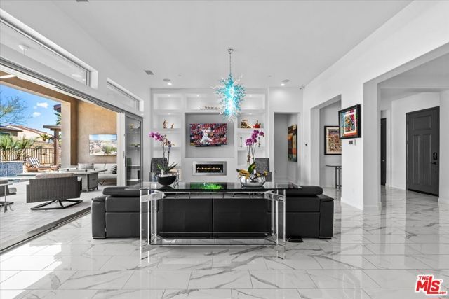 Welcome to 14 Merlot, located in a quiet pocket of Del Webb Rancho Mirage. Walking distance to the club house, where all the action takes place. This home is over 2500 sq ft of living space, it is an expanded version of the Journey model. When you arrive at this welcoming home, you see clean, detailed lines directing you to the fireplace in the living room and an outdoor oasis. The sparkling blue water pool is one of the longest in the community. It also has a spa and waterfalls. 2 Pergolas, covering the built in BBQ island outdoor kitchen. Inside the home, the kitchen is equipped with not one, but has 3 ovens, 2 full size and one convection. It is perfect for cooking your favorite meals. You will also see the largest Range from Kitchen Aid, stylish Quartz countertops throughout the home and backsplash in the kitchen. Ceramic tile flooring thought-out this home, the living room has a custom built in shelving with lighting, the home is pre-wired and a smart home. One of the most exciting things is the Premium stackable sliding doors, bring the outdoor in. Simply marvelous, as you enter the Primary bedroom, you see a second fireplace and an additional door to the outdoor playground. The spa like shower and large closet enhance the space. There is a casita/2nd bedroom has it's own entrance for your guests. The Office/den can be used as a 3rd bedroom. If you are looking for a home that is move-in ready, filled with the highest end of upgrades, this is it. There are 38 solar panels leased at $277.00/month. Do not miss this rare home.
