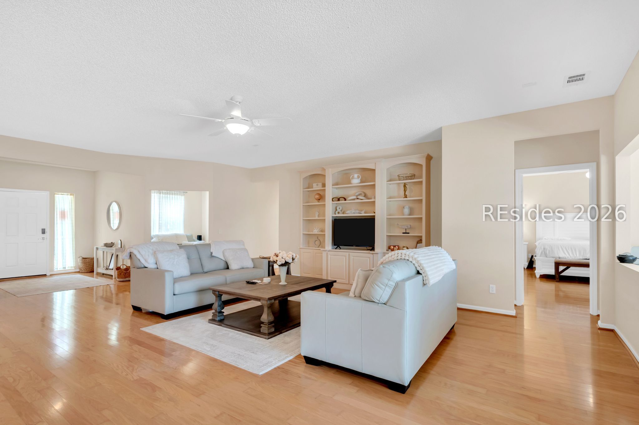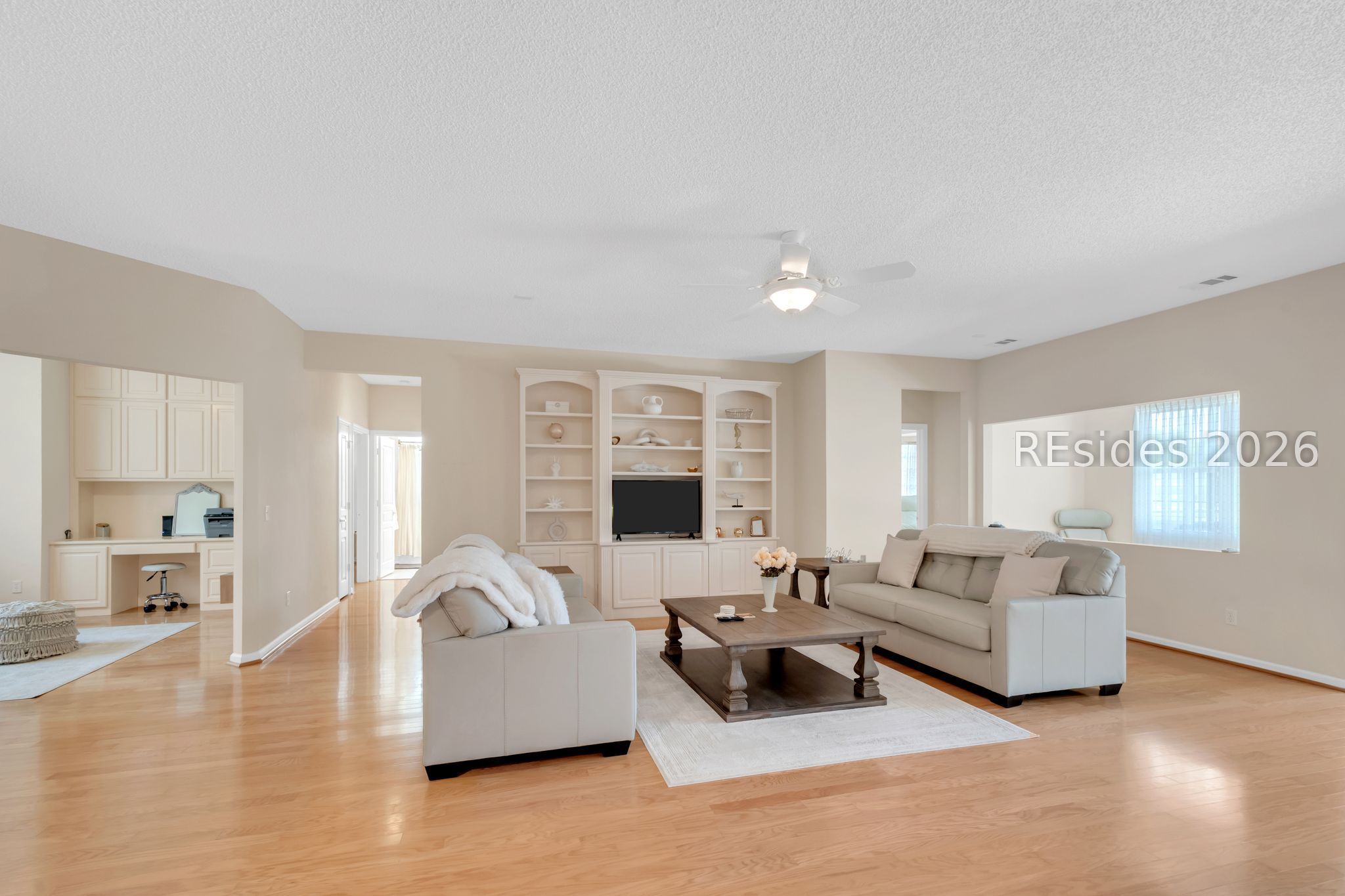 Beautiful Dogwood model home perfectly situated on a quiet cul-de-sac with stunning golf course views. Surrounded by mature landscaping, this property offers a peaceful and serene setting ideal for relaxed living. Inside, the spacious 2,286 sq ft layout features 9 ft ceilings, large bay windows, and expansive sliding doors that open to a newly installed screened-in patio-perfect for enjoying the golf scenery year-round.The thoughtfully designed open floor plan includes an oversized kitchen, two dining areas, and a dedicated office with custom built-in cabinetry and an oversized 2 car garage. With its blend of comfort, functionality, and picturesque surroundings, this home is an exceptional opportunity you won't want to miss.With the option for a quick closing, this well-cared-for home is ready for its next chapter.Life in Sun City Hilton Head in Bluffton, South Carolina offers an exceptional 55+ lifestyle set across more than 5,000 acres. Residents enjoy 54 holes of championship golf, six swimming pools-including indoor lap and leisure pools-and three state-of-the-art fitness centers. The community also features a vibrant sports park with tennis, pickleball, bocce, softball, volleyball, croquet, and more.Creative and social opportunities are just as abundant, with a grand ballroom, a 16,000-square-foot performing arts theater, arts and crafts studios, woodworking shop, billiards, card rooms, and a library-making it easy to stay active, engaged, and connected.