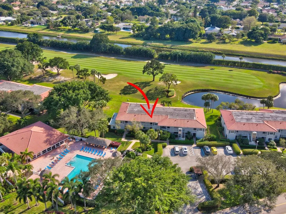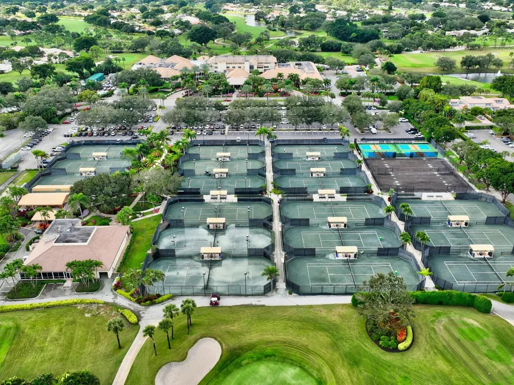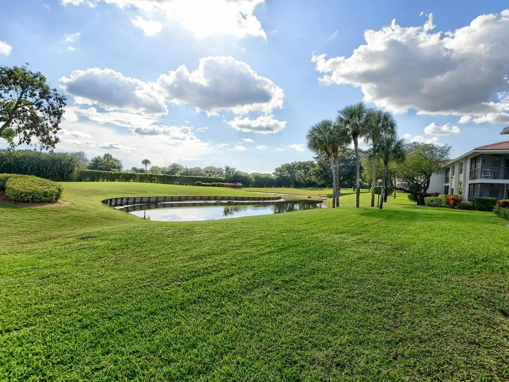 Enjoy Country club living, 3 golf courses, many restaurants in the community, 12 pickelball courts, 15 tennis courts, more to come plus bocce courts and covered pickelball courts, card rooms, resort style pool and hot tub with splash bar by the pool. Rarely found first floor unit.This bright and light unit backs up to a tranquil golf and water view.Laminate flooring Corian Counters in the kitchen, Brand new appliances in Kitchen and New AC.Upgraded master Bathroom.Spacious rooms, lots of Closets and a walk in closet in the master bedroom.Just steps to the community pool and clubhouse. Community clubhouse has pool table, ping pong table, card rooms and kitchen.Owner staying in community just purchased another unit. Hunters run is one of the furthest east gated country clubs. Located close