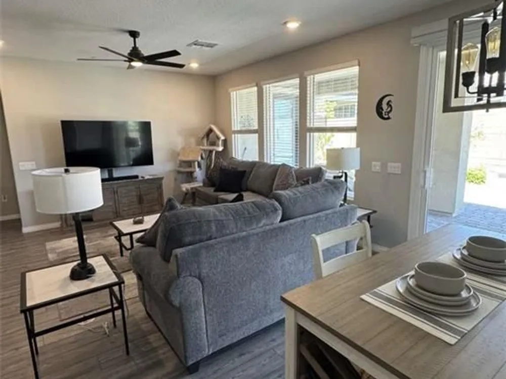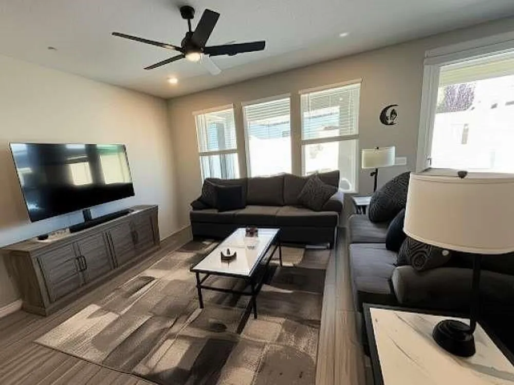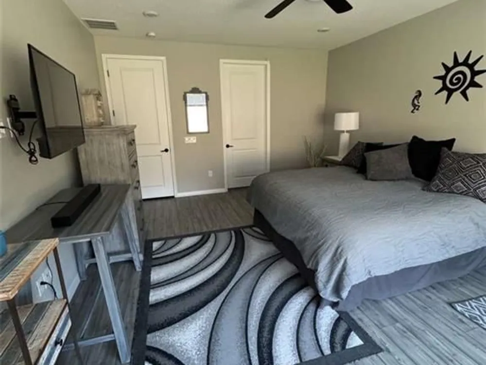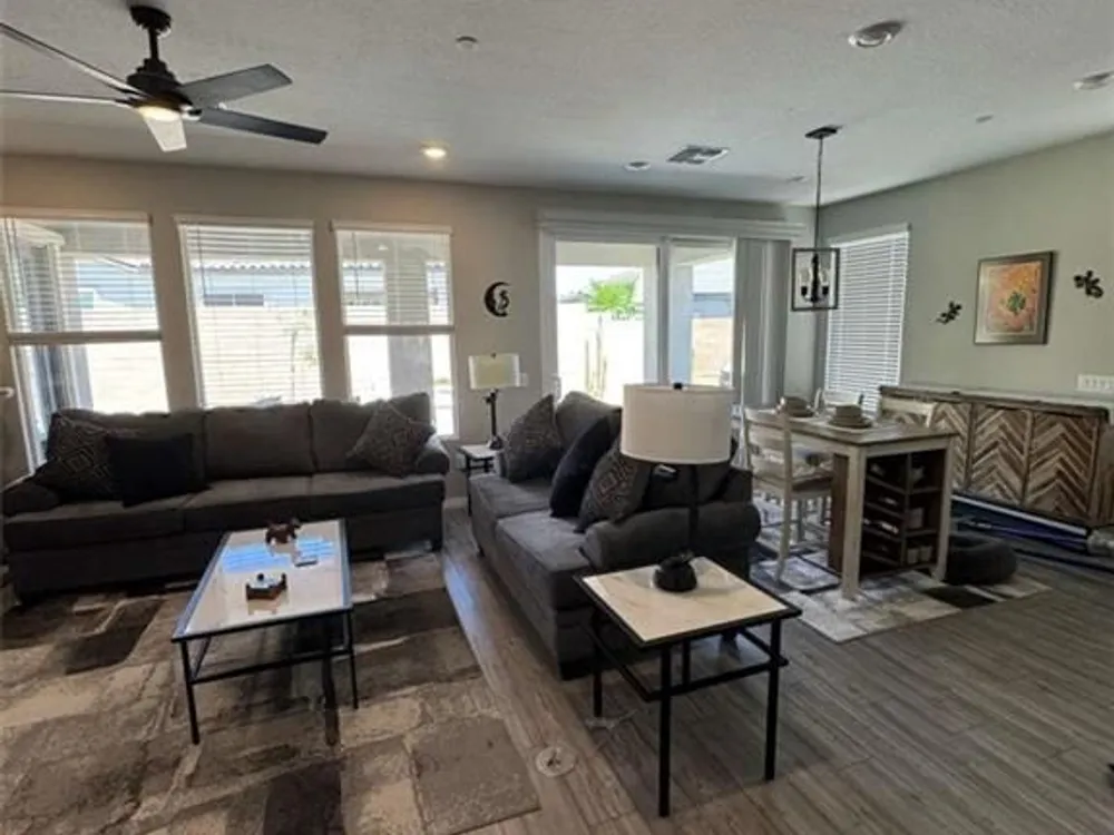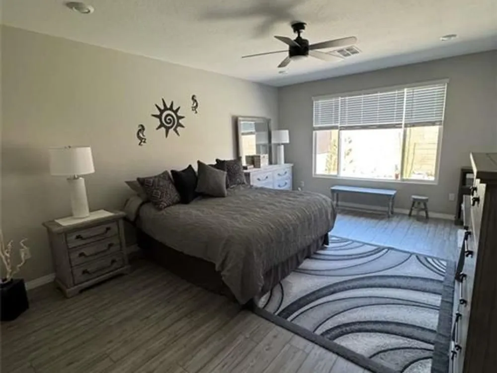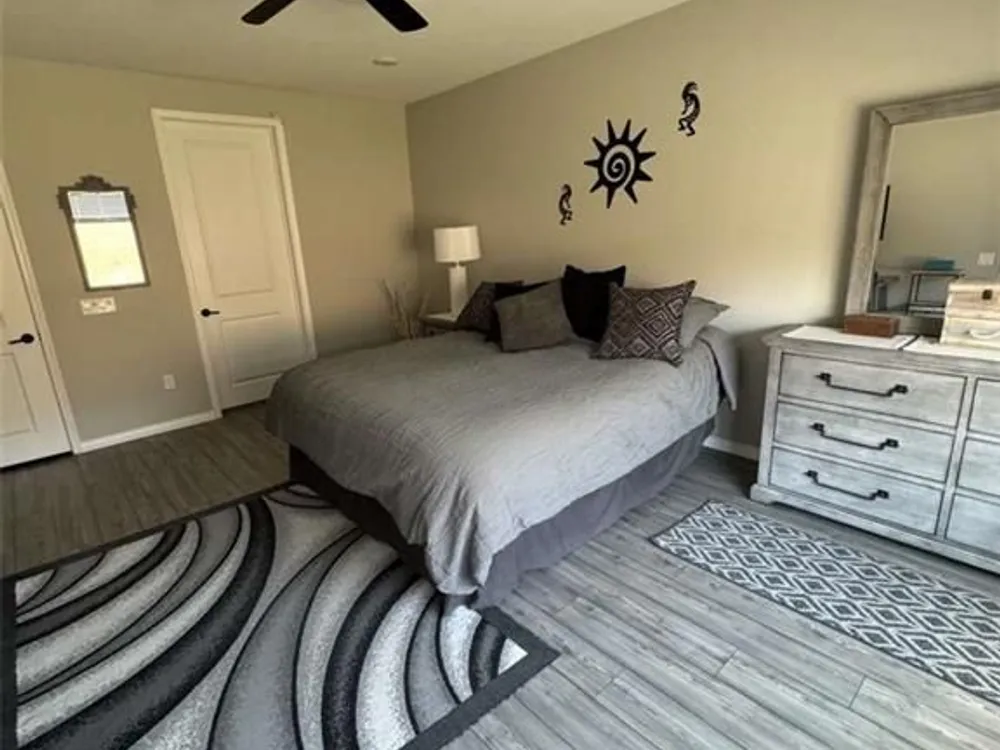 - Alarm System-Owned, Blinds, Ceiling Fan(s), Fire Sprinklers, Windows Coverings Throughout
